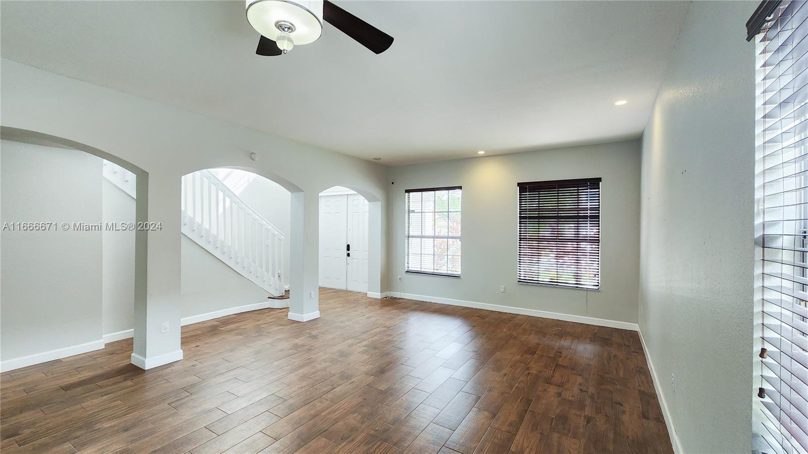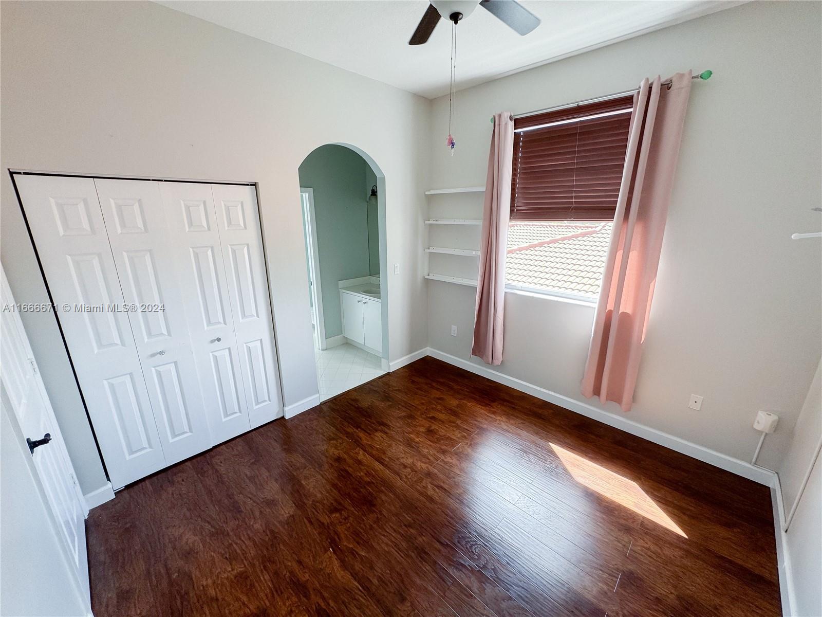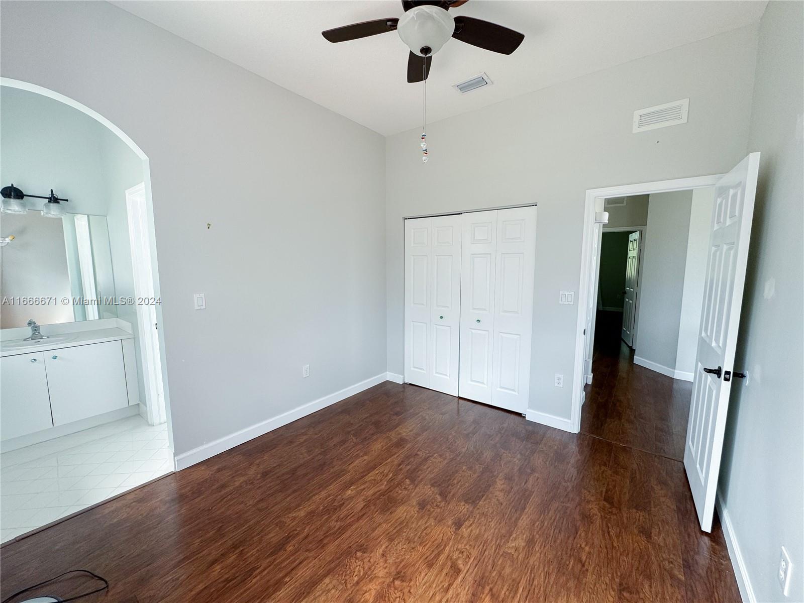 This 4-bedroom, 3-bathroom home boasts 2,347 sq. ft. in a double-gated community. Remodeled kitchen with stainless steel appliances and quartz counter tops. Family room and living room share a grand space while dining room is conveniently close to kitchen. High ceiling, 2 car garage, large private fenced backyard with plenty of room for entertaining. New full AC system. The tropical backyard includes an avocado tree, mango tree, mulberry bush, and a cozy fire pit. HOA fee is only $130 a month and includes lawn maintenance, clubhouse use, gym, pools, bbq area, playground for kids, and a secured gate. The perfect house for a family!! Built-in baby gate at the top of stairs and a jack and jill bathroom separates two rooms. One bedroom and full bathroom downstairs.