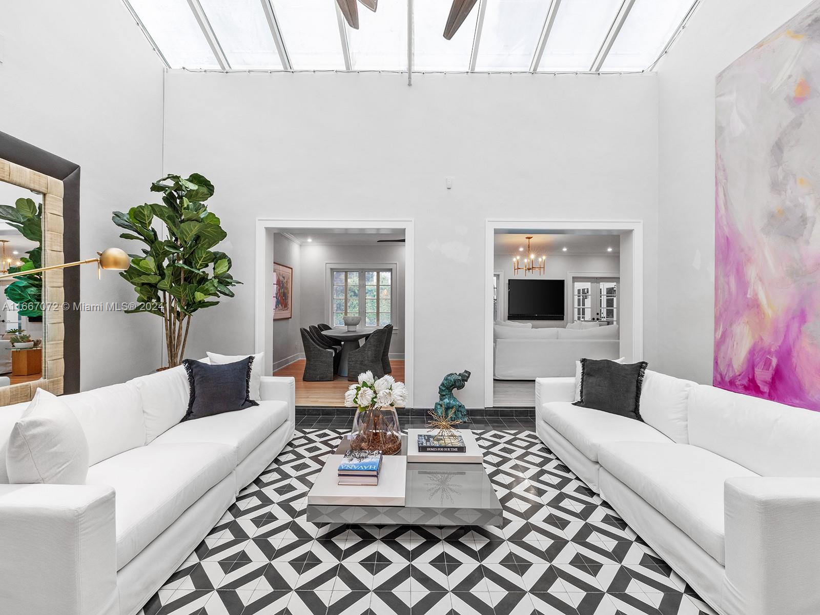 Welcome to a remarkable historical estate in Coral Gables, perfectly situated next to the Granada Golf Course and tennis courts. This luxurious home combines classic elegance and historic touches, featuring stunning white oak flooring, marble and porcelain bathrooms, and a gourmet kitchen. The spacious bedroom suites offer exceptional comfort. Sustainability is a key highlight, with solar panels providing clean energy, while advanced technology ensures convenience throughout. The expansive outdoor spaces are surrounded by lush greenery, ideal for relaxation and entertaining. For added peace of mind, the estate includes top-notch security features. A two-car garage with extra storage completes this exceptional property. Experience the perfect blend of historic charm and modern luxury.