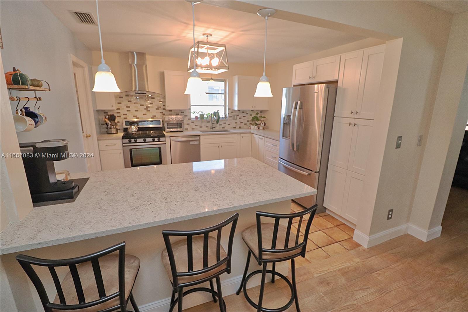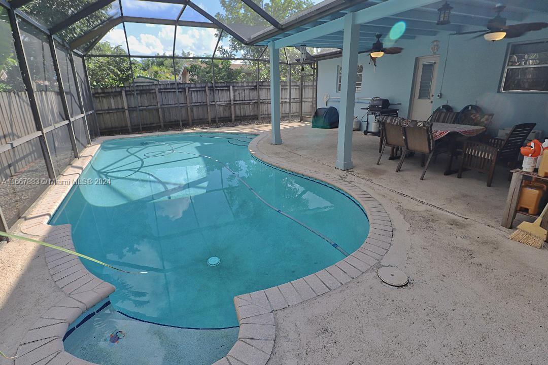 Pasadena Lakes South Best Buy, This home features some recent upgrades, such as a beautifully remodeled kitchen, Quartz countertops, White wood shaker cabinets, Stainless steel Whirlpool appliances, Wood like tile floors, Upgraded baseboards and interior doors, Nice size family room leads to a large covered porch and the screened pool patio, Hurricane rated garage door. New shingle roof installed 2024, Oversized fenced yard, Circular drive, No HOA fees