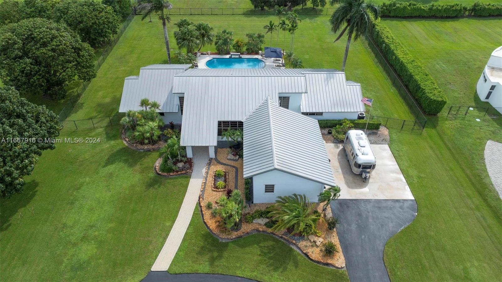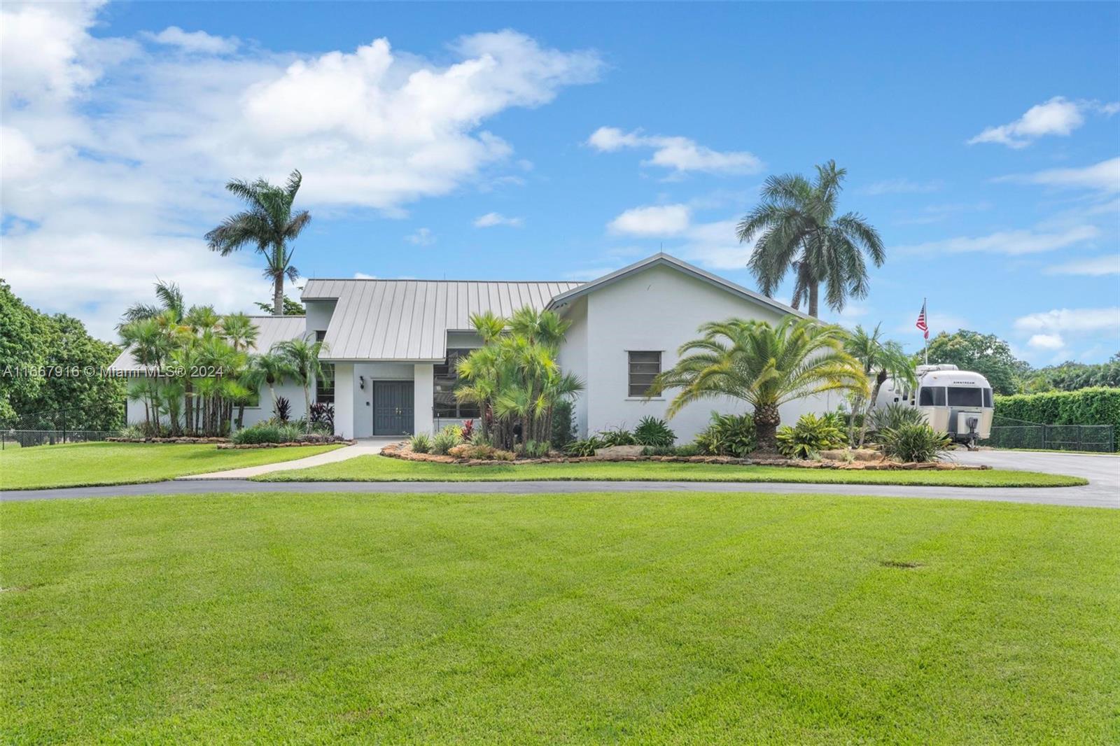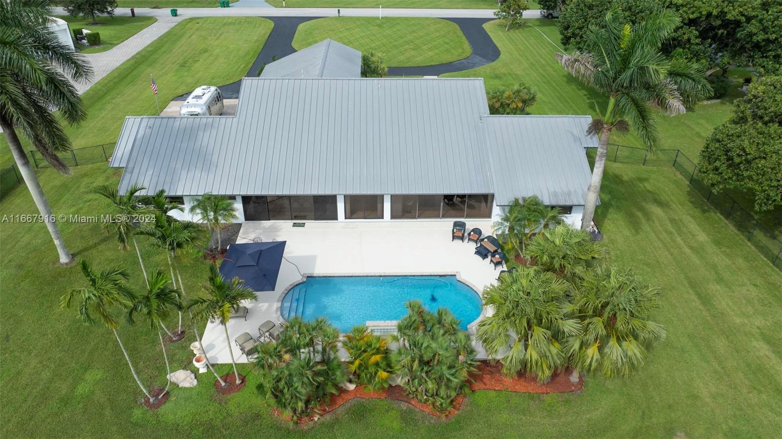 Welcome to Your Private Oasis! Beautifully maintained single-family home boasts 4 spacious bds & 3 full bth, high vaulted ceilings perfectly situated on 1.24 acres of lush land. Enjoy the luxury of your own private pool and expansive yard, ideal for outdoor activities & entertaining. The property features a 3 car garage under a/c or all your storage needs, and a durable metal roof with lighting protection that promises low maintenance costs. With a large driveway accommodating over 30 cars, boat & RV-friendly parking, this home is perfect for gatherings. Conveniently located near the airport, Sawgrass Outlet, restaurants, and 20 min from the beach, this home offers the perfect blend of tranquility & accessibility. Don’t miss out on this rare opportunity! NO HOA! Check video!