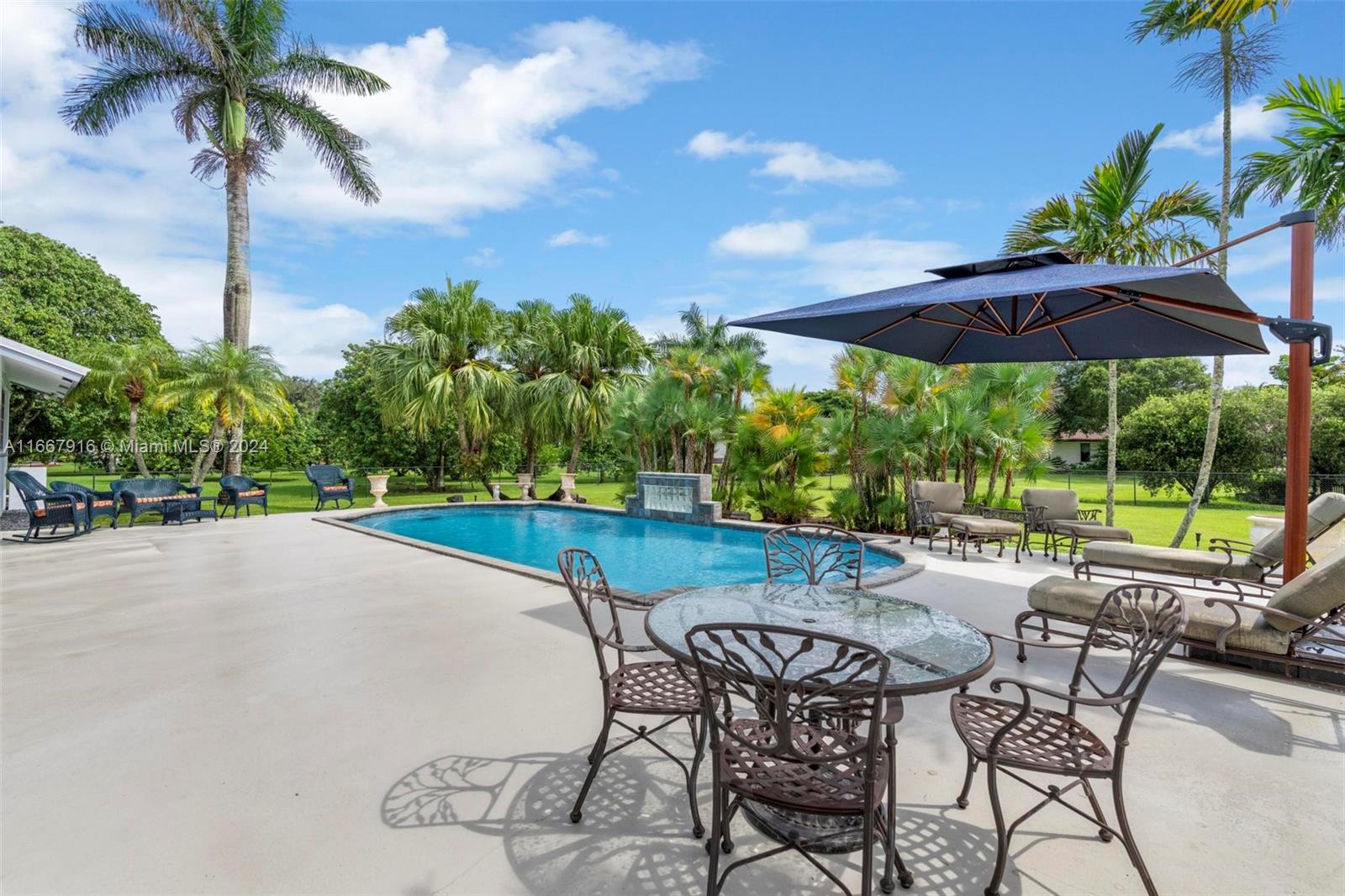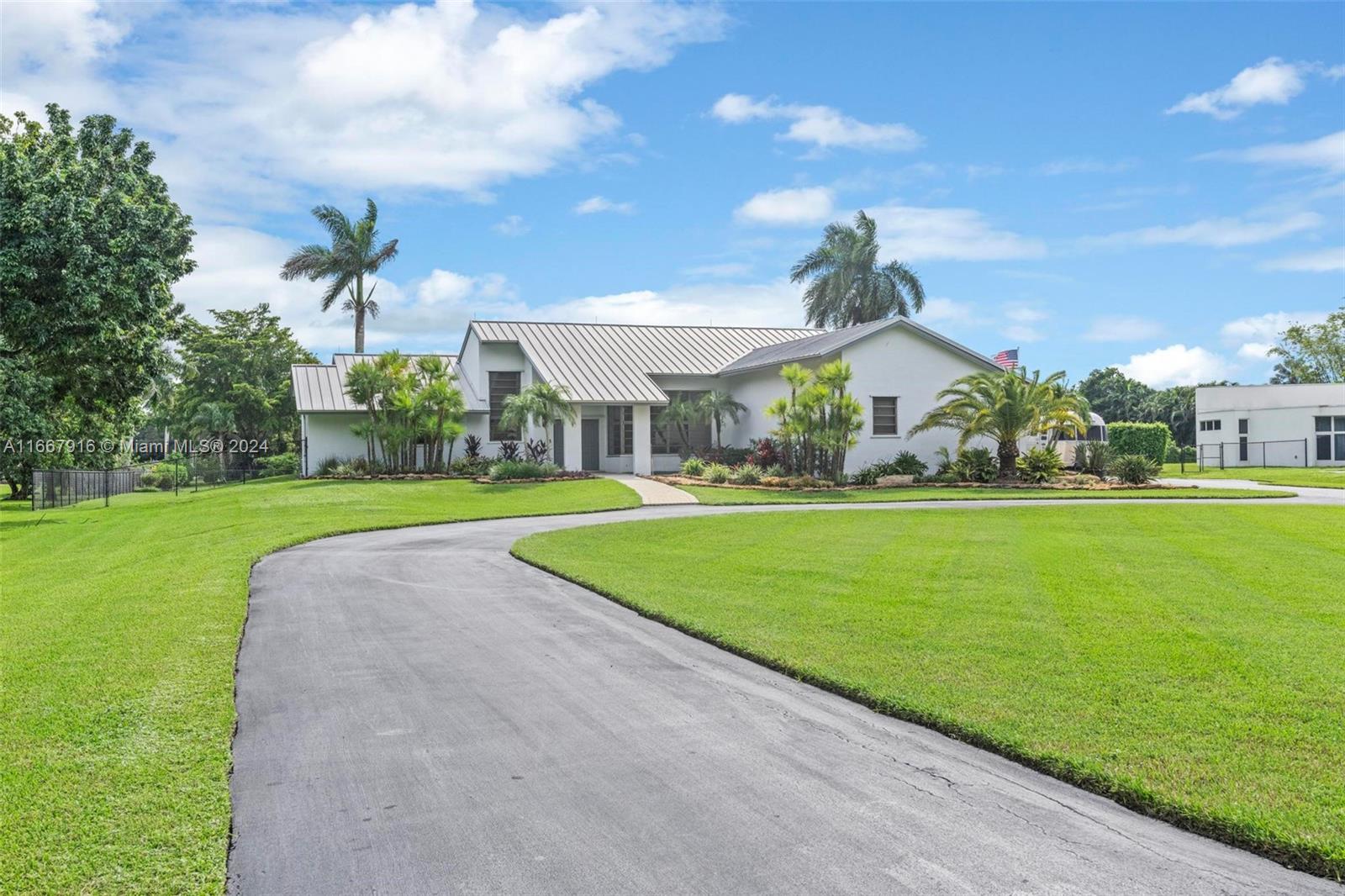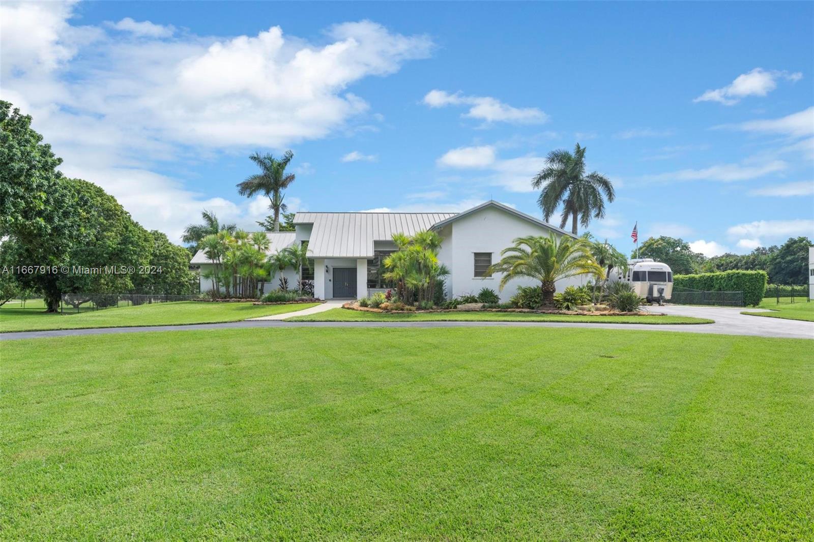 Welcome to Your Private Oasis! Beautifully maintained single-family home boasts 4 spacious bds & 3 full bth, high vaulted ceilings perfectly situated on 1.24 acres of lush land. Enjoy the luxury of your own private pool and expansive yard, ideal for outdoor activities & entertaining. The property features a 3 car garage under a/c or all your storage needs, and a durable metal roof with lighting protection that promises low maintenance costs. With a large driveway accommodating over 30 cars, boat & RV-friendly parking, this home is perfect for gatherings. Conveniently located near the airport, Sawgrass Outlet, restaurants, and 20 min from the beach, this home offers the perfect blend of tranquility & accessibility. Don’t miss out on this rare opportunity! NO HOA! Check video!