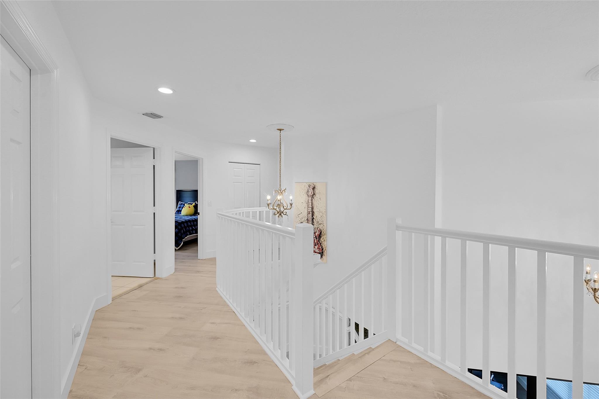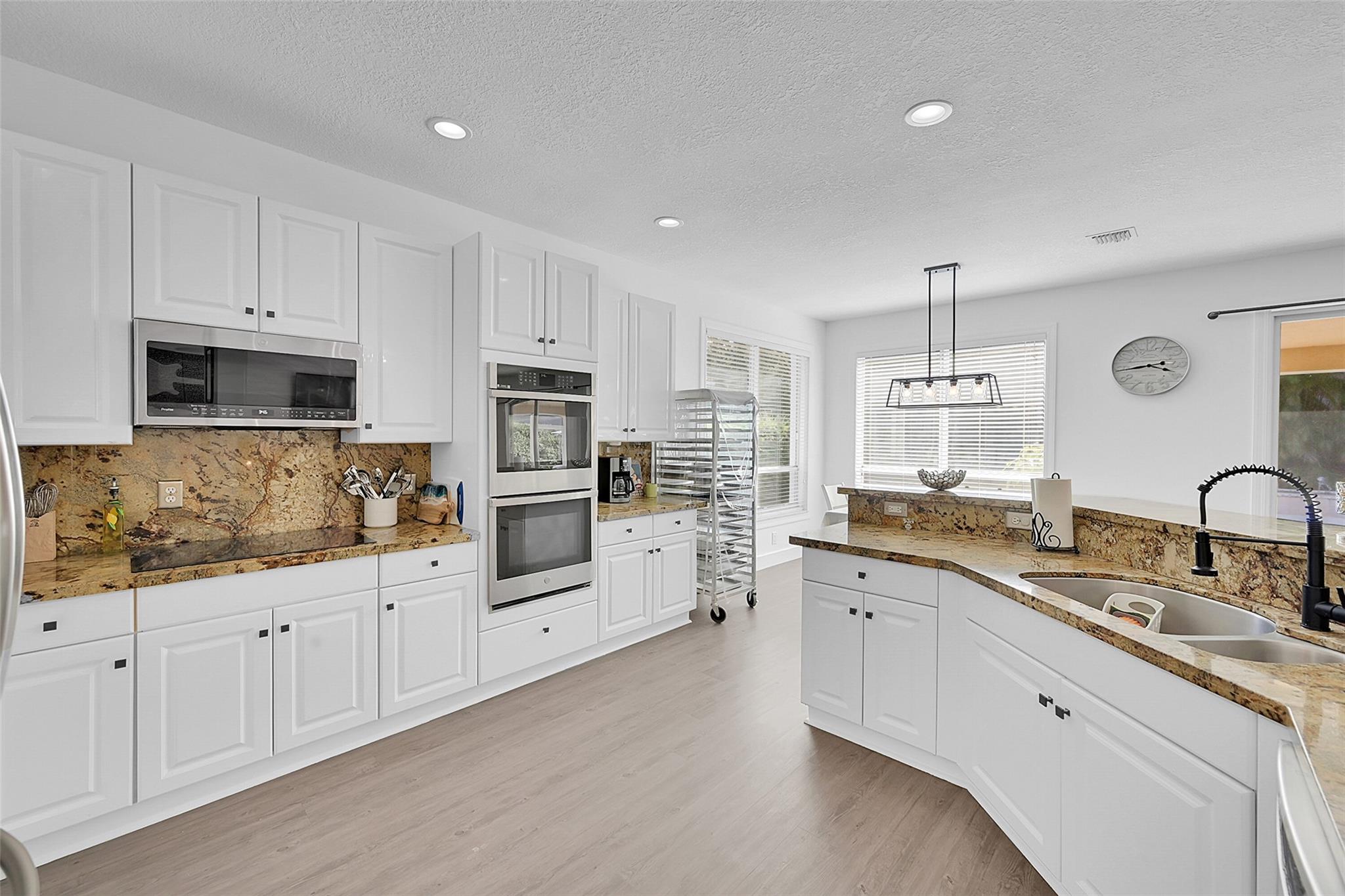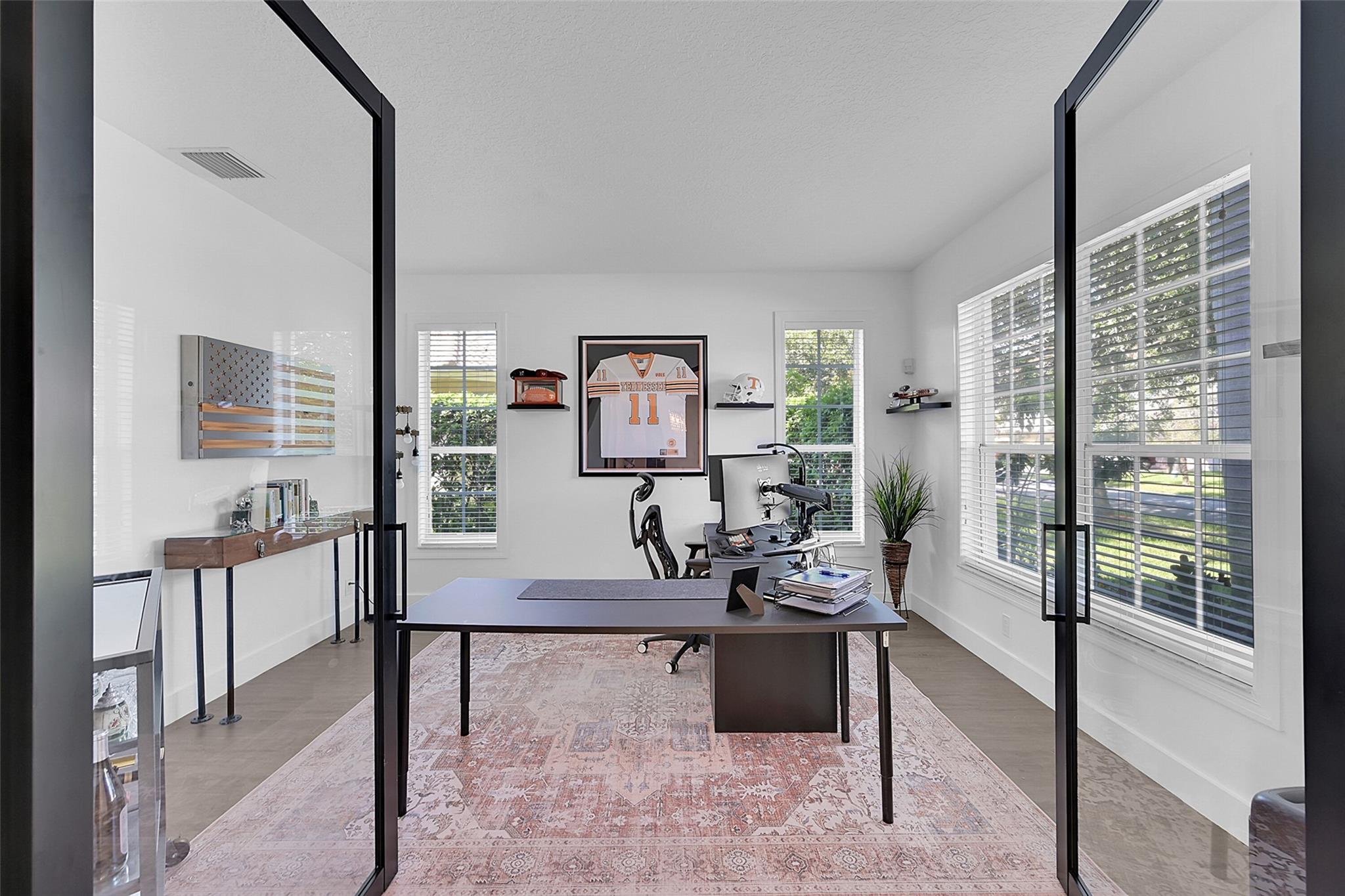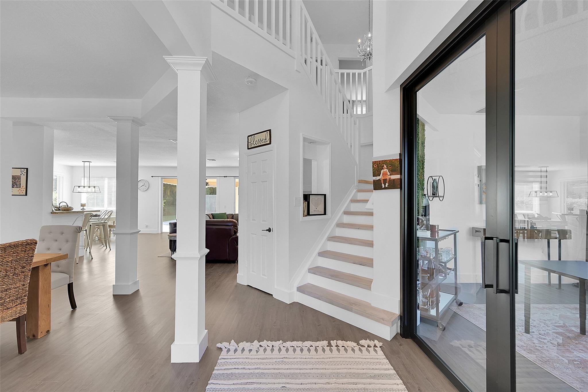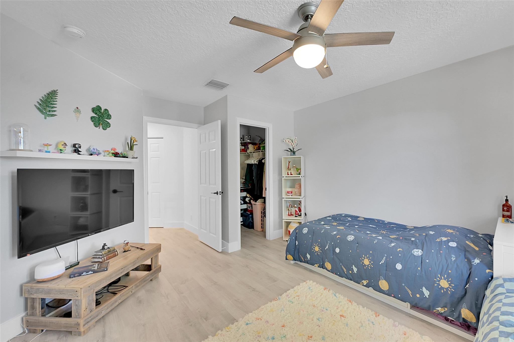 Beautiful updated 6BR,3BA one room being used as an office, (making it 6 bedrooms if needed) with brand new commercial double doors for privacy. Located in a gated community with a super low HOA fee. Large driveway to fit many vehicles. High ceilings, new appliances, many upgrades. One bedroom and full bath is downstairs. Custom closets in the primary room and custom pantry closet off kitchen. Open, airy and spacious. The backyard has a calming retreat feel and very private. Huge separate fountain as long as the pool. Both with pebble finish. Home is unique because it is suitable for any of your family's needs. Very large screened in patio. Many updates to this home. Truly one of a kind in a very desirable neighborhood. A must see. This home will not last.