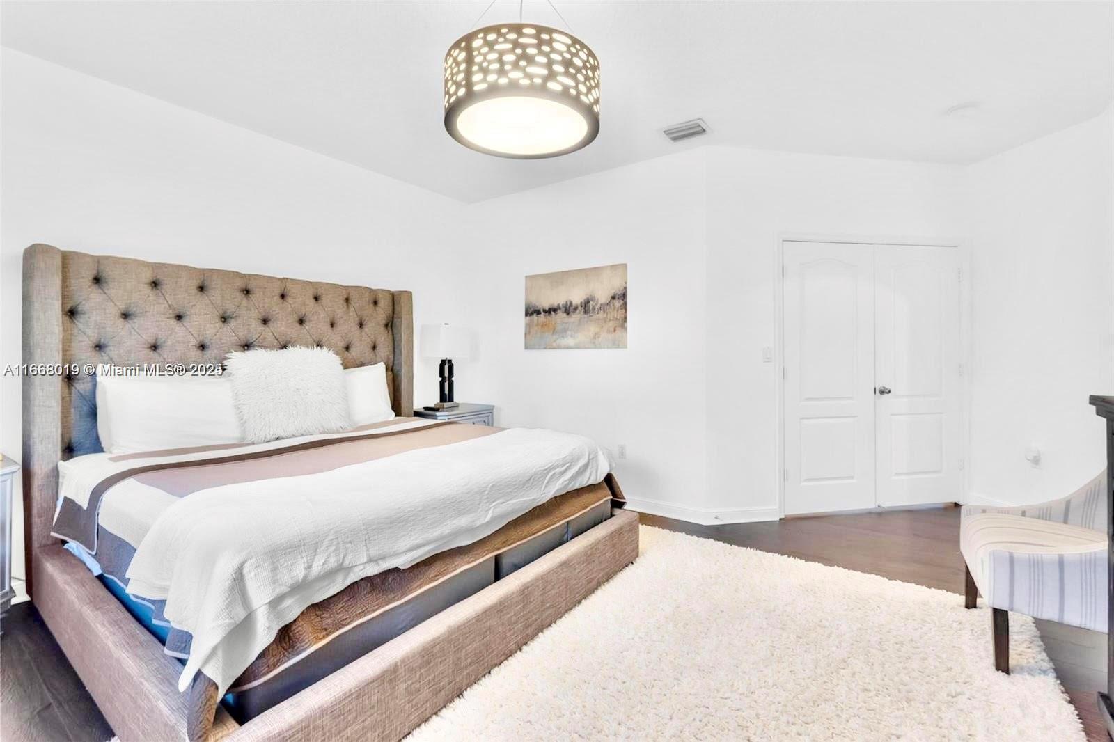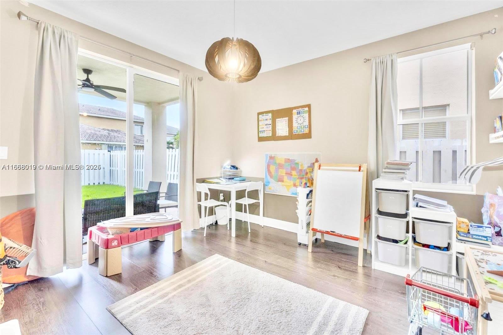 Motivated Seller!! Welcome to this Beautiful 4 Bedroom, 3 Bath home! Great for a family and entertaining. Expansive vaulted ceilings, beautiful bright lighting, with spacious living and dining room, stunning iron staircase; Chef's kitchen with granite countertops, deluxe island, & upgraded stainless appliances. Cozy family room, Primary Bedroom suite with huge closets, dual vanity, roman soaking tub, separate shower; very spa like. Play Room/ Guest Bedroom/Home Office with backyard exterior access. Two car garage, and a spacious laundry room. Fully fenced backyard, accordion shutters. Centrally located in the desirable Monarch Lakes. Community amenities, pool, park, tennis courts and more! Very low association. Brand New A/C, Newer Roof!