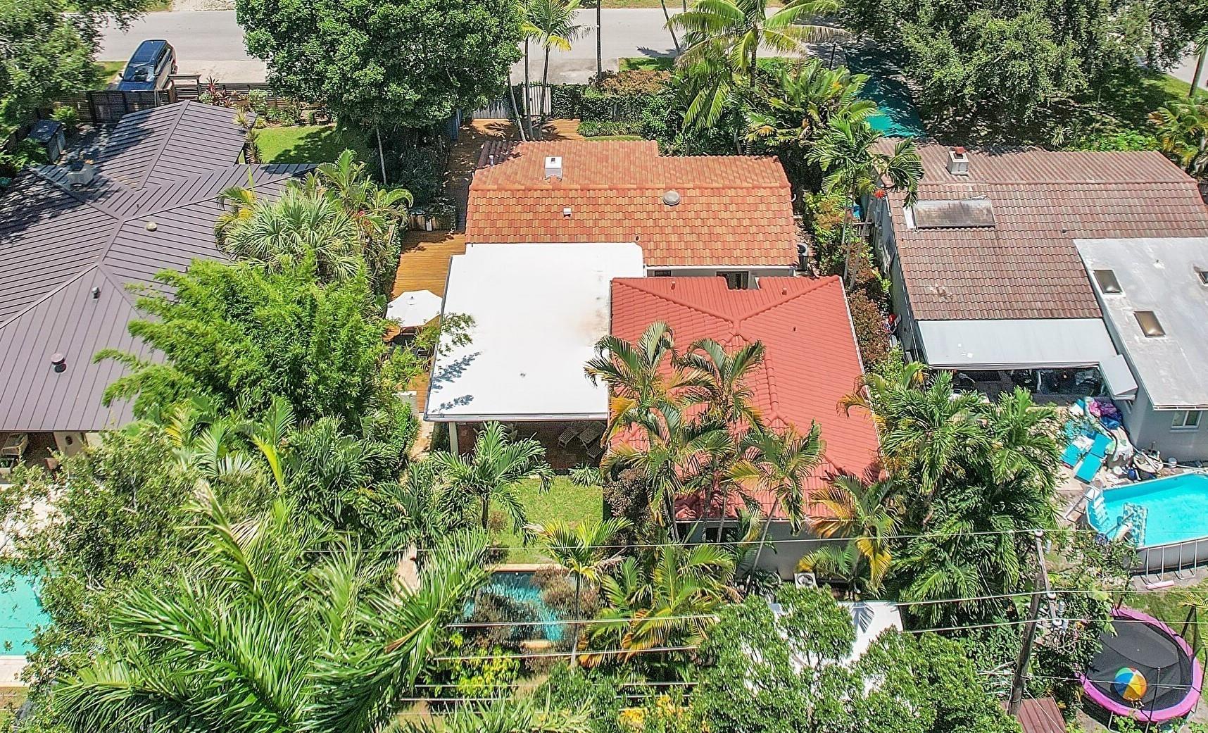 This thoughtfully remodeled and enlarged mid-century home exudes tranquility allowing nature to peak through the extensive use of impact glass and doors. The heated pool blends seamlessly into the gorgeous landscape and covered patio area. Features include a natural gas stove top and water heater, fireplace, Bosch dishwasher, wine fridge, 2 kit sinks, 2 refrigerators, a/c 2018, roofs 2017, high ceilings, Florida, living, laundry, and family rooms, wired surround sound inside & out. The large main ensuite with both indoor & outdoor showers and tons of closet space was added in 2008 (2nd a/c & roof at that time). Croissant Park enjoys a small community atmosphere, near parks, pools, shopping, eateries, airport, downtown, the beach, and I-95/I-595. Current appraisal at $800k