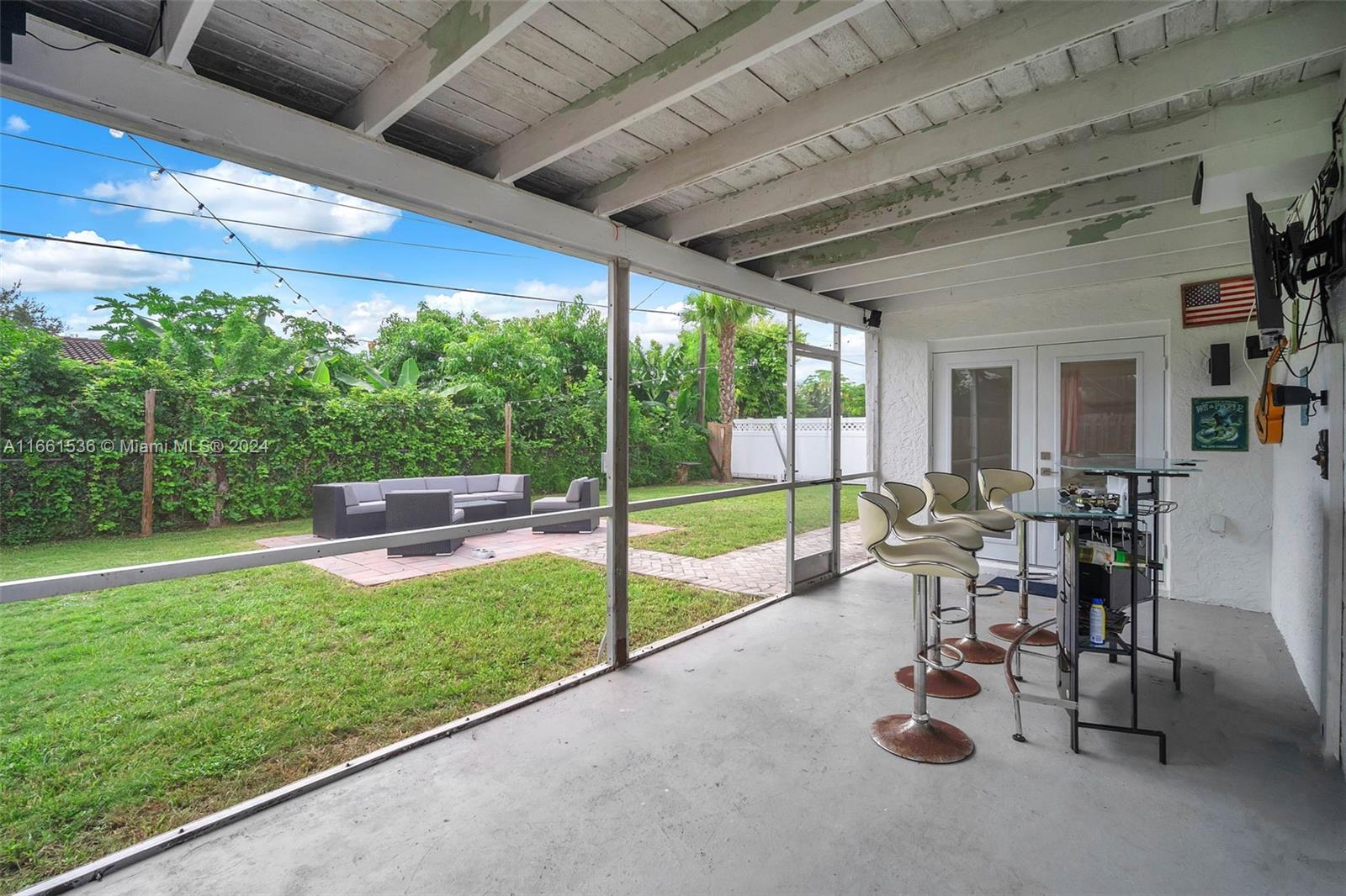 Very well take care property with tree bedroom and two bath, one car garage and bonus room, remodeled kitchen, porcelain floor, remodeled bathrooms, new interior solid core doors with new hardware, new A/C and water heater 2022 , all bedrooms has high quality fans, Zebra blinds , impact windows and doors, new appliances 2022, spacious master bedroom, cover terrace with screen, large patio with a room for pool, side entry to the patio for both side. Don't miss this opportunity, call listing agent NOW.