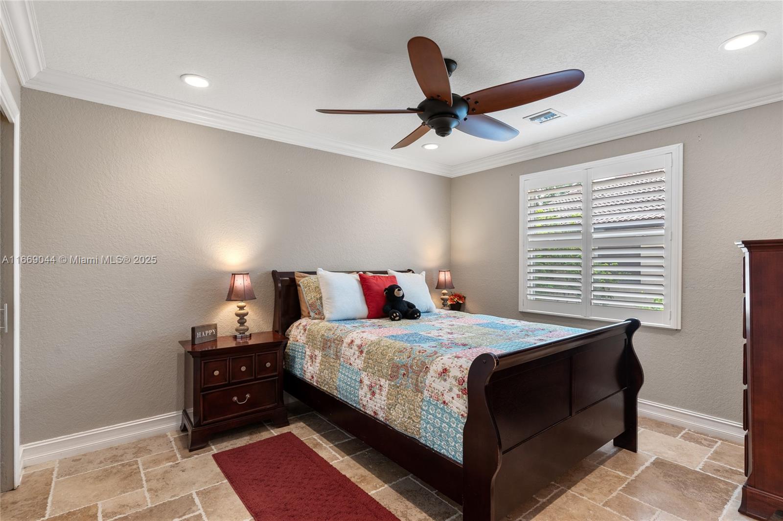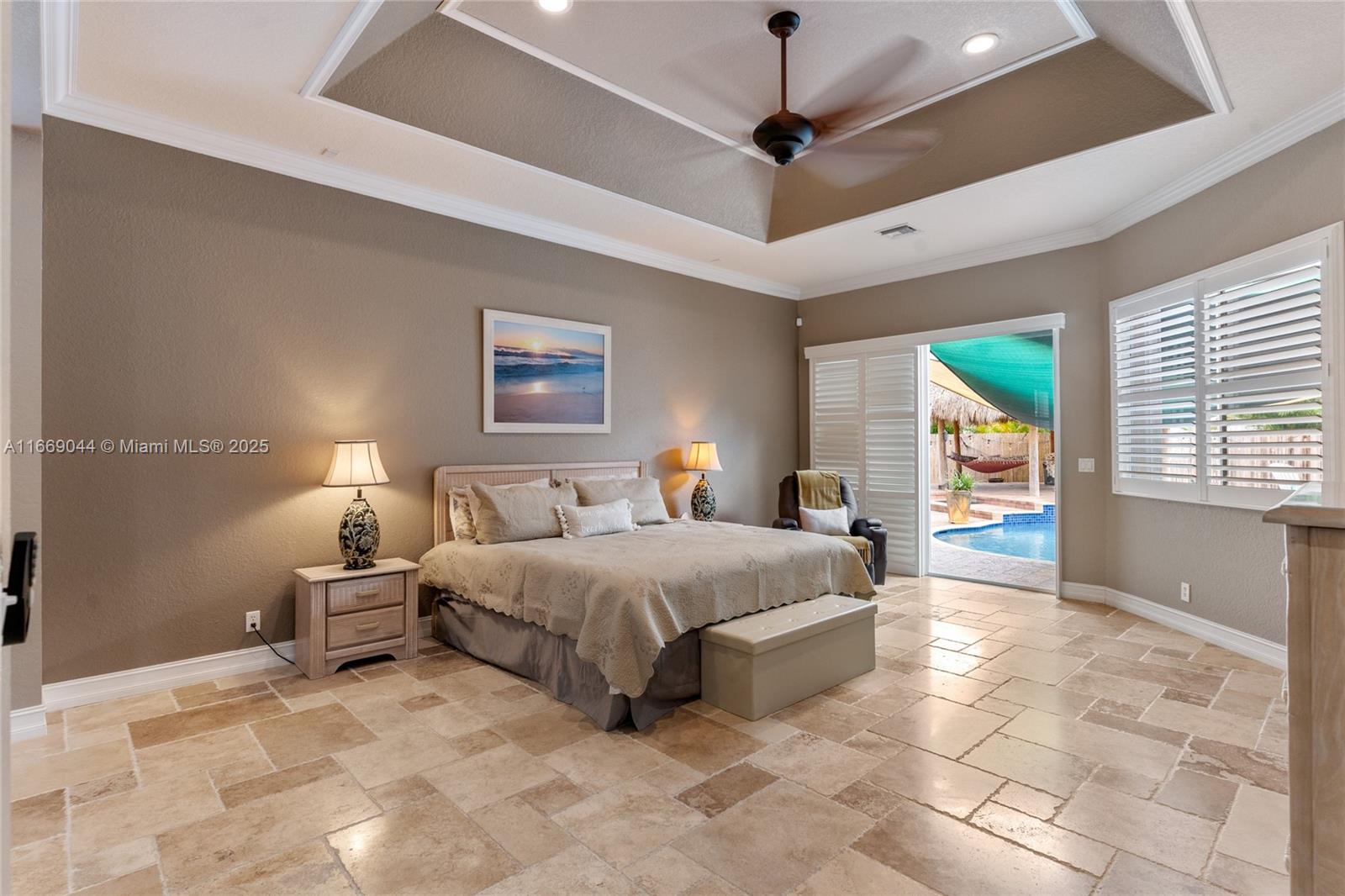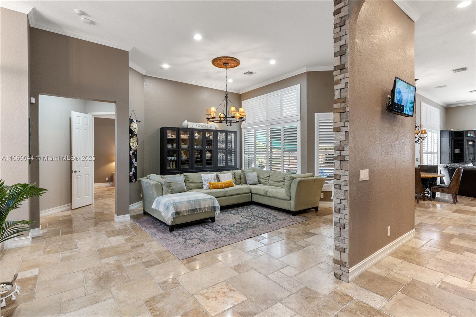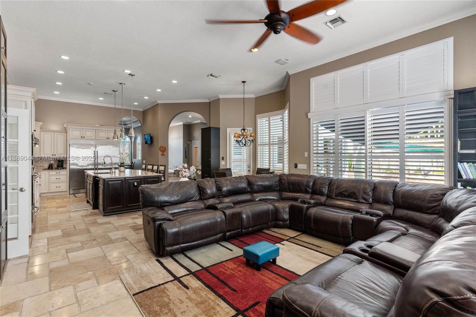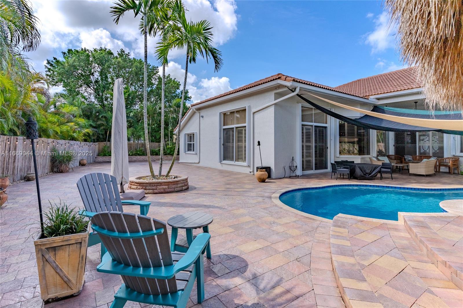 This stunning home is nestled in the desirable community of Sunset Lakes. Upon entering you will discover the spacious layout with beautiful French tile throughout in a split floor plan design. If you like to entertain then you will fall in love with the resort style backyard that includes a newly resurfaced fully automated pool with jacuzzi, large Tiki hut, bistro lights throughout and plenty of room to lounge and enjoy the sunshine. Inside you will enjoy a full eat in kitchen and an enormous family room. Plantation shutters all throughout adorn the newly installed high impact windows and doors. Don't miss out on this wonderful opportunity to make this amazing single-story home yours.