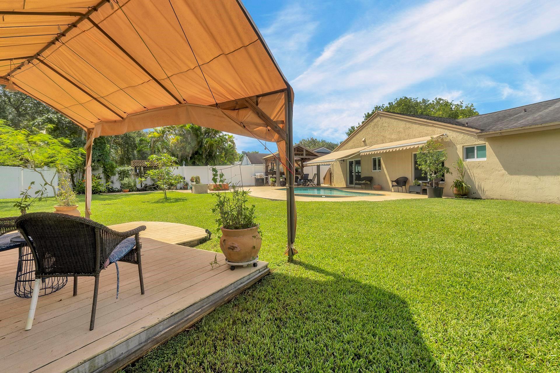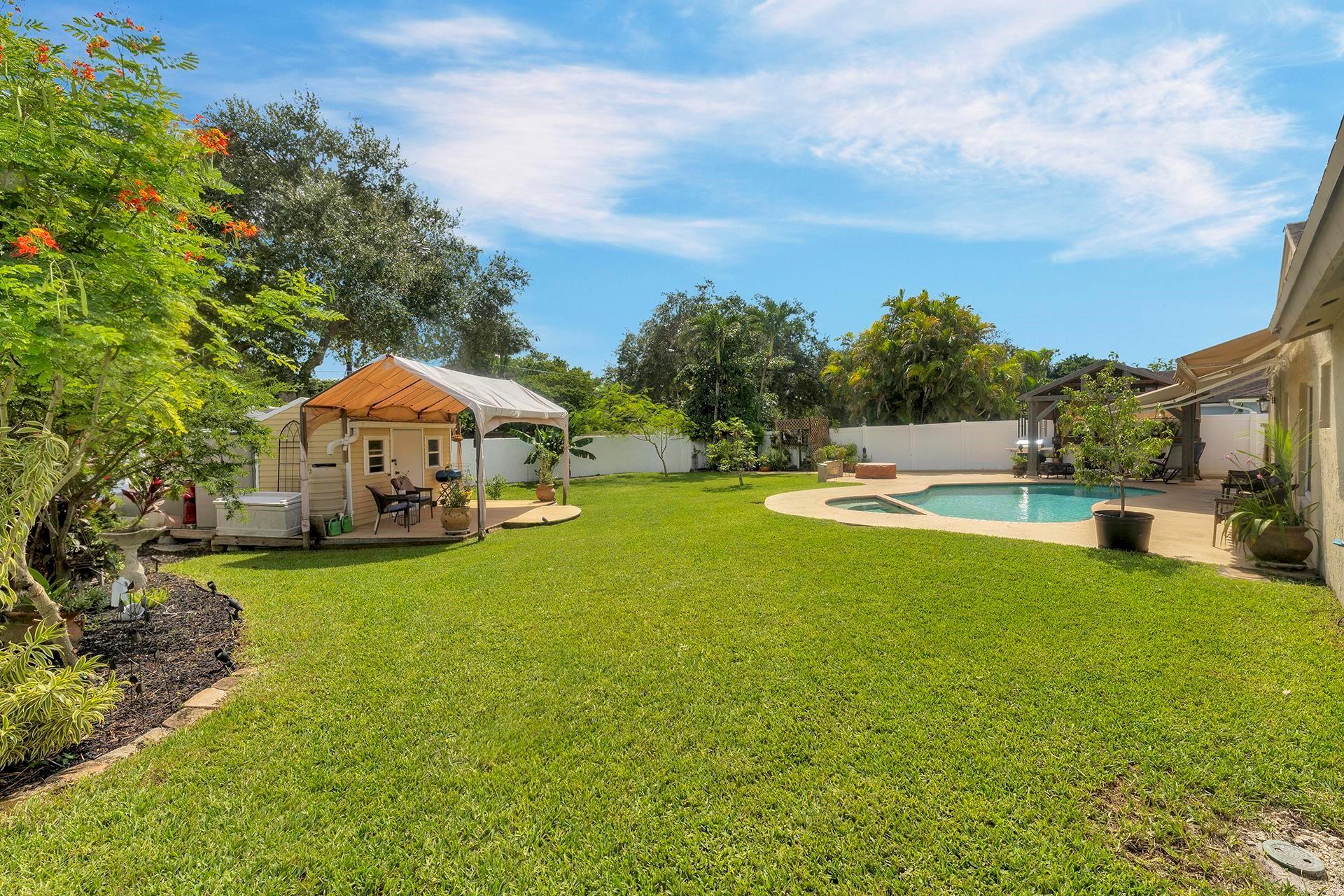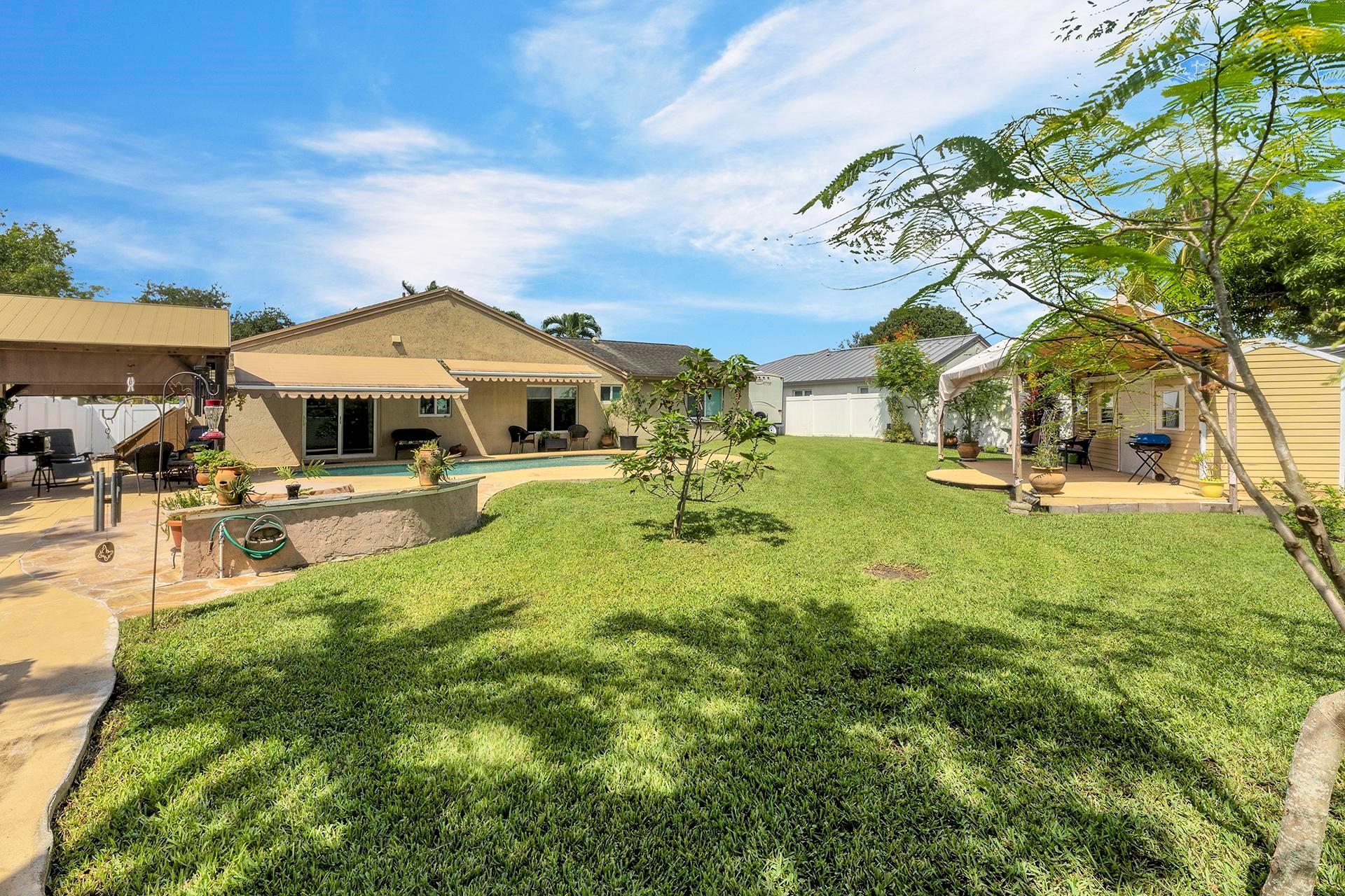 An ideal home on a large lot for outdoor entertaining and family gatherings. Featuring a natural gas range with a 200 lb tank capacity, an alkaline water purification system, a tankless water heater, and a new AC unit with a built-in UV light system to improve your air quality. The pool has a brand-new pump and is saltwater chlorinated. For electric vehicle owners, a 30 amp 240V outlet is available for charging. The property boasts a variety of fruit trees, including banana, orange, lemon, fig, and Barbados cherry, adding a touch of nature to your daily life. This home is located close to Griffin Elementary School, the Bill Lips Sports Complex, and a variety of restaurants and shopping options. Roof 2006, Copper piping in walls, PVC for drain lines.