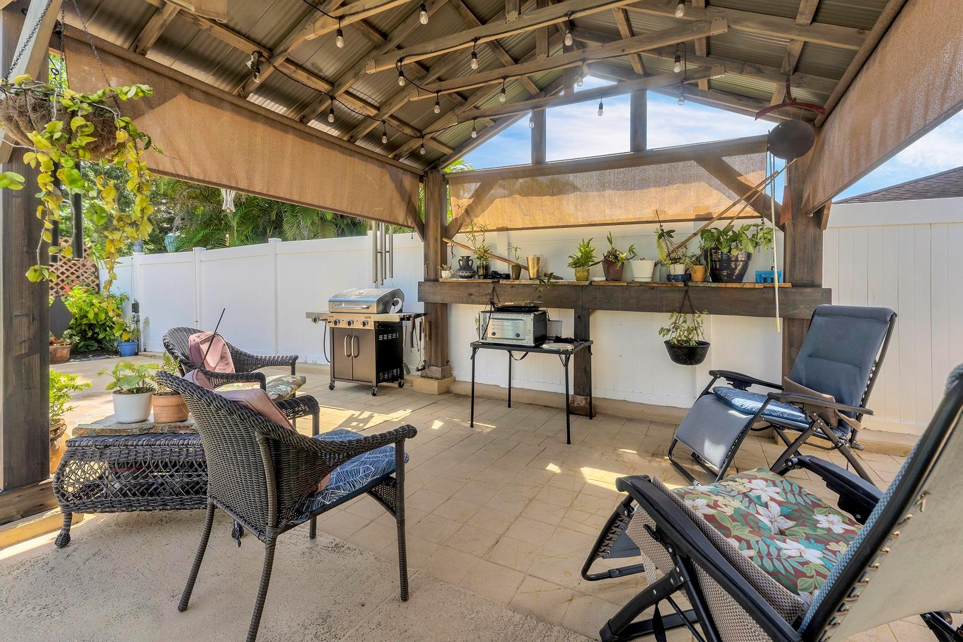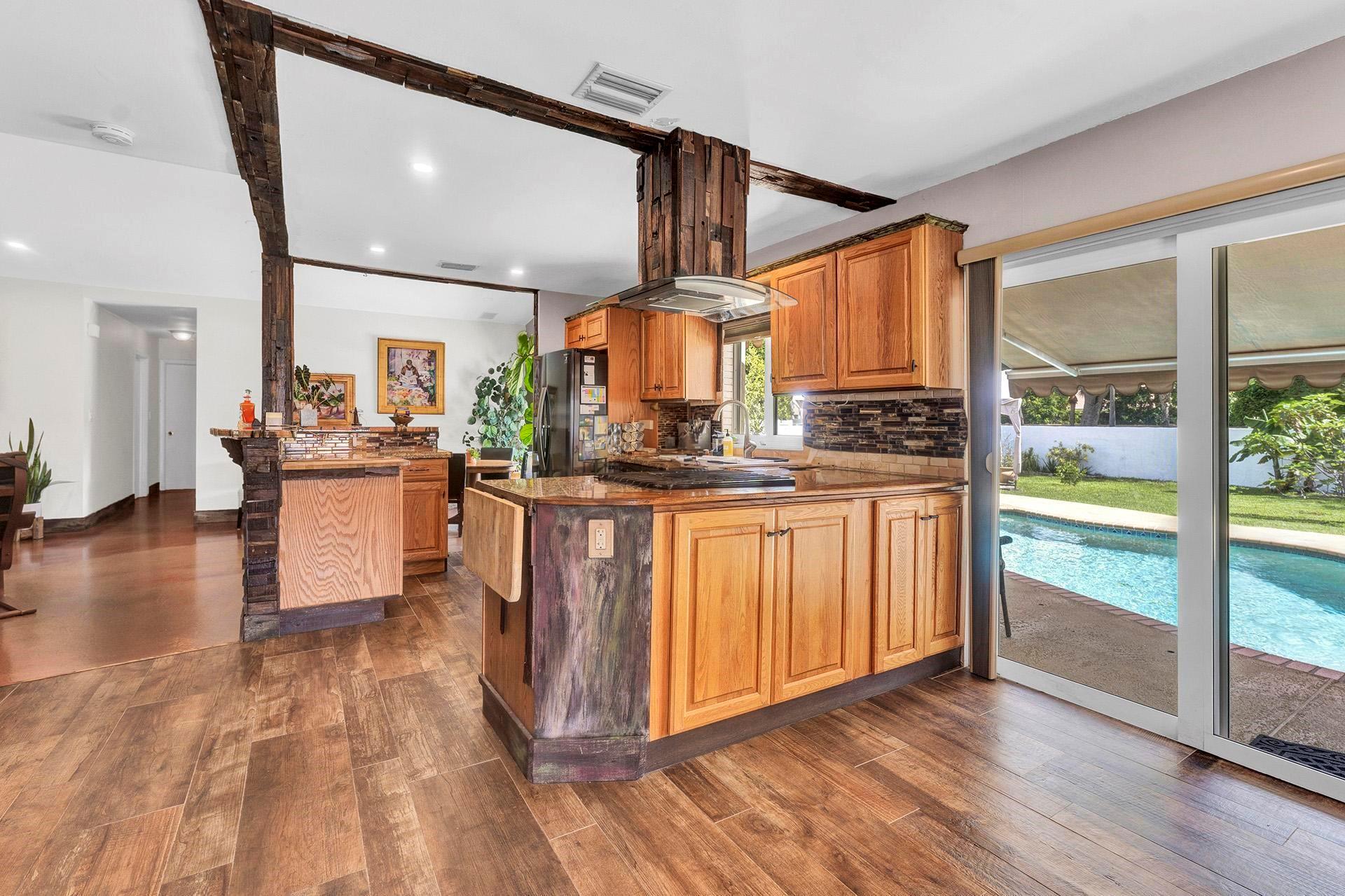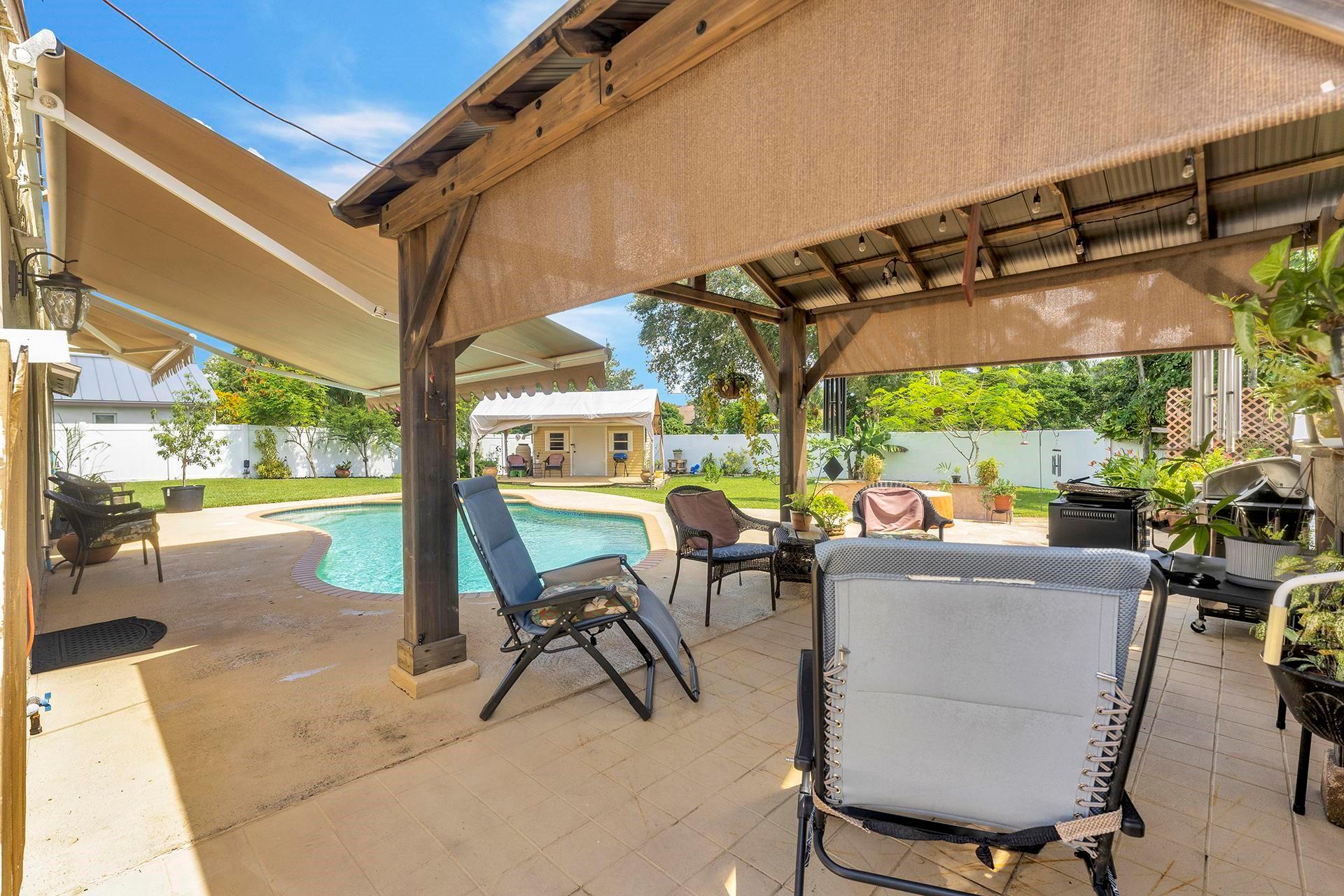 An ideal home on a large lot for outdoor entertaining and family gatherings. Featuring a natural gas range with a 200 lb tank capacity, an alkaline water purification system, a tankless water heater, and a new AC unit with a built-in UV light system to improve your air quality. The pool has a brand-new pump and is saltwater chlorinated. For electric vehicle owners, a 30 amp 240V outlet is available for charging. The property boasts a variety of fruit trees, including banana, orange, lemon, fig, and Barbados cherry, adding a touch of nature to your daily life. This home is located close to Griffin Elementary School, the Bill Lips Sports Complex, and a variety of restaurants and shopping options. Roof 2006, Copper piping in walls, PVC for drain lines.