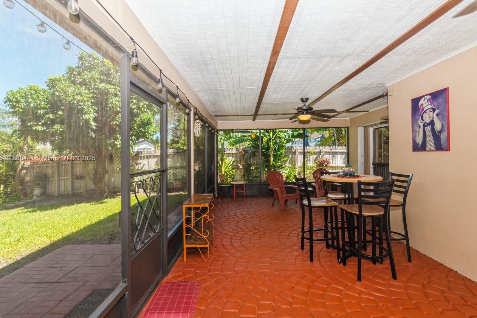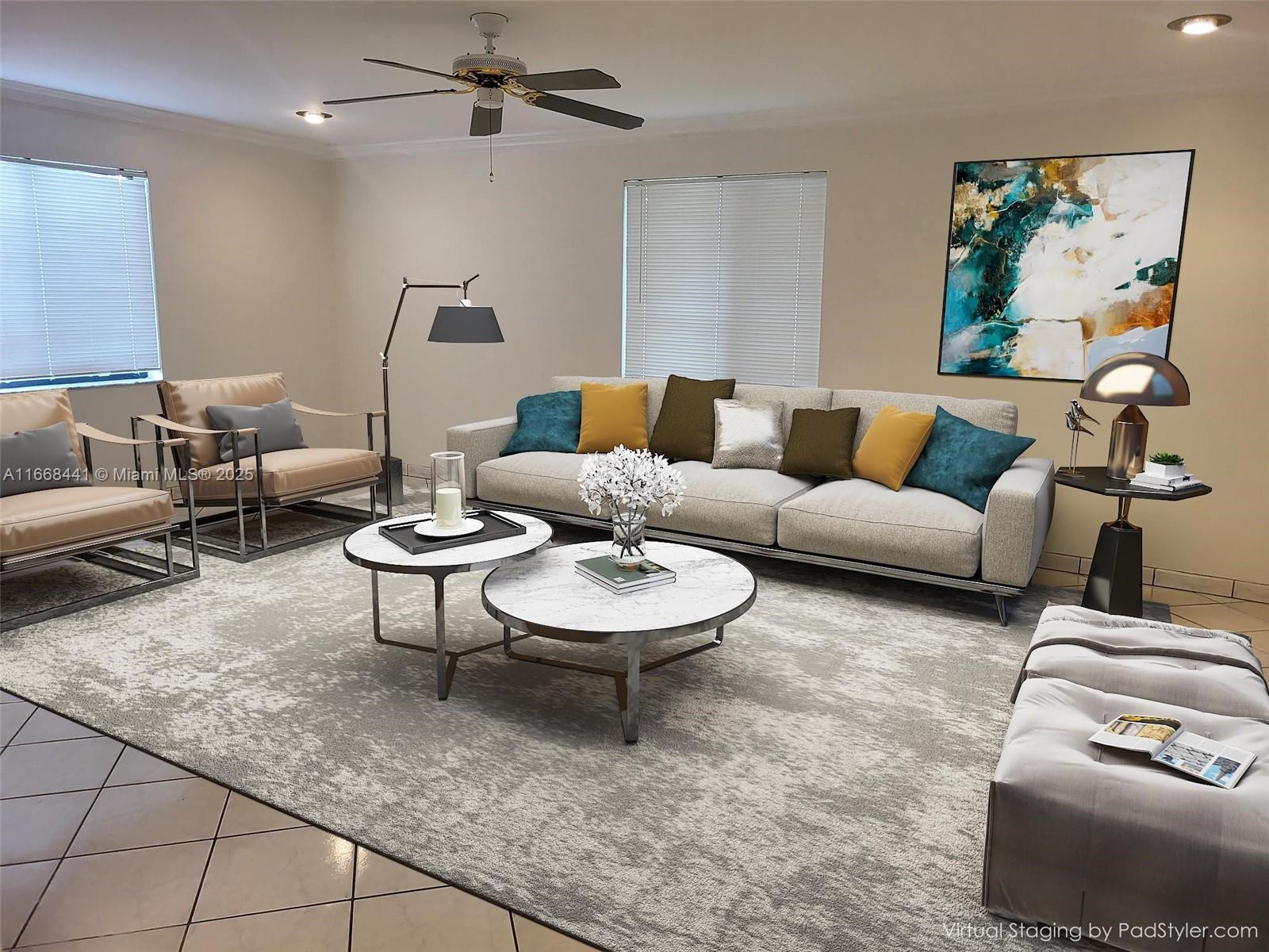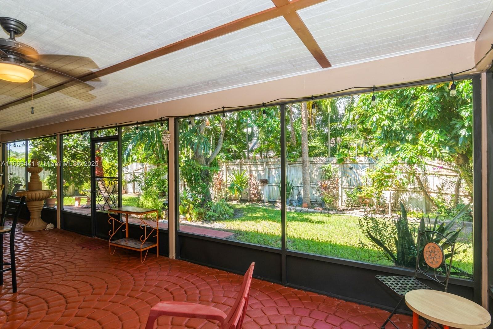 DEPENDING ON OFFER, SELLER WILL CONSIDER ASSISTANCE WITH CLOSING COSTS. Bring Everything! This move in ready 4/2, home features tiled throughout, 1 car garage, recessed lighting, crown moldings, freshly painted. High ceilings, New kitchen with wood cabinetry, granite countertops and new appliances. Remodeled bathrooms. Formal dining room, living room and family room. Step outside to the spacious screened patio ideal for gatherings. Hurricane shutters, newer roof and newer a/c unit. Closets galore. Enjoy the variety of fruit trees, coconut, banana, pomegranate and much more. Room for a pool.
