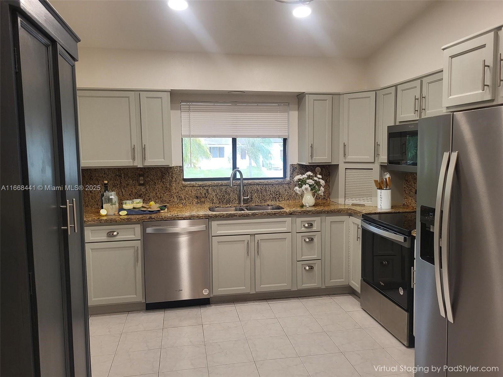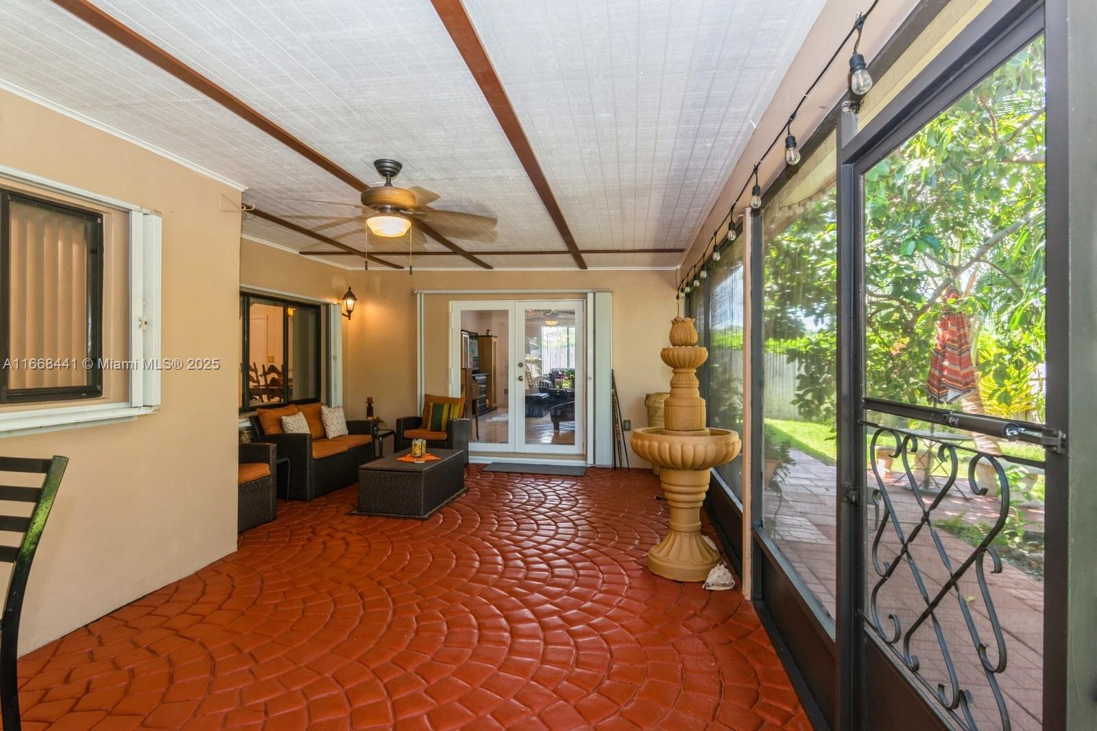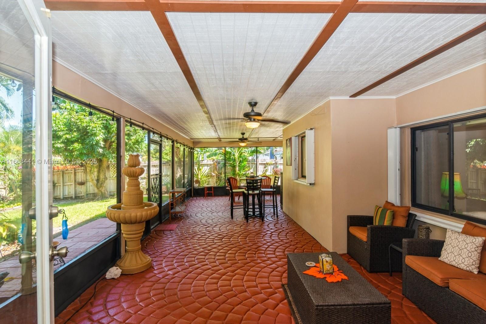 DEPENDING ON OFFER, SELLER WILL CONSIDER ASSISTANCE WITH CLOSING COSTS. Bring Everything! This move in ready 4/2, home features tiled throughout, 1 car garage, recessed lighting, crown moldings, freshly painted. High ceilings, New kitchen with wood cabinetry, granite countertops and new appliances. Remodeled bathrooms. Formal dining room, living room and family room. Step outside to the spacious screened patio ideal for gatherings. Hurricane shutters, newer roof and newer a/c unit. Closets galore. Enjoy the variety of fruit trees, coconut, banana, pomegranate and much more. Room for a pool.