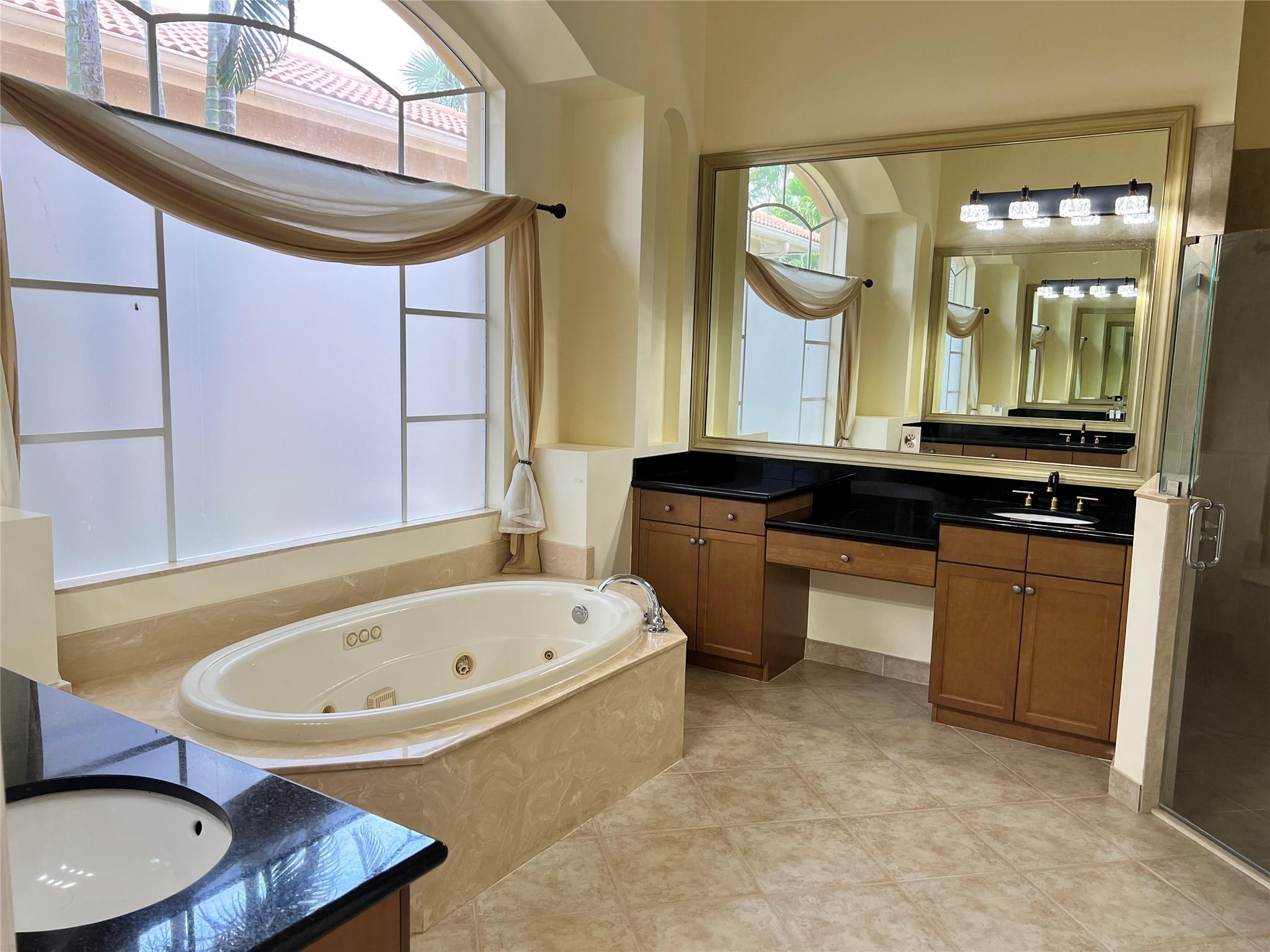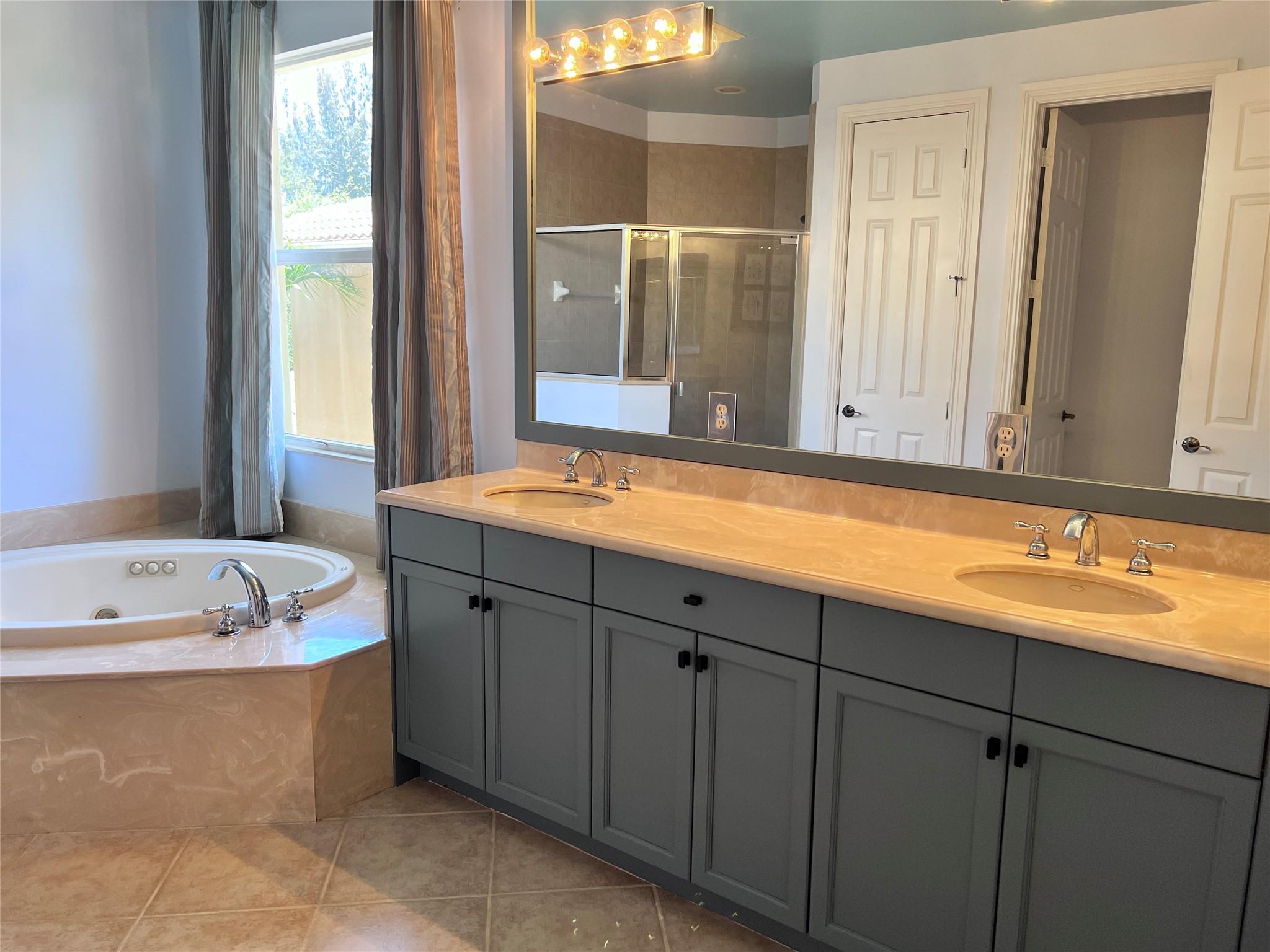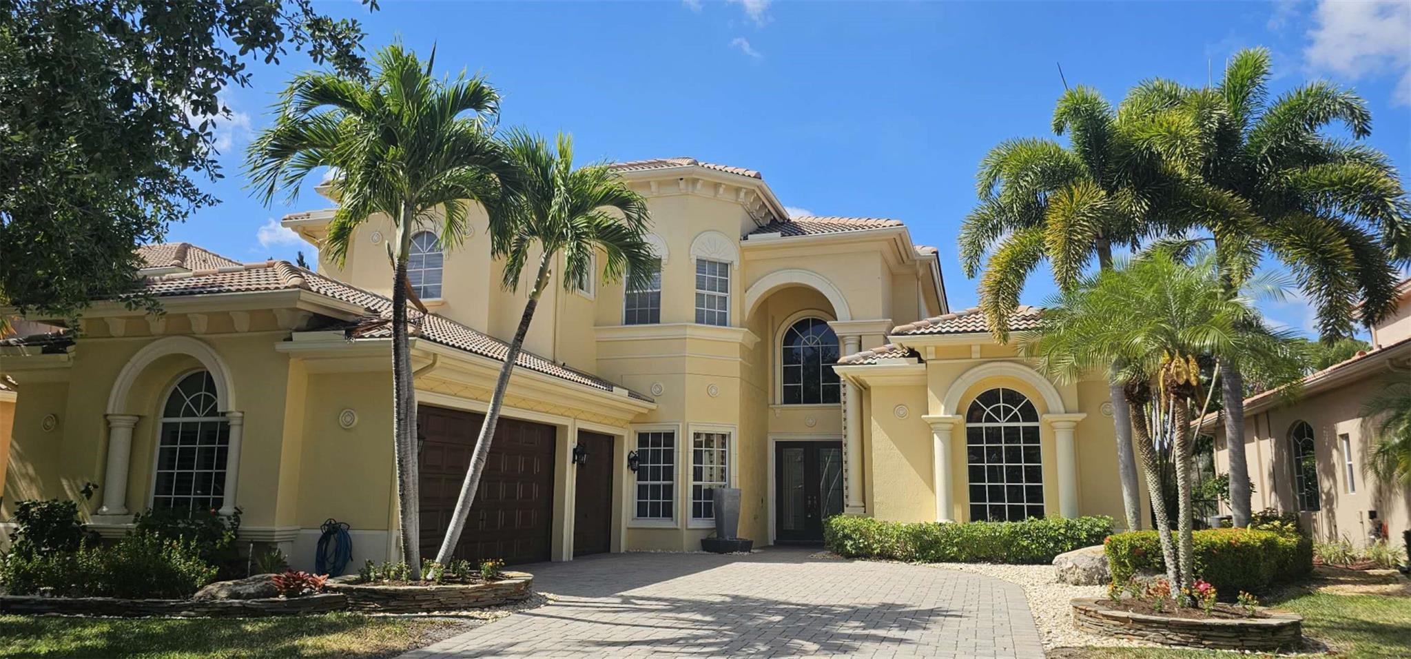 This gorgeous 5/4.5 home with Mediterranean style located on a cult-de-sac in 24 hour guard gated community Wellington View by Toll Brothers. Split floor plan with a master bedroom on each floor. This stunning home office with custom built shelves, perfect for organization and style add a touch of elegance. The kitchen has been beautifully renovated with brand new countertops and appliances. New impact entry door with plantation shuters throughtout the home. Step outside to enjoy quite bakyard oasis with a newly resurfaced pool. This home is a perfect blend of style and convenient location.