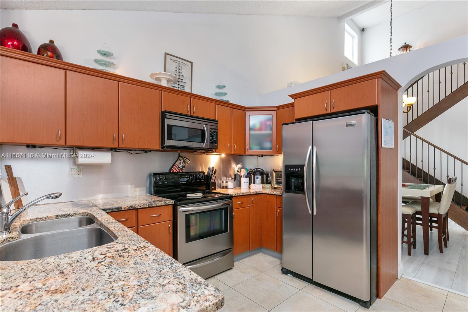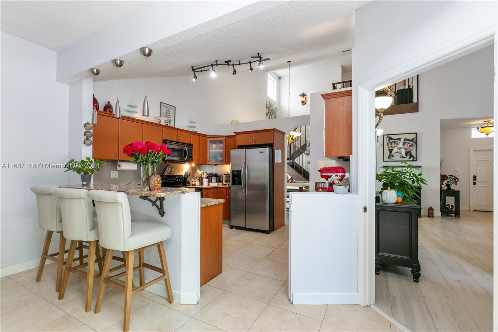 Welcome to your dream home! Step into a stunning open floor plan with soaring vaulted ceilings that create a spacious and inviting atmosphere. The generously sized owner's bedroom offers direct access to the backyard oasis, while the ensuite bathroom boasts double sinks, sleek quartz countertops, and a relaxing steam room—perfect for unwinding after a long day. New tile floors on the main level and elegant wood flooring on the stairs add a touch of luxury. With a brand-new roof (only two months old), all impact doors and windows, and a 2-year-old A/C, this home is ready for you to move in! Plus, enjoy the convenience of a built-in garage. NO HOA approval required, make it yours today!