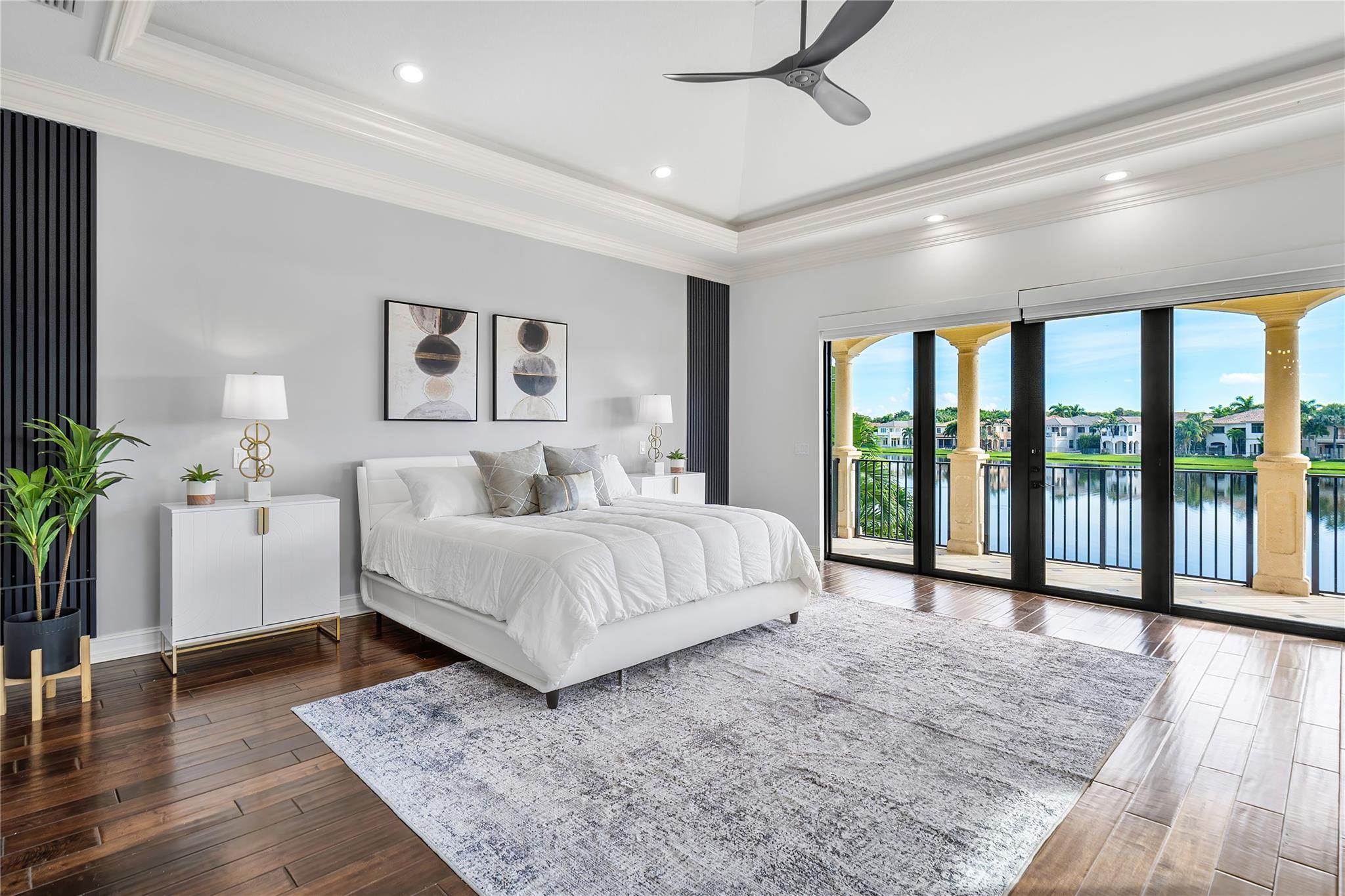 Discover the epitome of lakefront luxury at 17934 Monte Vista Drive, nestled on a large premium 16,117 SqFt cul-de-sac lot in The Oaks in West Boca. This meticulously remodeled 6,401 SqFt estate offers a blend of sophistication and comfort, with 6 bedrooms, 2 offices, and 8 beautifully upgraded bathrooms. The newly redesigned first floor sets the tone for entertaining, boasting a wet bar, wine cooler, and a chef's kitchen outfitted with a Wolf gas range, Sub Zero refrigerator, backlit onyx countertop island and custom cabinetry. The primary suite is a serene retreat, featuring two spacious walk-in closets and luxurious his-and-hers bathrooms... (SEE ADDITIONAL REMARKS)