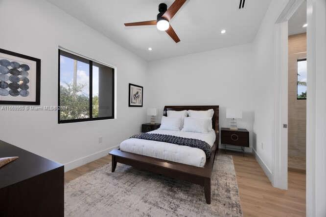 Custom built by the current owners. Corner location. Spacious, two story modern home with ample yard and outdoor space. Open kitchen with double wall oven, gas cooktop and large refrigerator. Floor to ceiling custom kitchen cabinets. Walk in pantry. Family room with 22 foot ceilings. Front room is used as formal living room and formal dining room. Lots of natural light from all four directions. First floor bedroom with walk in closet and full bath, great for guests or home office. Second floor has three large bedrooms with ensuite baths. Large primary bedroom walk in closet. Separate laundry room. Poured concrete second floor and concrete roof. Built like a bunker. One car garage plus gated parking for two or more cars + street parking. Not in a flood zone. Walk to Downtown Coconut Grove.