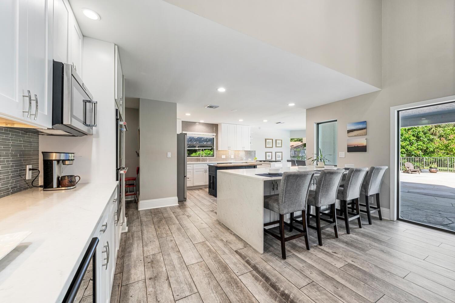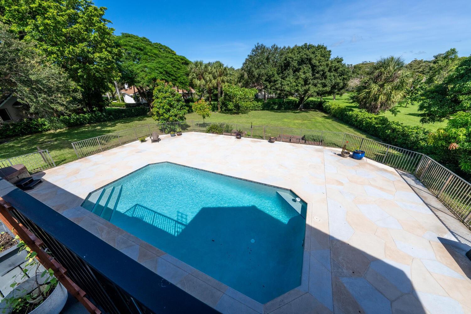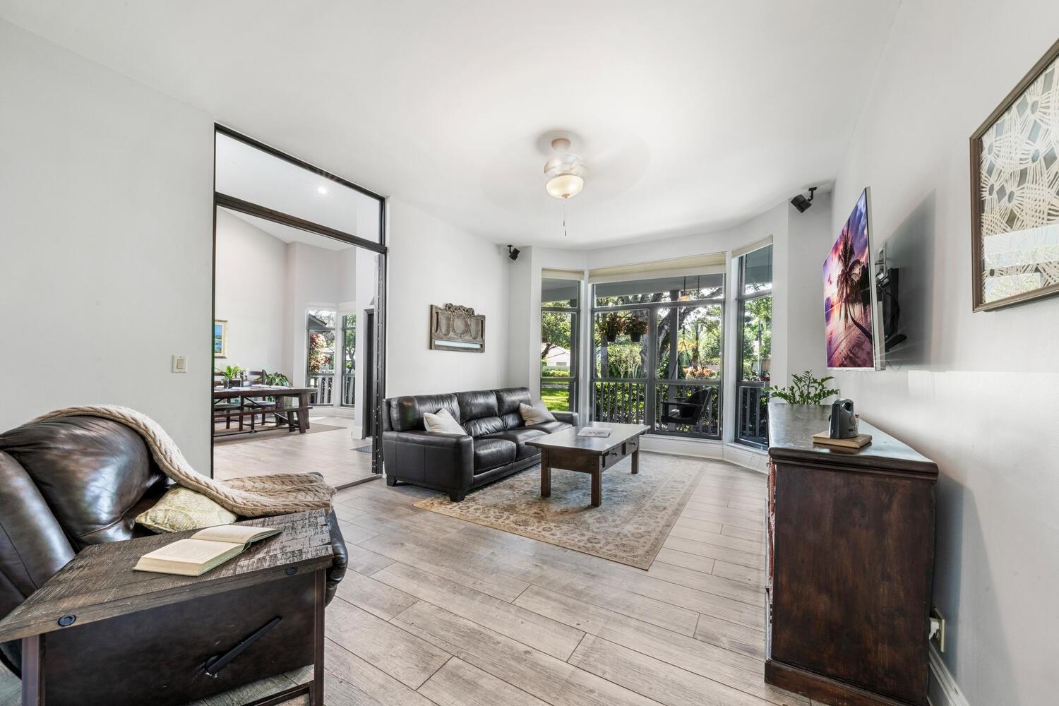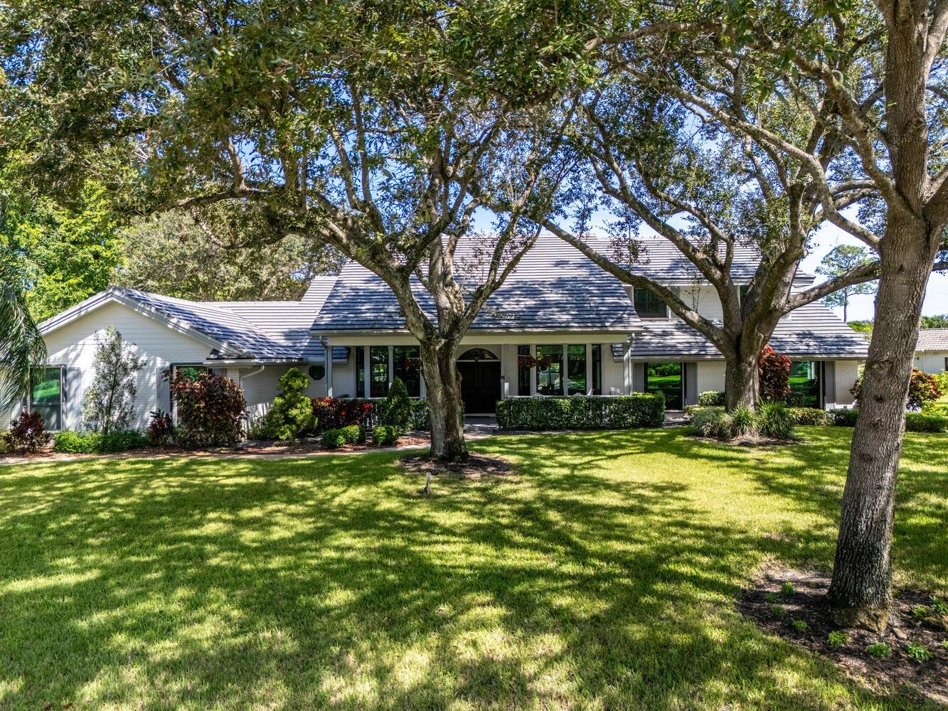 Step into STUNNING in this .79-acre estate-completely remodeled & exquisitely appointed! The charming front porch invites you into a spacious great room, featuring a floor-to-ceiling brick fireplace. Directly off the foyer is a spacious den/office. Open & light, the soaring, volume ceilings accentuate the space. Bathrooms have been recently & beautifully updated--especially the primary, w/the free-standing tub, frameless shower & double vanity. Only the lovely, primary bedroom suite is upstairs, w/his & her closets & a private balcony. The chef's kitchen boasts top notch appliances, including a gas cooktop, gorgeous, white cabinets & quartz countertop. A large, covered patio overlooks the pool & amazing yard! Extras include 4-car garage w/AC, roof 2018 & all impact windows & doors!