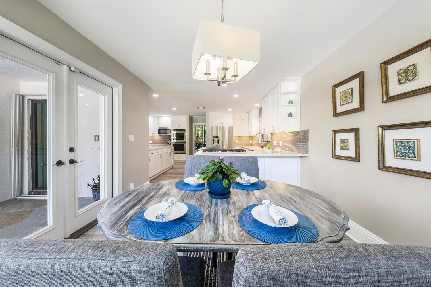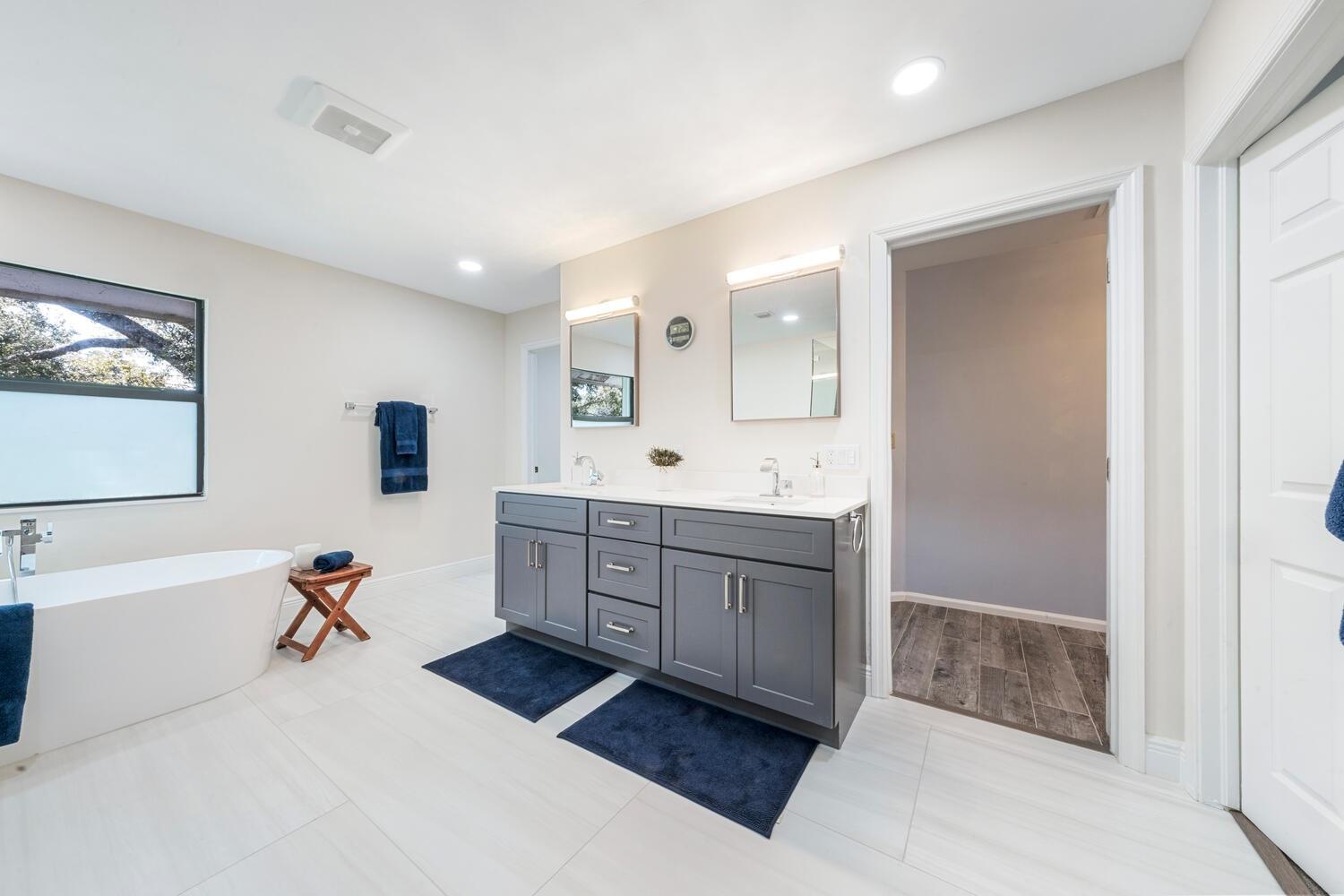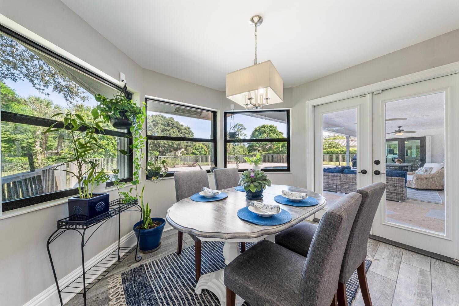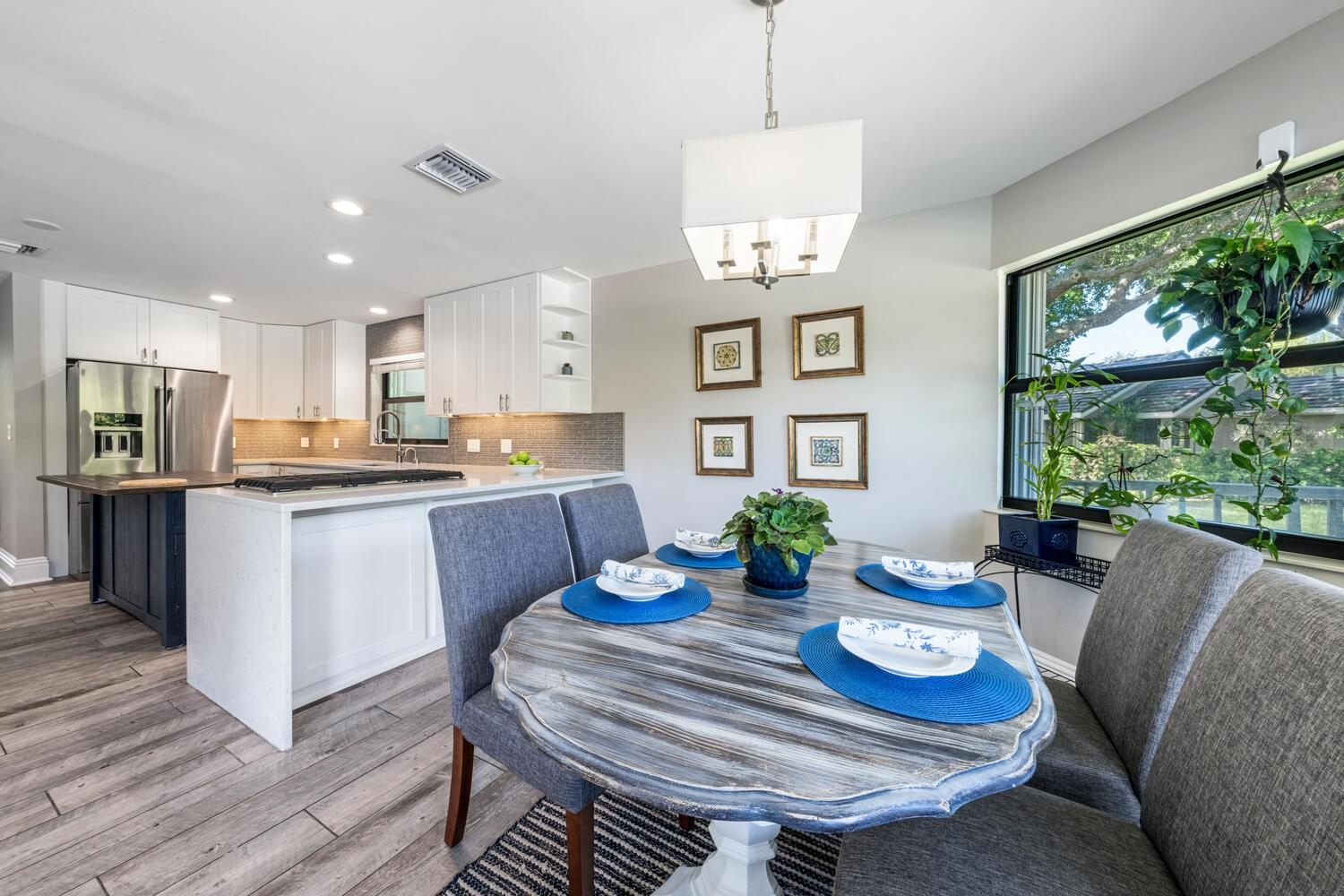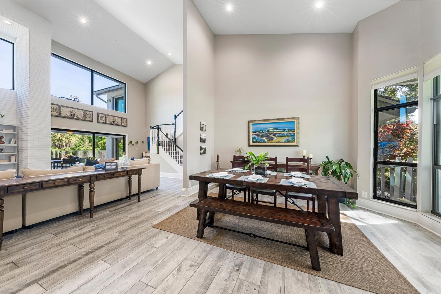 Step into STUNNING in this .79-acre estate-completely remodeled & exquisitely appointed! The charming front porch invites you into a spacious great room, featuring a floor-to-ceiling brick fireplace. Directly off the foyer is a spacious den/office. Open & light, the soaring, volume ceilings accentuate the space. Bathrooms have been recently & beautifully updated--especially the primary, w/the free-standing tub, frameless shower & double vanity. Only the lovely, primary bedroom suite is upstairs, w/his & her closets & a private balcony. The chef's kitchen boasts top notch appliances, including a gas cooktop, gorgeous, white cabinets & quartz countertop. A large, covered patio overlooks the pool & amazing yard! Extras include 4-car garage w/AC, roof 2018 & all impact windows & doors!