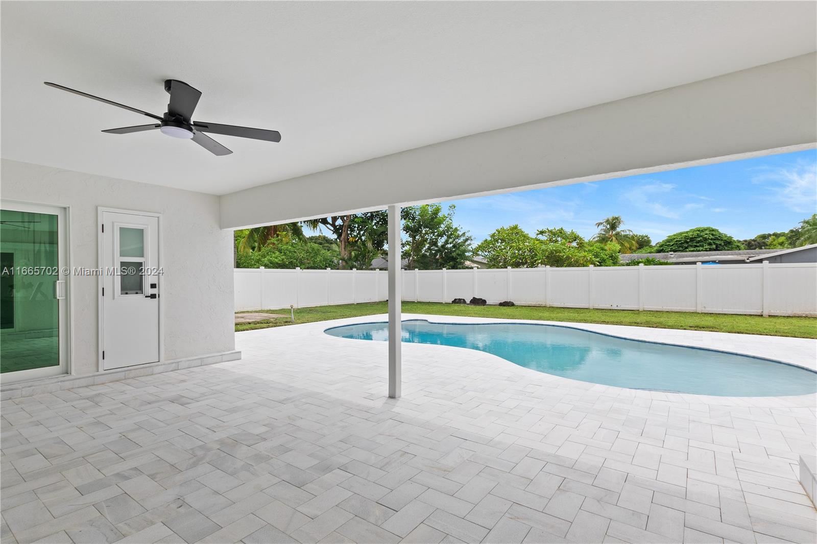 Open Concept House. The power of the transformation. It took 2 months to turn this charming house into a cozy space with a chic, modern, and practical touch. This style is characterized by simplicity, functionality, and connection with nature-family, using a palette of neutral colors, such as creams, beige, contrasted by the elegance of black, creating a unique and modern, fresh, and clean environment. Premium features, including S.S Appliances, Exotic Quartz Countertops, Cabinets, among others. Roof 2024, A/C less than 5 years old, impact windows and doors, PVC Fence around the entire property, Marble throughout the terrace, connecting with the pool deck and side walkways. New diamond brite in the pool,NEW water proof floor, situated on a serene cul-de-sac, two car garage