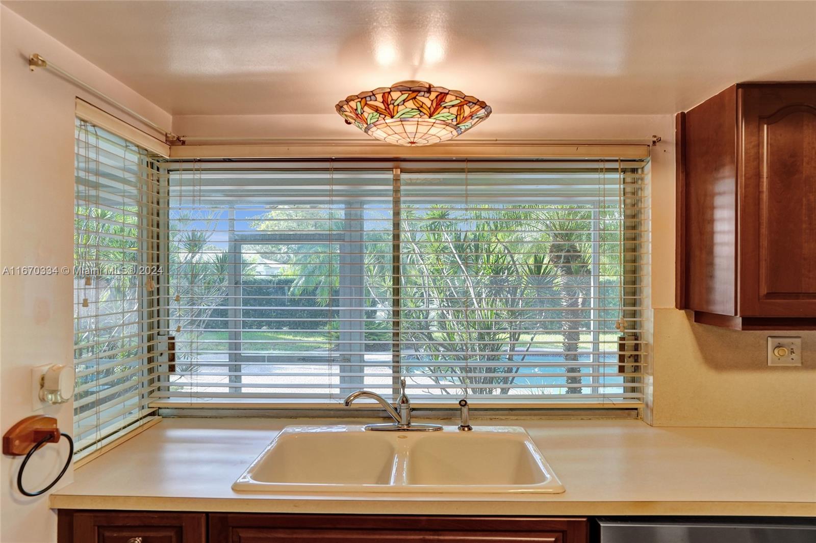 Enjoy serene water views from your fenced in backyard oasis with a privacy hedge. This well-designed home offers both a separate family room and living room, with a preferred split-bedroom. Center kitchen with newer stainless appliances, microwave and pantry. Large walk-in closet in owners room. New Electrical Box in Garage. Beautiful second bath. Inviting open pool and covered patio that has the convenience of accordion hurricane shutters to make getting storm ready easier! Garage is oversized with loads of storgae closets off of a beautiful stamped concrete driveway. Priced to sell!
