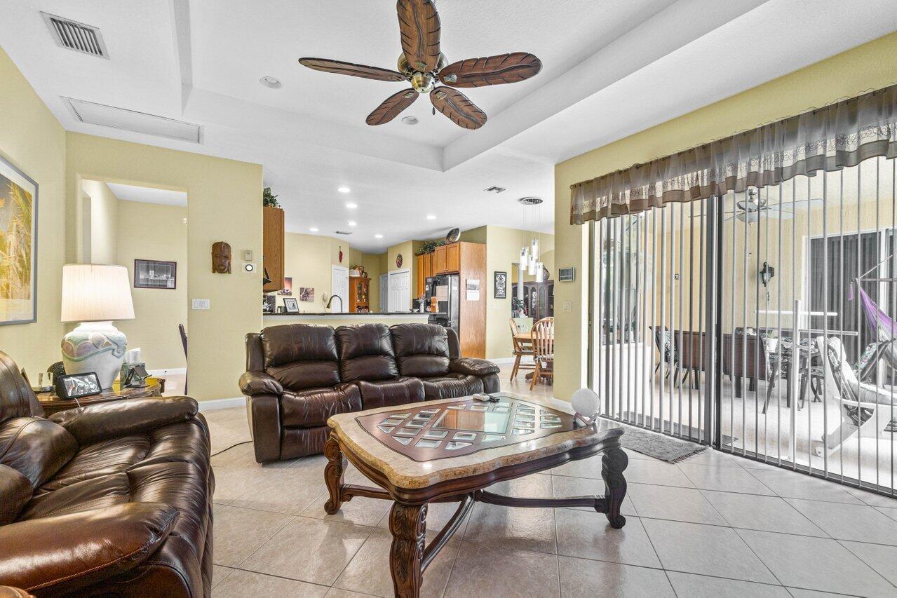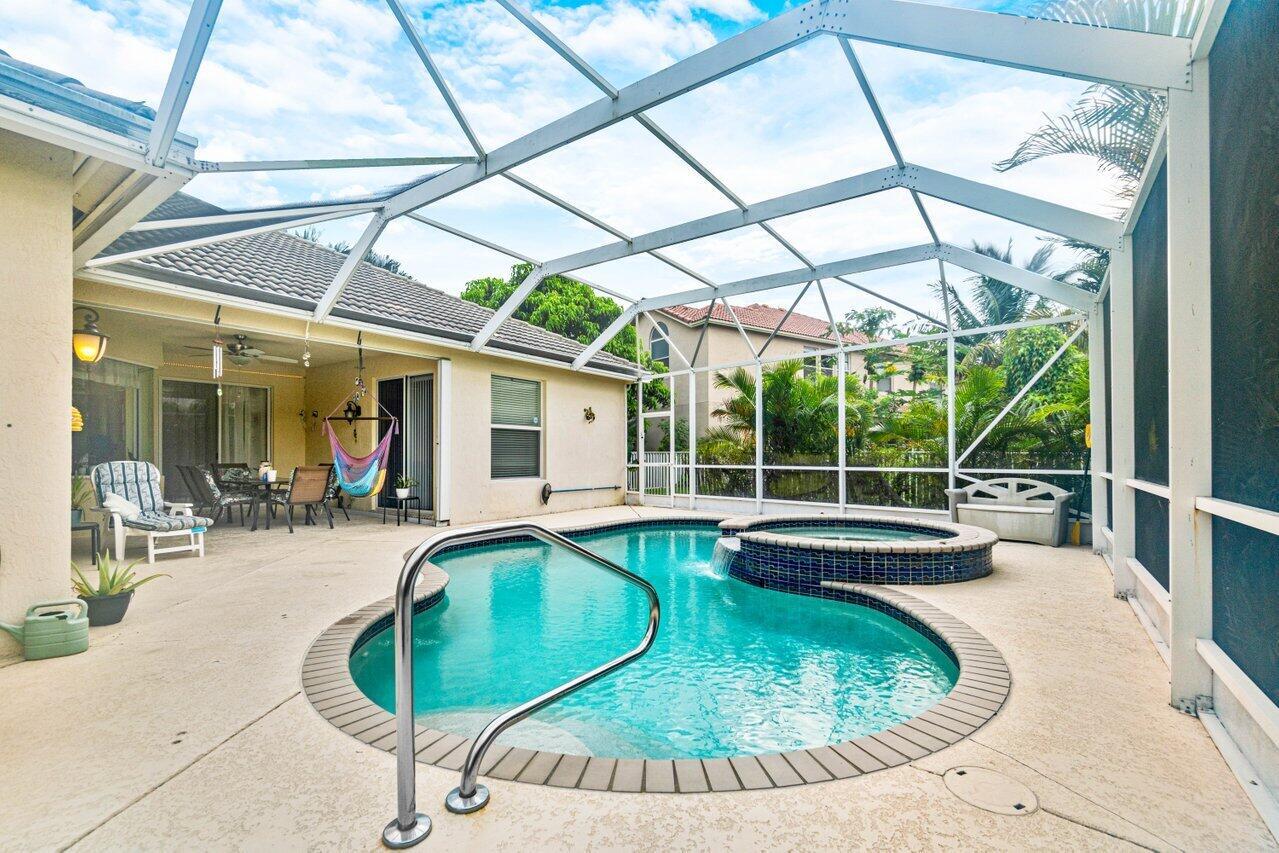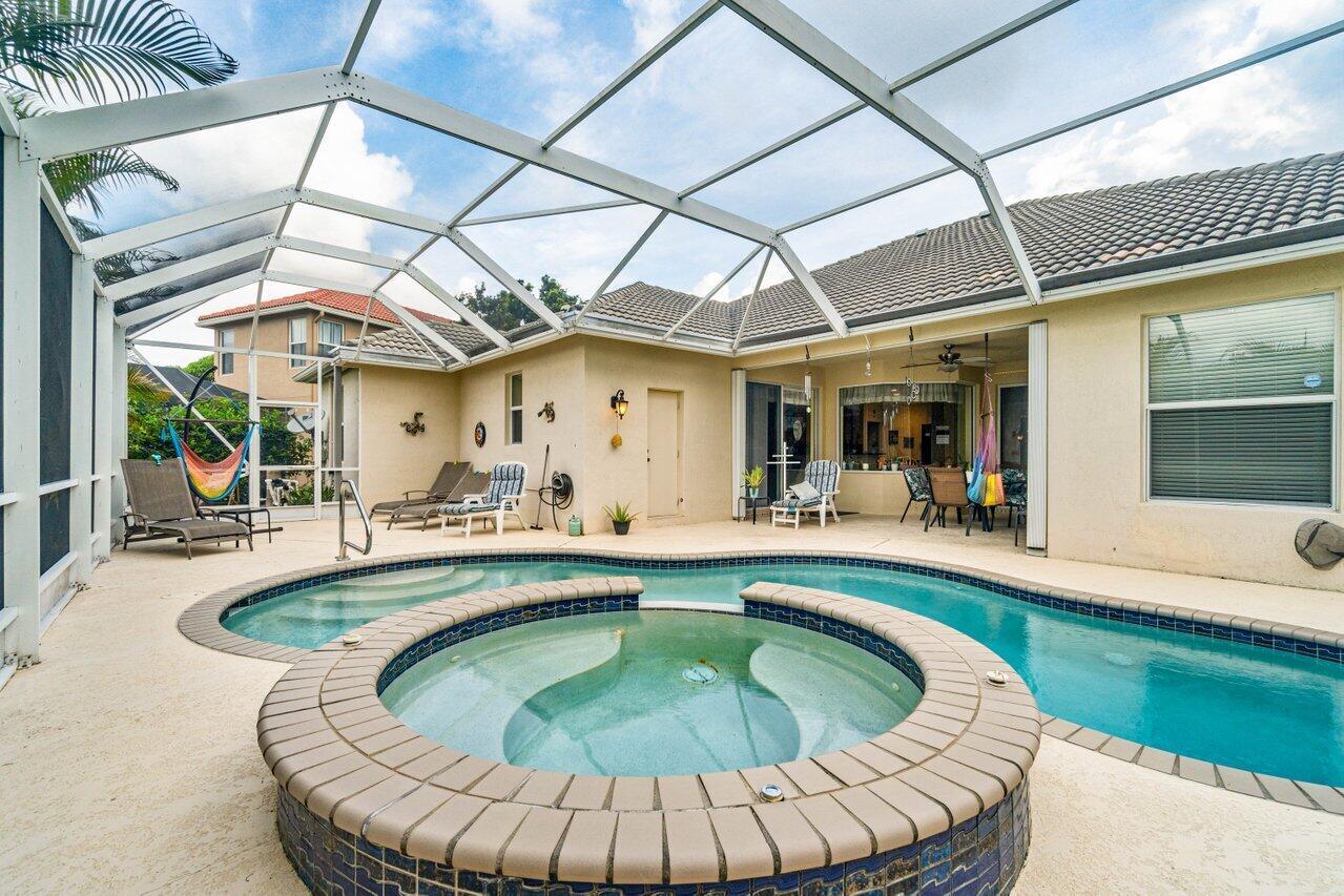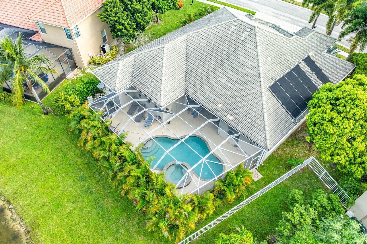 AMAZING! 4 bed, 3 bath POOL HOME on premium LAKE VIEW! The spacious TRIPLE SPLIT floorplan boasts volume tray ceilings w/ tons of natural light, REDONE guest bath w/ frames shower and new vanity. The entryway living & formal dining areas lead to the kitchen featuring granite counters, oversized pantry, prep island, & breakfast area. The kitchen opens to a large family room w/ sliders leading out to your private backyard paradise. The covered patio is perfect for BBQs & outdoor entertaining. Relax by the pool as you enjoy the privacy of the palm tree hedged yard w/ pristine lake views beyond. The private master retreat boasts patio sliders. The 4th bedroom is adjacent to a Cabana Bath for easy access from the pool. This is Florida living at its finest!