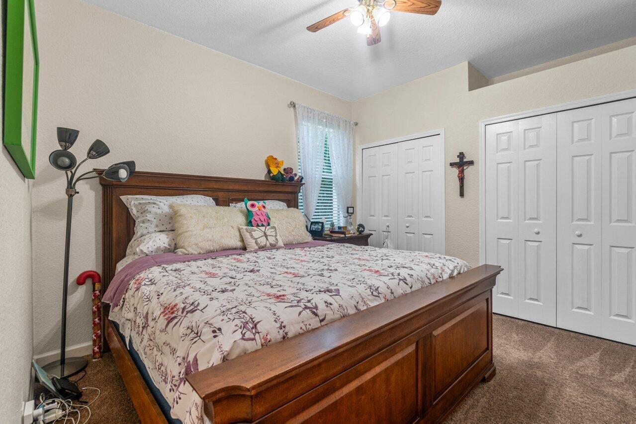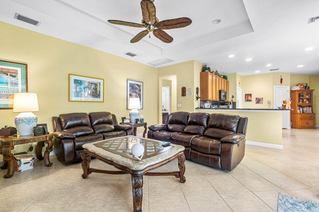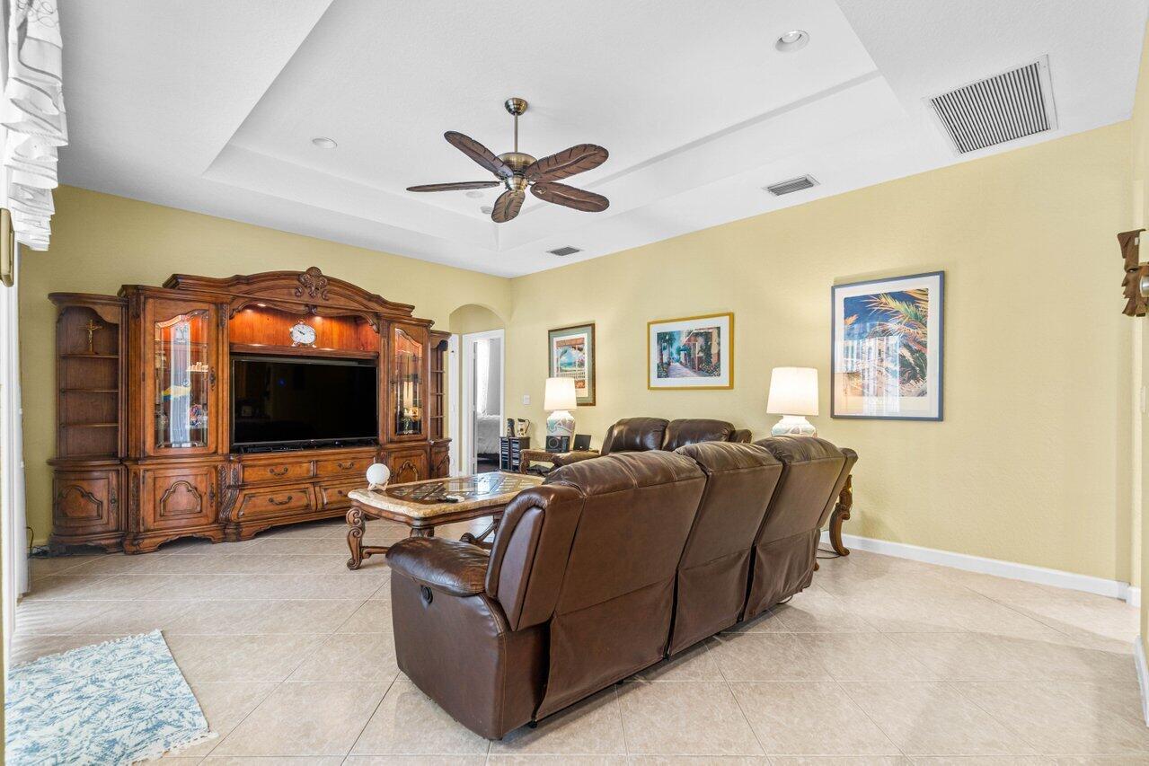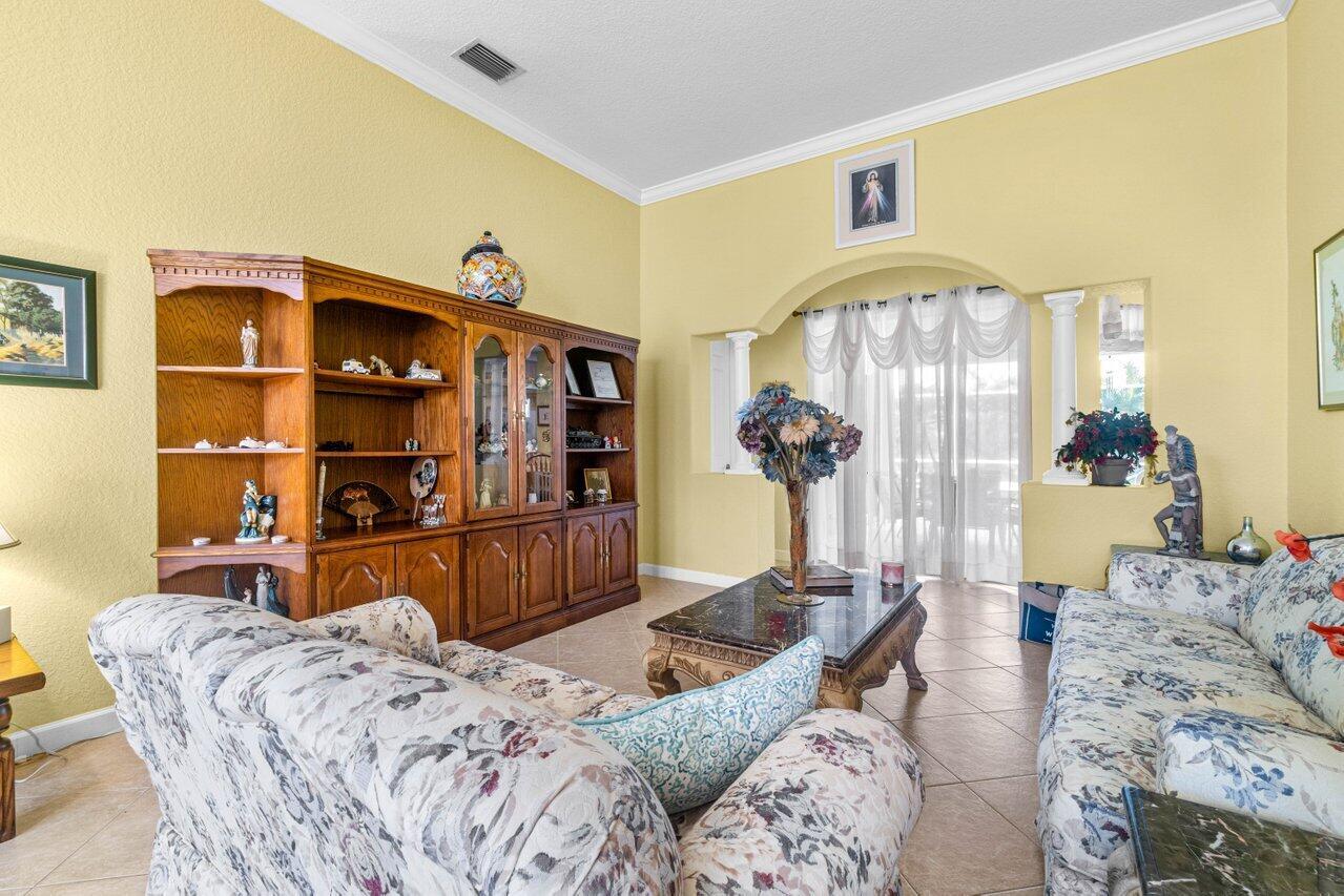 AMAZING! 4 bed, 3 bath POOL HOME on premium LAKE VIEW! The spacious TRIPLE SPLIT floorplan boasts volume tray ceilings w/ tons of natural light, REDONE guest bath w/ frames shower and new vanity. The entryway living & formal dining areas lead to the kitchen featuring granite counters, oversized pantry, prep island, & breakfast area. The kitchen opens to a large family room w/ sliders leading out to your private backyard paradise. The covered patio is perfect for BBQs & outdoor entertaining. Relax by the pool as you enjoy the privacy of the palm tree hedged yard w/ pristine lake views beyond. The private master retreat boasts patio sliders. The 4th bedroom is adjacent to a Cabana Bath for easy access from the pool. This is Florida living at its finest!