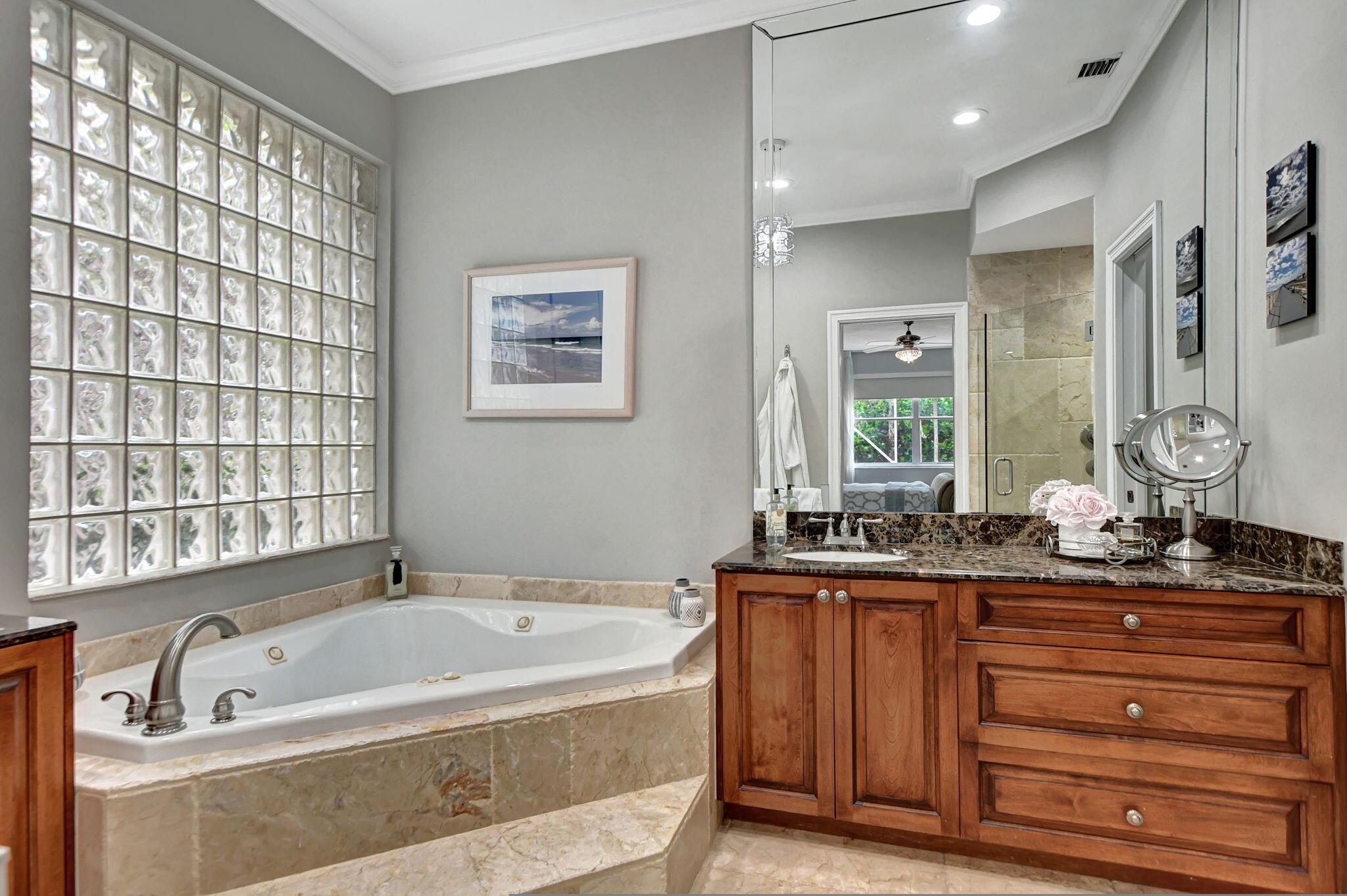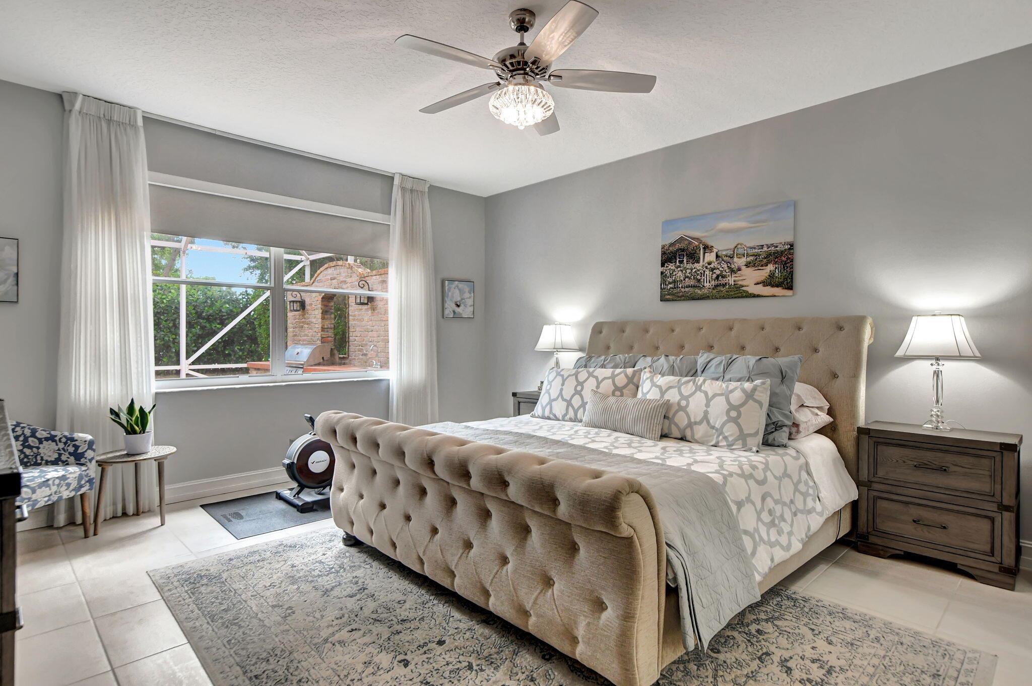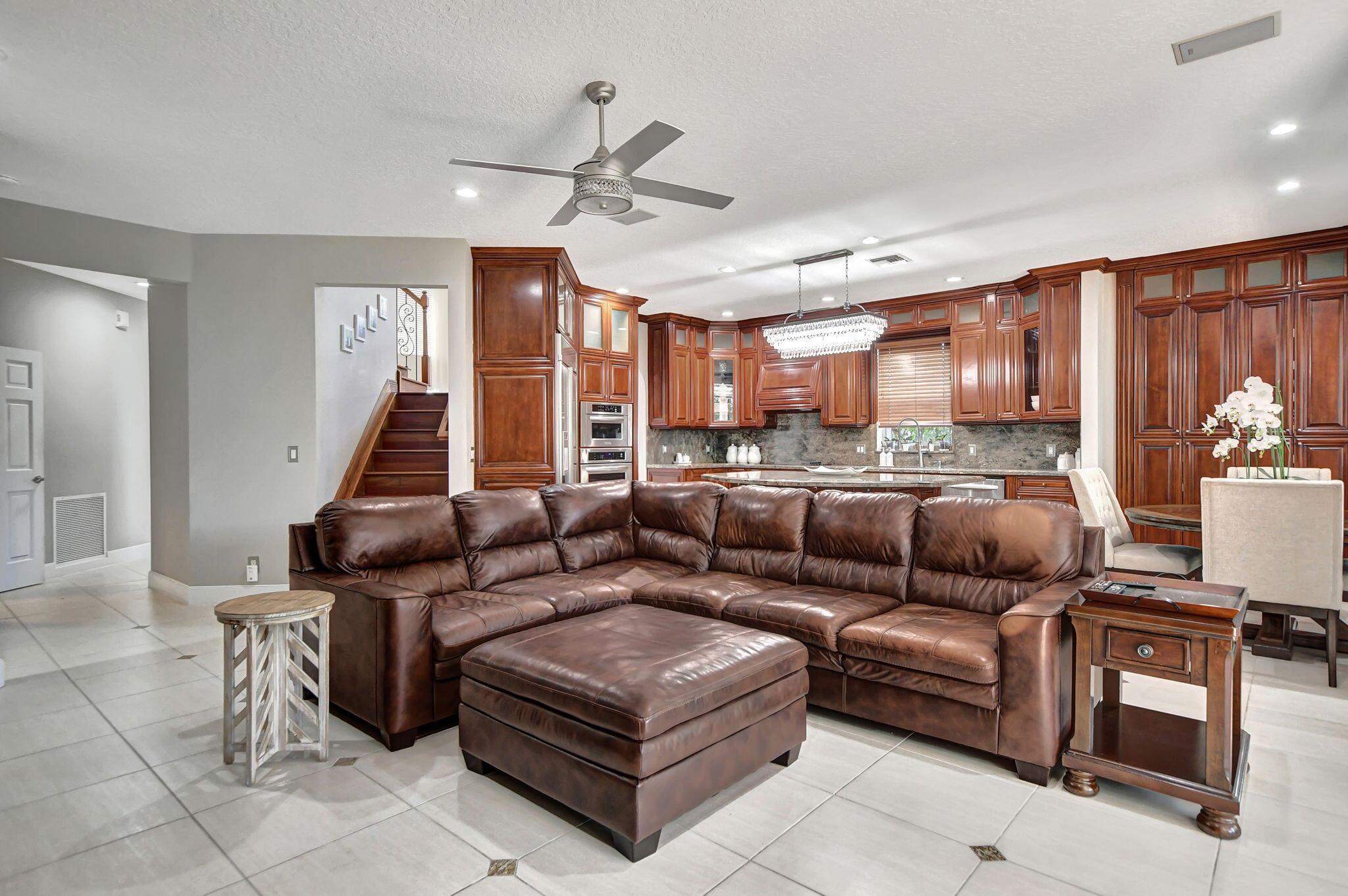 Updated home in the Resort style community of Boca Falls. Kitchen features Wall oven & microwave, large island, under cabinet lighting, large pantry & open concept to family room. Luxurious first floor primary bedroom boasts volume ceilings & two walk in closets. Primary bathroom fully renovated with designer cabinets, granite counter tops, free standing jetted tub & separate large shower with body sprays. Family room features volume ceiling & direct access to screened patio with built-in summer kitchen & water feature. Upstairs features a loft, 4 bedrooms & 2 luxury bathrooms with one bedroom having its own ensuite bathroom. Low HOA fees that include cable and internet.