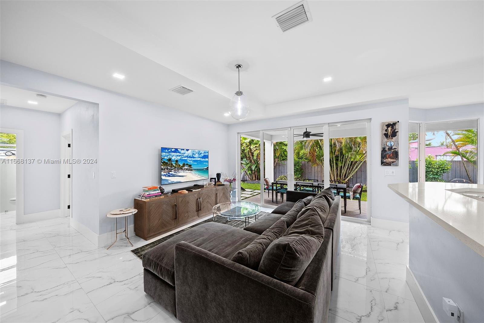 2016 custom built home in the burgeoning NOMI neighborhood. 4BR/3Ba + 2-Car garage on an oversized fully fenced corner lot w/room for a pool. High ceilings, open concept kitchen/living w/bonus/flex space perfect for a home office! Stainless appliances & quartz counters, separate laundry and pantry/storage step out to your garage. Primary ensuite with walk-in closet, large bathroom w/separate tub/shower. Fabulous split plan w/3 additional spacious bedrooms (one ensuite). Living area opens to a covered patio overlooking your private garden and spacious yard. This is a turnkey property with nothing left to do but move in! Impact windows/doors, high efficiency a/c installed in 2024, fully fenced and oversized corner property. Offered AS-IS.