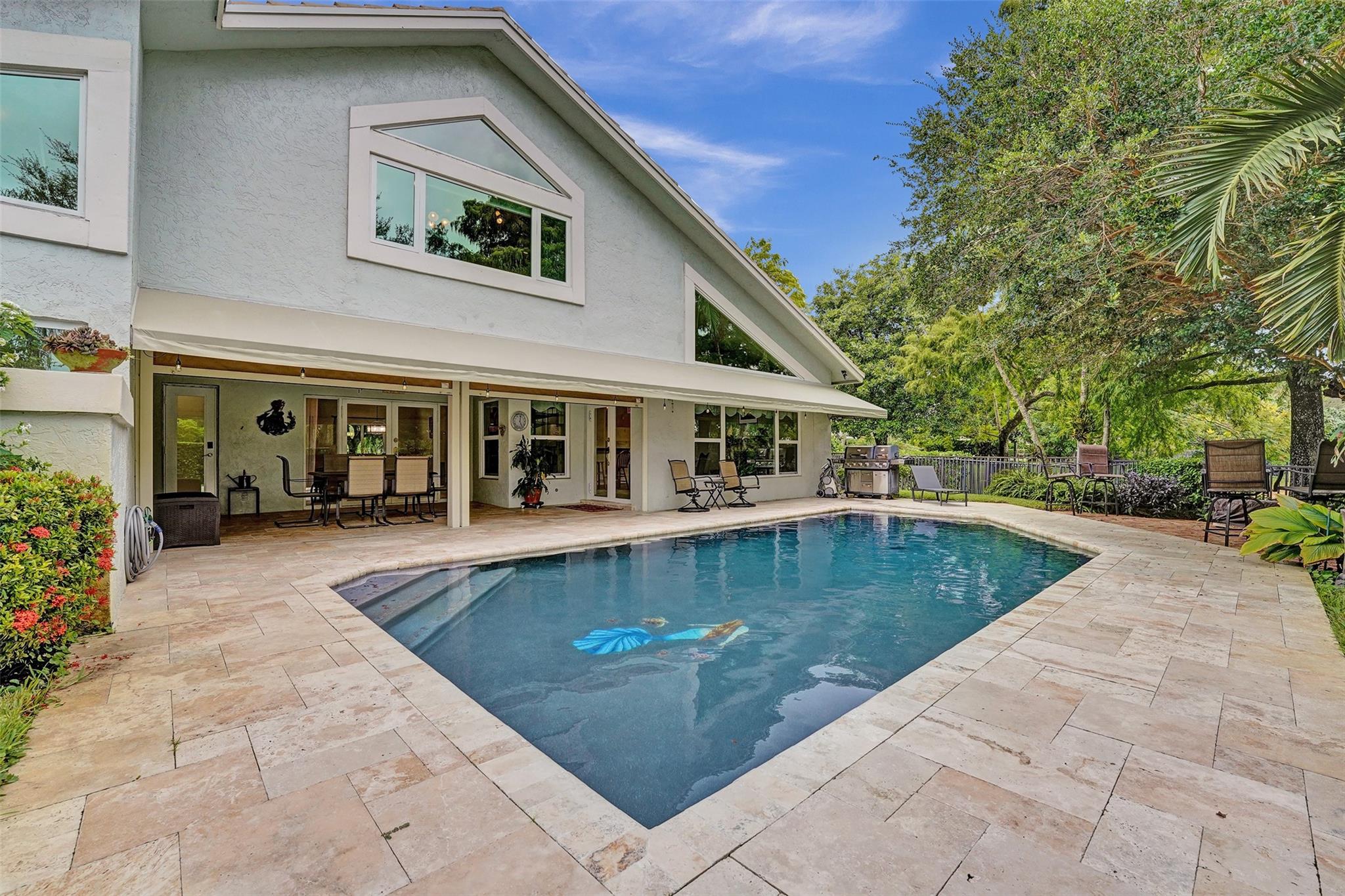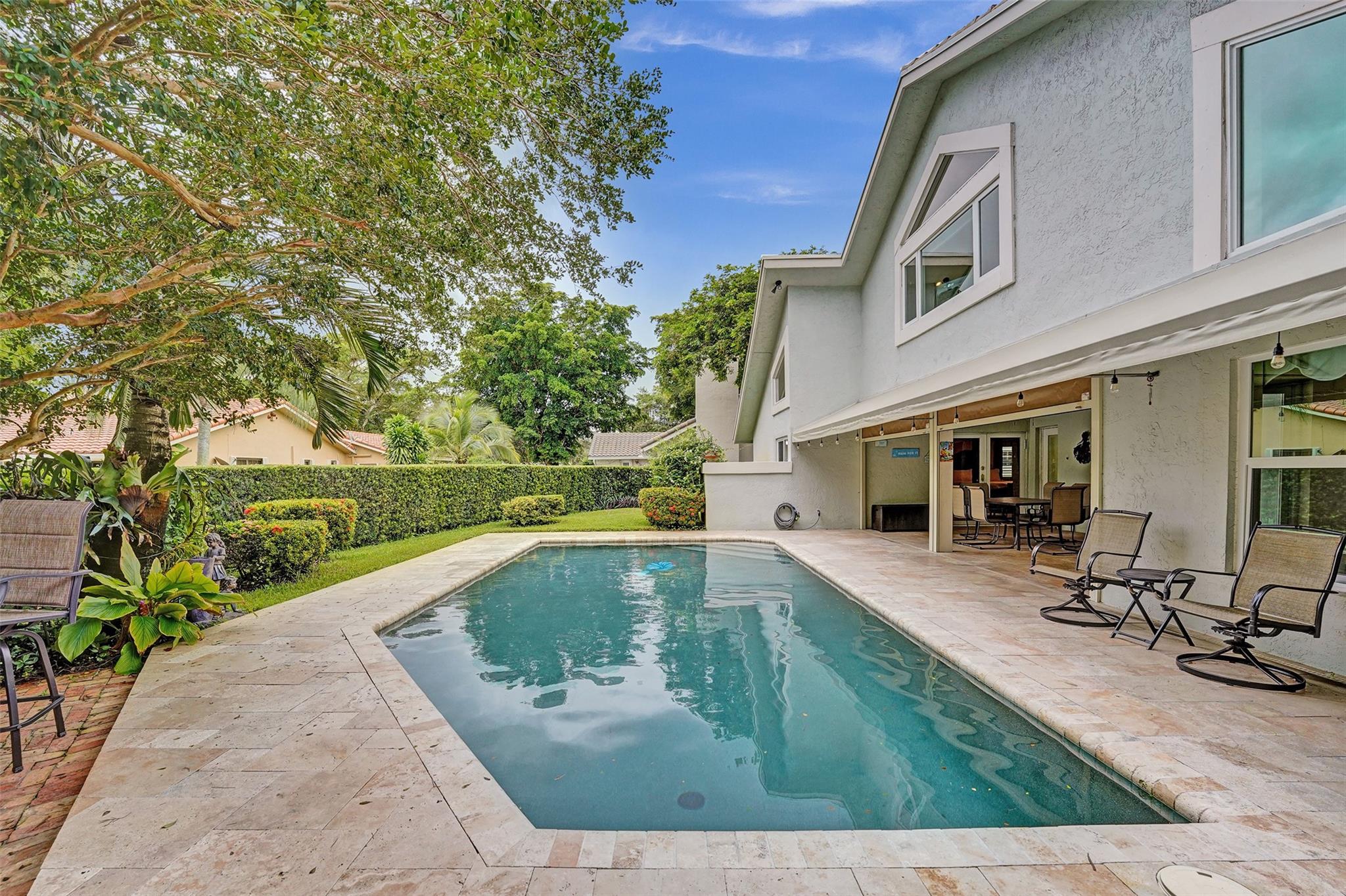 Welcome to exclusive Lago Mar Colony. Lago Mar is a premier, gated, golf course community consisting of 98 custom built homes & 27 condominiums. This spacious 4 bed, 2.5 bath, pool home has been lovingly maintained & features soaring vaulted ceilings that create an airy ambiance. A versatile loft space awaits your imagination, whether you envision an office, library, or a personal retreat. Situated on the 15th fairway, you’ll enjoy golf course views from your breakfast area & backyard. Additional features include a new roof (2021), complete hurricane windows & doors, & a wood burning fireplace. Conveniently located minutes to all major highways, FLL Airport, Sawgrass Mills Mall & American Heritage School. Do not miss the opportunity to experience luxury living in this charming community.