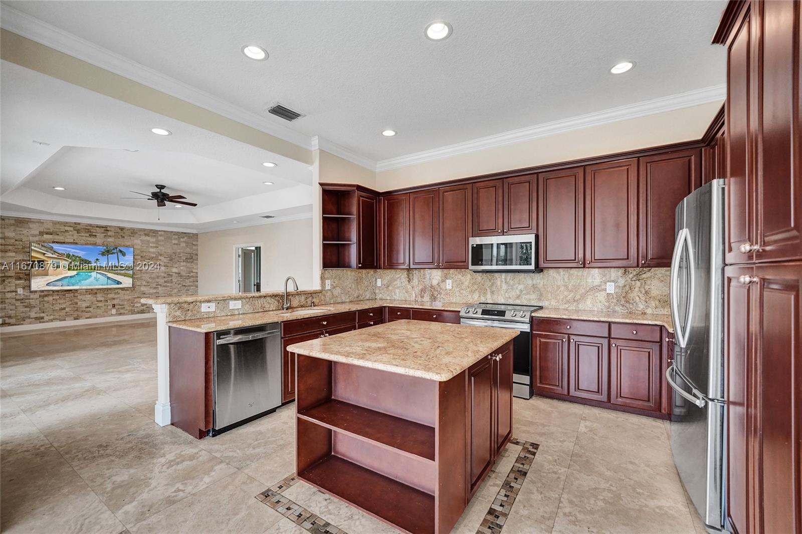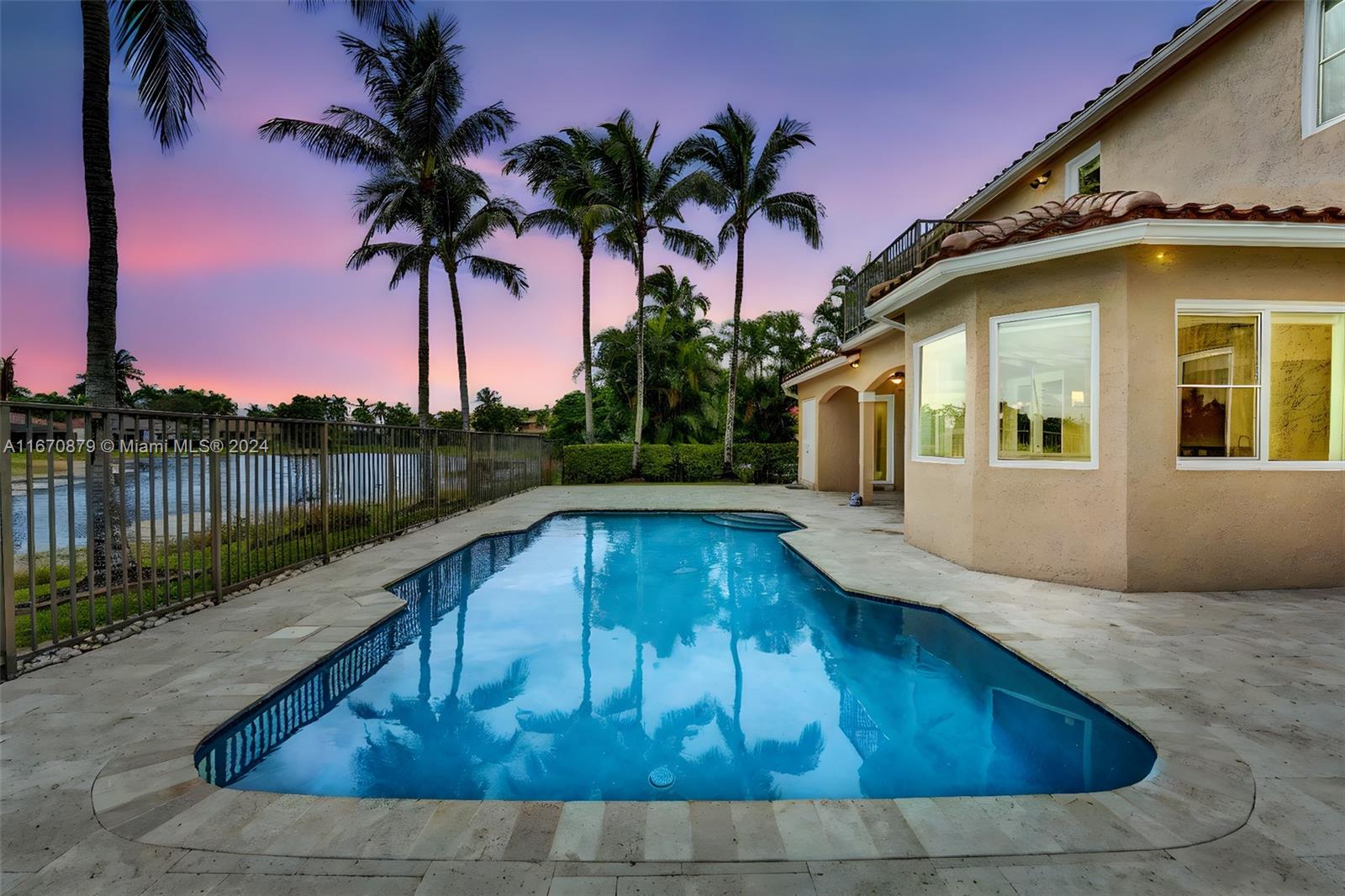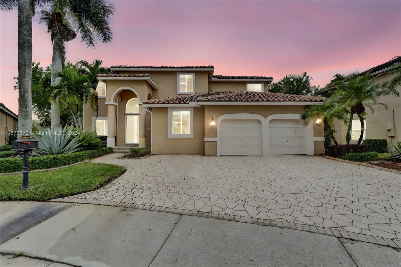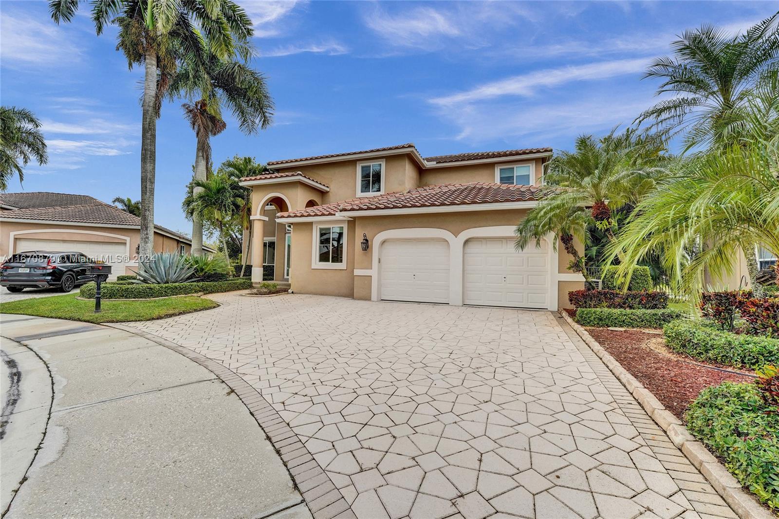 Discover a hidden gem in the prestigious Weston Hills CC—a remarkable two-story home situated on an expansive Cul-de -sac lot with FULL IMPACT window protection, IMPACT Doors plus a NEW 2018 ROOF! This property offers 5 bedrooms, 3.5 bathrooms, and a spacious layout with beautiful marble and wood flooring throughout. The oversized master suite on the second floor showcases breathtaking sunset and pool views from the open balcony, providing the perfect retreat. The gourmet kitchen boasts granite countertops, stainless steel appliances and a center island, ideal for hosting and entertaining. Outside, enjoy a sparkling pool with a travertine pool deck, perfect for relaxation and entertaining. With a large driveway and a 2-car garage, this home offers ample space for parking and convenience.