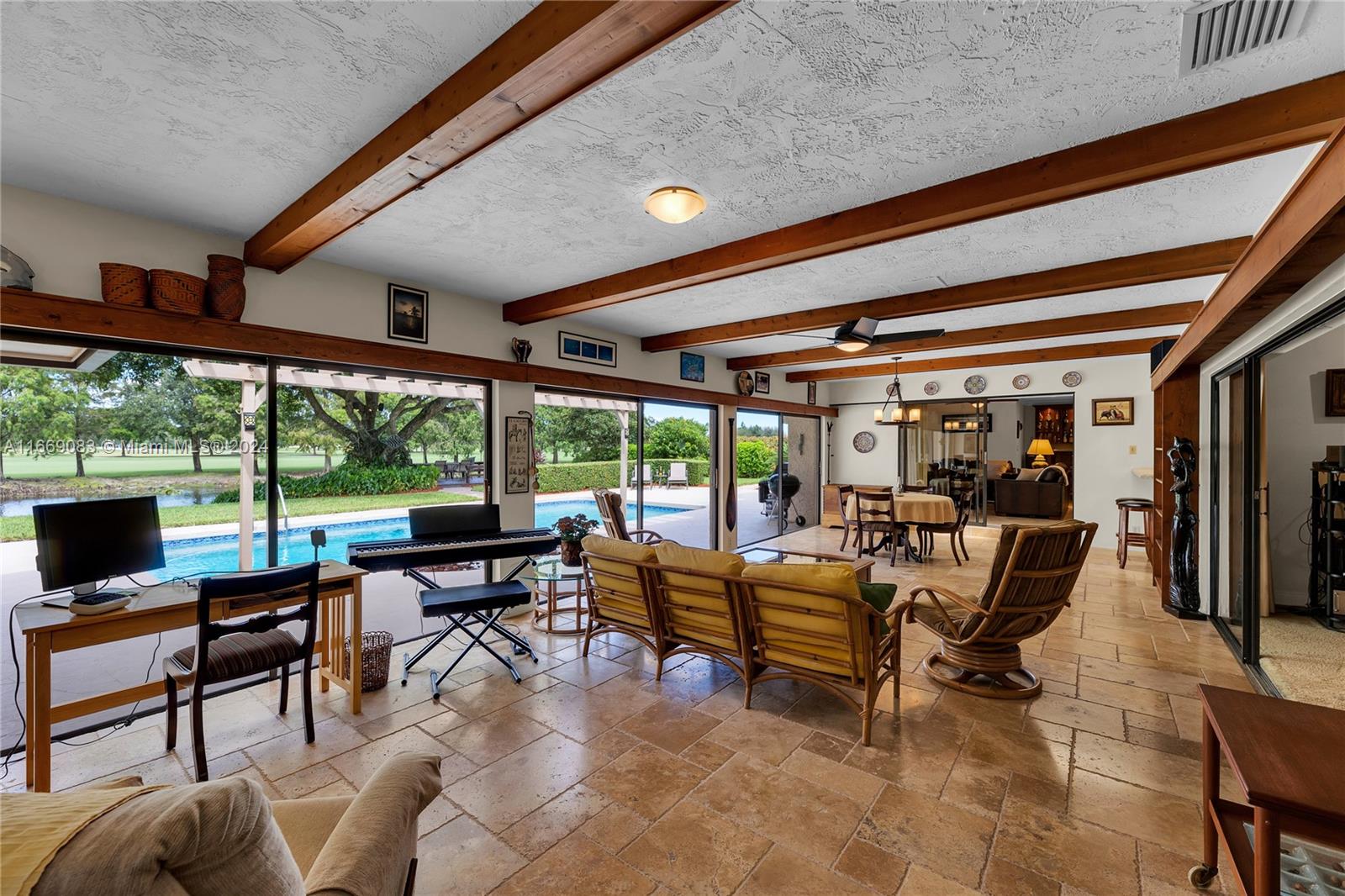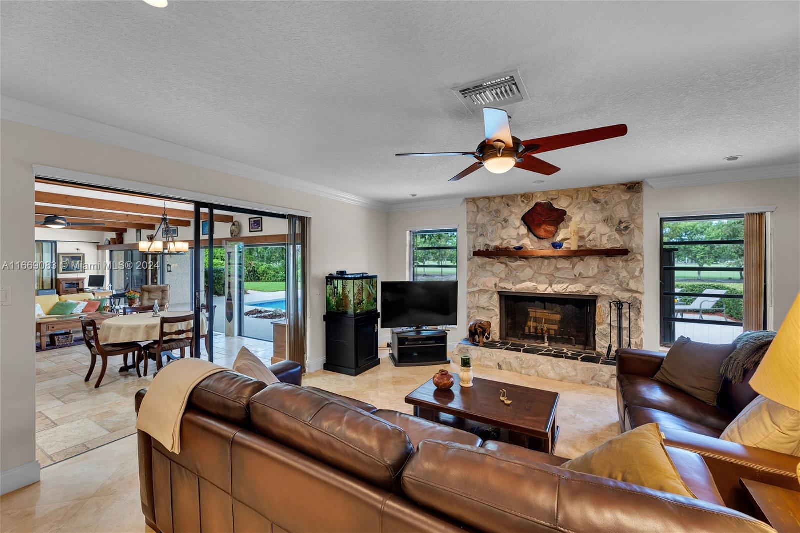 Experience luxury living in Lago Mar Colony, Plantation's hidden gem community! This beautifully maintained four-bedroom, three-bath pool home offers a breathtaking golf course and water view from your backyard, perfect for unwinding and entertaining guests. This home offers a newer roof (2020), two A/C (Trane and Carrier), pecan wood floors in bedrooms, a newly resurfaced pool, and new equipment. Stainless Steel Kitchen Aide appliances. Home security. New hurricane-rated garage door. 24/7 gated-security. Home theatre, working fireplace, bar area, and spacious Florida room that overlooks one of the best views in the community.Centrally located and just minutes to all major highways, FLL airport, Beaches, and downtown Las Olas. Walking distance to American Heritage HS