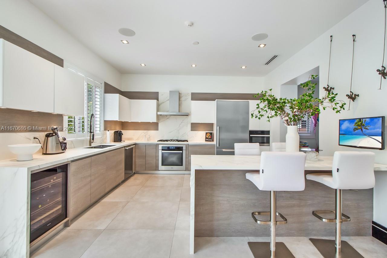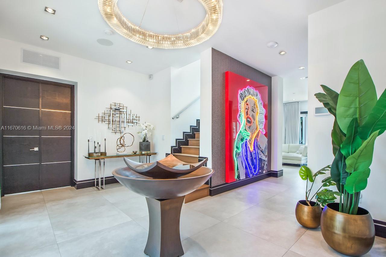 Contemporary home in Miami Beach surrounded by lush tropical landscape and situated in front of the Golf Club. The home was renovated into a masterpiece in 2016. This 2-story home is gated with an elegant entry and offers an expansive open modern floor plan perfect for entertainment. The energy efficient smart home features 4 bedrooms, a bonus room that can be converted into a bedroom, and 4.5 bathrooms. Master suite is conveniently located downstairs. Open family-friendly kitchen leads into TV family lounge and dining room, featuring Miele appliances and quartz waterfall counters. Large outdoor space with private heated pool, summer kitchen, and cabana. Enjoy the Miami Beach lifestyle in this family-friendly neighborhood within walking distance to Lincoln Road and other top attractions!