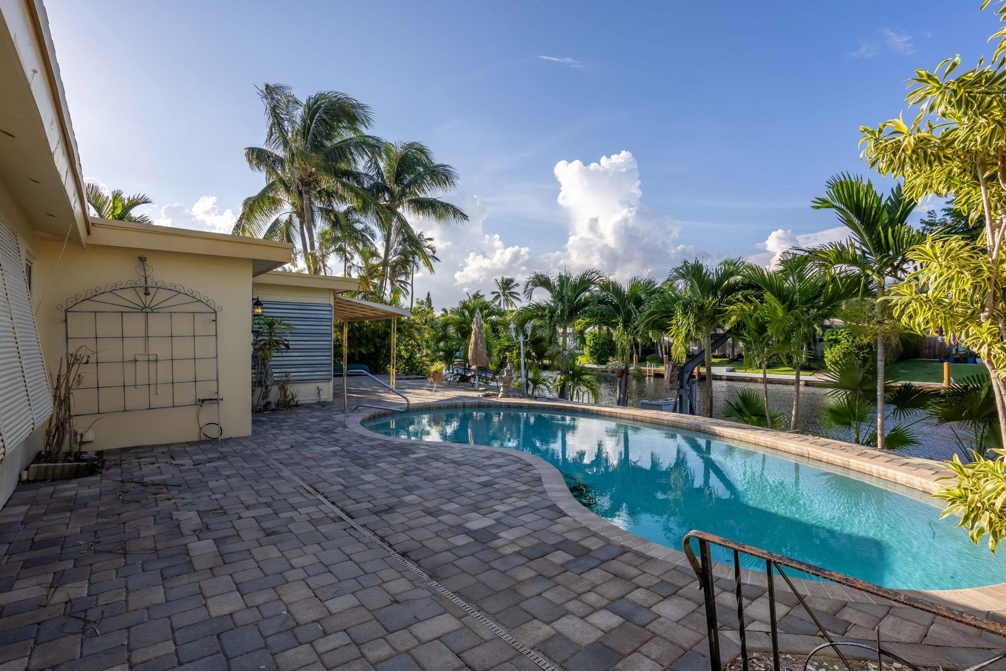 Welcome to this charming elegant home nestled in Cypress Harbor, on a deep water ocean-access canal & 2 tall bridges accommodate large vessels, 15-20 mts to ocean. This well-maintained residence blends comfort & style, featuring spacious living areas filled with natural light. Enjoy the open floor plan, ideal for entertaining & an efficient kitchen with a window overlooking the pool & canal. Special features include large closet space, laundry room, wall-to-wall built-in bookshelf & a beautiful Florida room. Step outside to your private oasis & enjoy the pool, lush landscaping, a patio for outdoor gatherings & fun. This prime location is minutes from beaches, dining, grocery shopping, Pine Crest School/Westminster Academy & more! Roof 2 yr, Impact Windows, 2 Exterior Storage Rooms