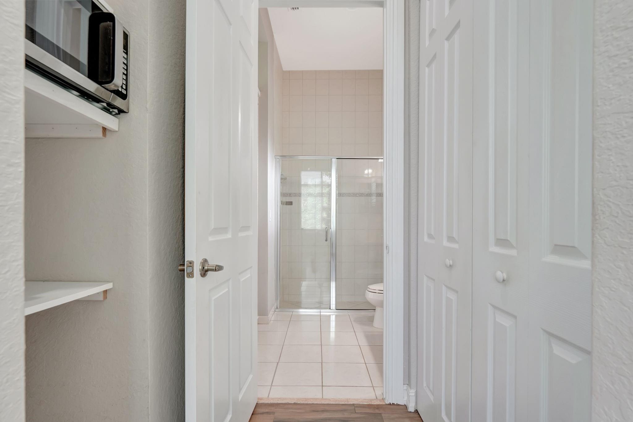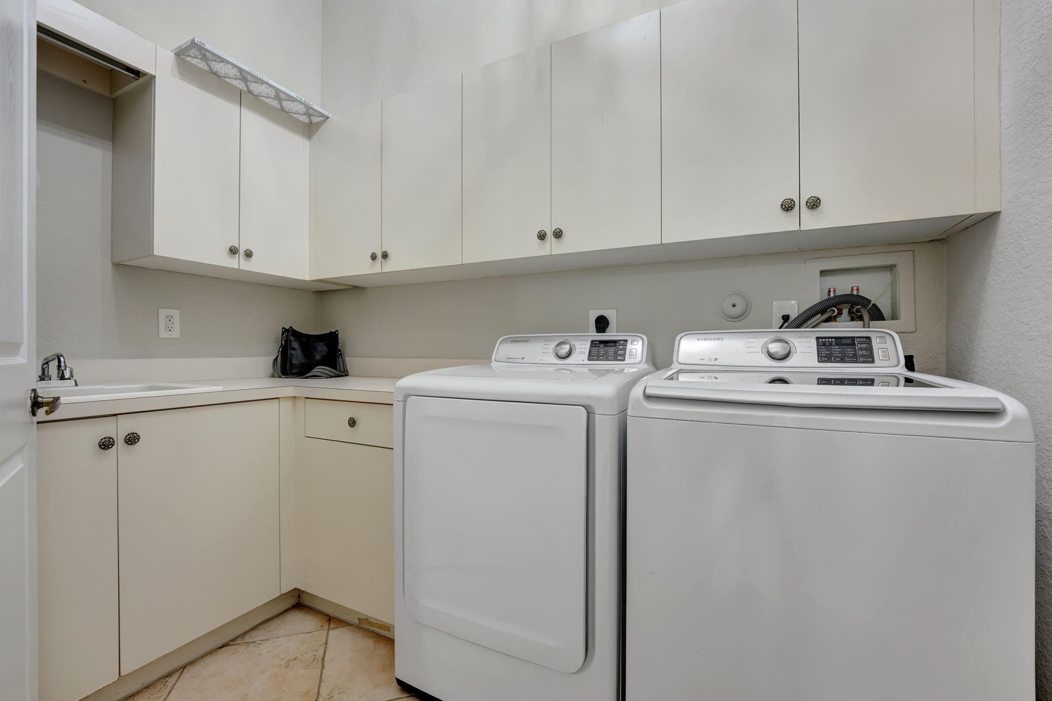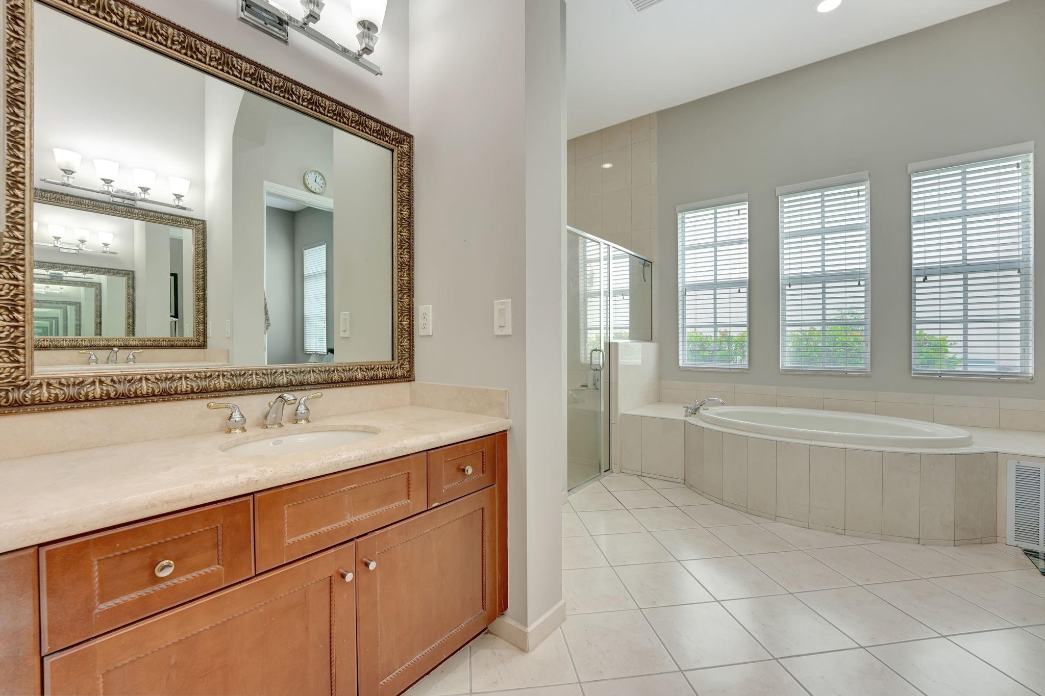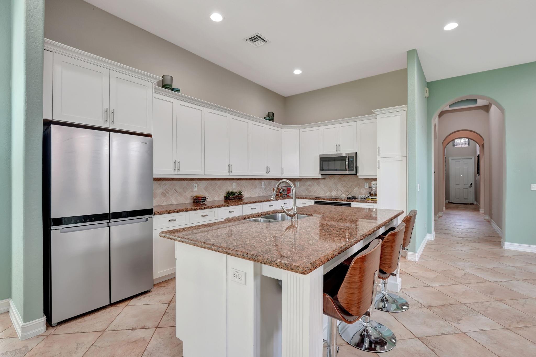 Stunning Modern Mediterranean Style Home Located in Beautiful Hero Bay, Featuring 4 Bed / 3 full Bath with a Guest House. Fenced-In Garden View Lot W/Room For Pool - 3 Car Driveway & 2 Car Garaje, Tile Floor Throughout Entire Home. Open Family Room W/Lots Of Natural Light & Volume Ceilings, White Kitchen Cabinets W/Granite Countertops, S/S Appliances, Tile Backsplash, Center Island Seating. Formal Dining Room -Custom Closets- Master Suite W/Walk-In Closet, Spacious Baths with Dual Vanity Sinks, Tub & Glass Shower. Screened-In Patio Includes Entrance To 4Th Bedroom (Guest house) & Cabana Bath . Central Vac, Yard W/Room To Build A Pool. Enjoy Guard Gated Community, Resort Style Clubhouse Amenities & A-Rated Schools.