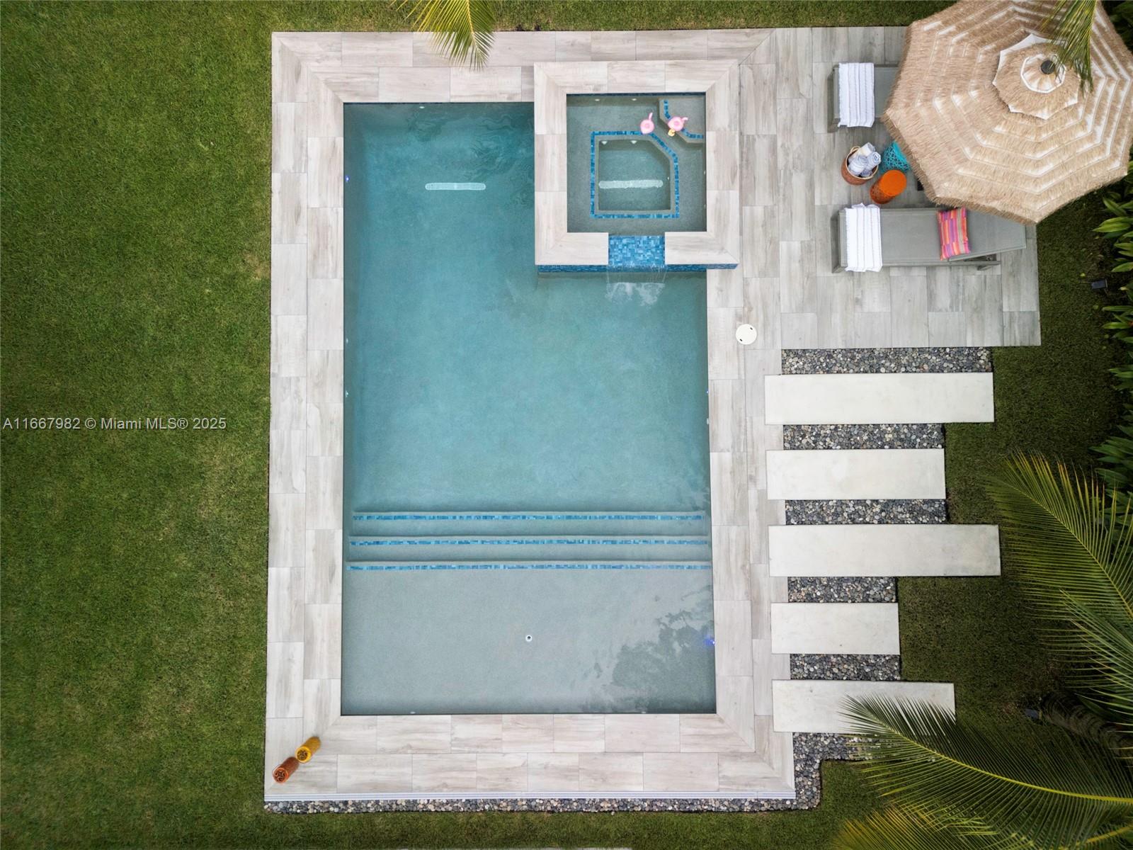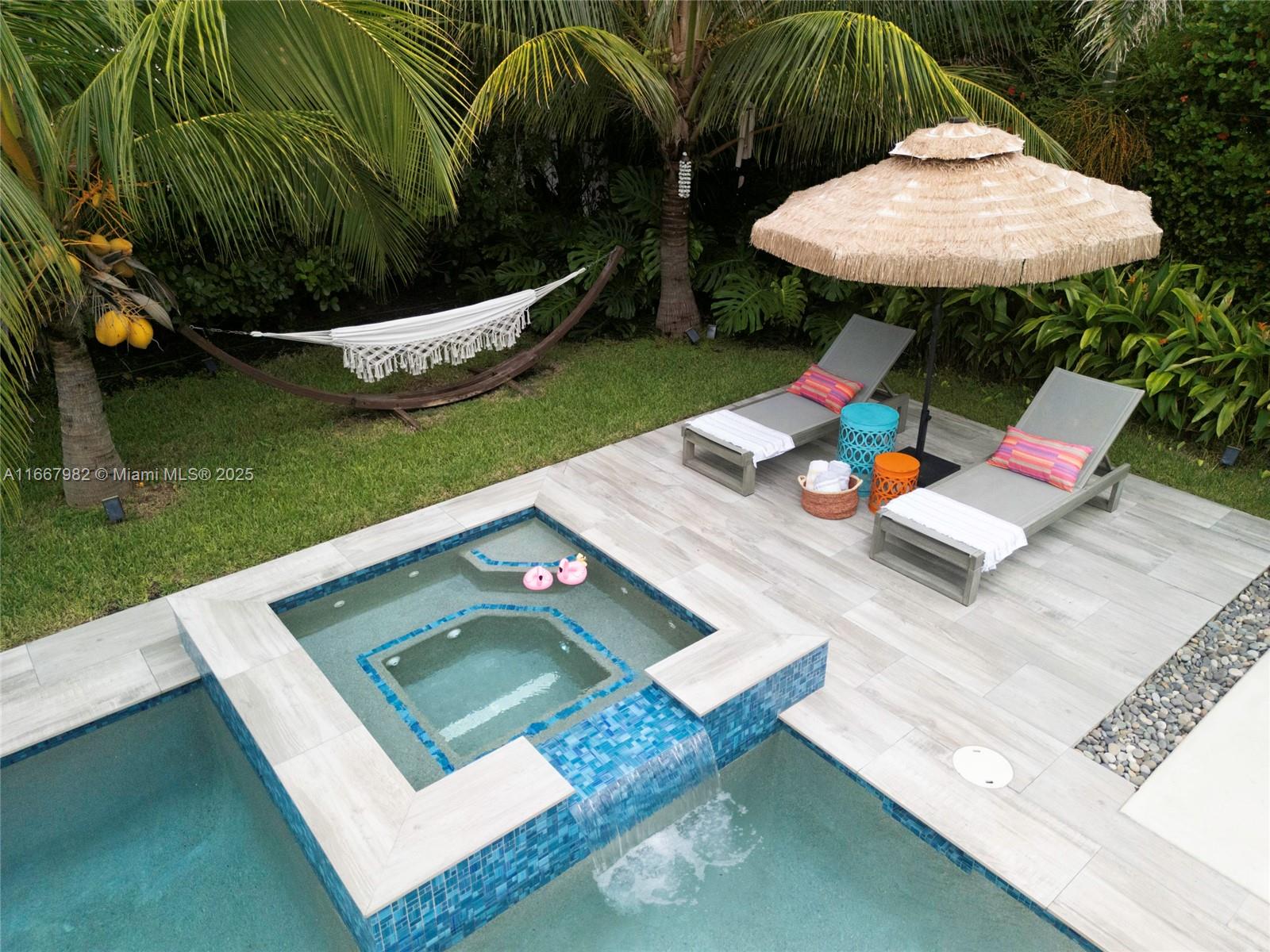 Price cut!!! Fully renovated in 2020, one story masterpiece in sought Keystone Point. Feel the open space living room like a private resort. This impeccable house offers a seamless indoor-outdoor living experience. New roof, new plumbing, new AC, new floors, new kitchen, new impact windows. Featuring 4 bedrooms, 3 full bathrooms, full of light. Enjoy a sprawling professional designed pool & jacuzzi built in 2022 (with heater), surrounded by lush landscaping exclusively designed by a professional designer. 11,250 sq ft lot in Keystone Point that holds a beautiful garden with tropical plants, new shed with AC. A jewel. 5 minutes to the Beach. Ample parking space (up to 12 spaces). Reverse osmosis alkaline water system. Alarm system, Gas range, Hunter Douglas motorized blinds. Smart home.
