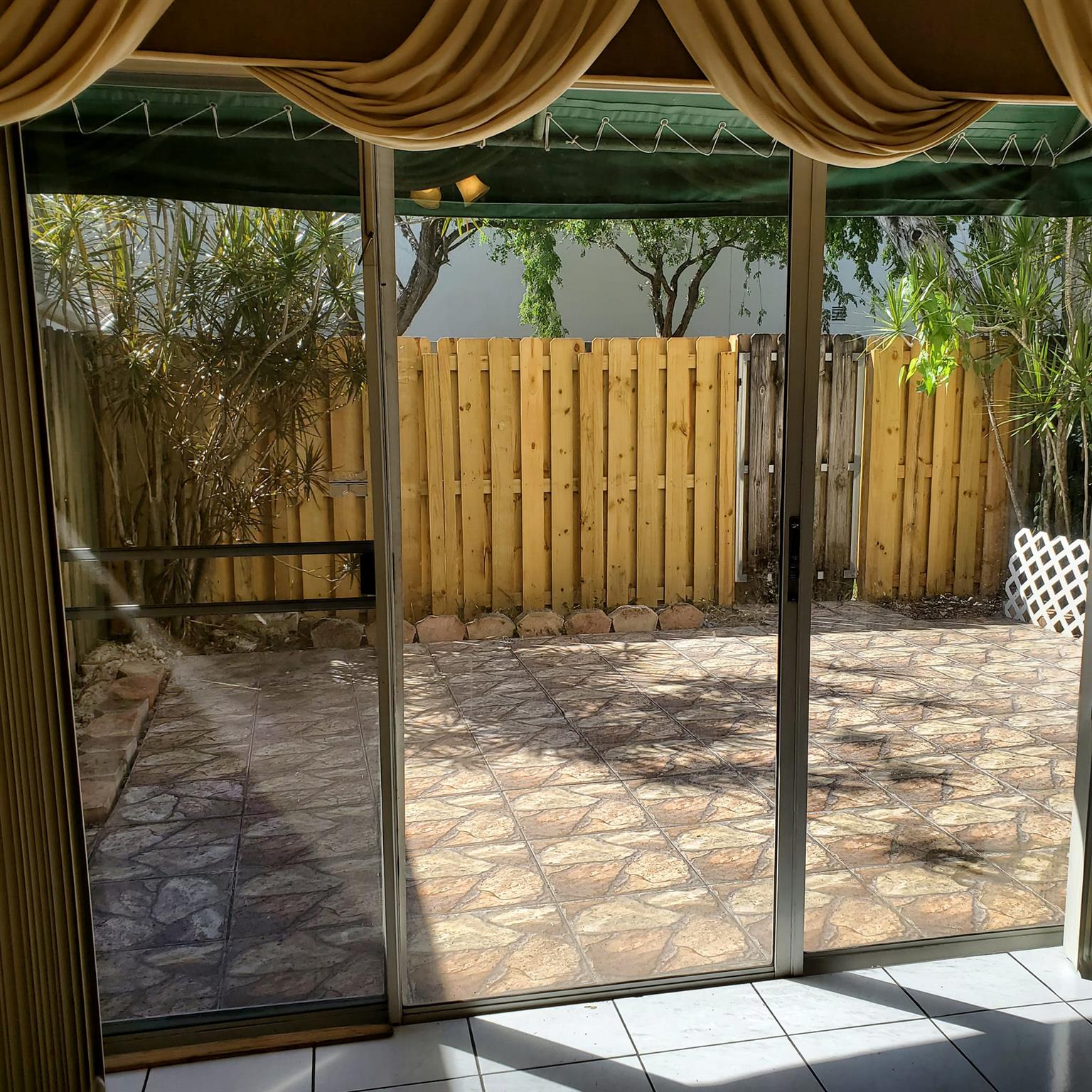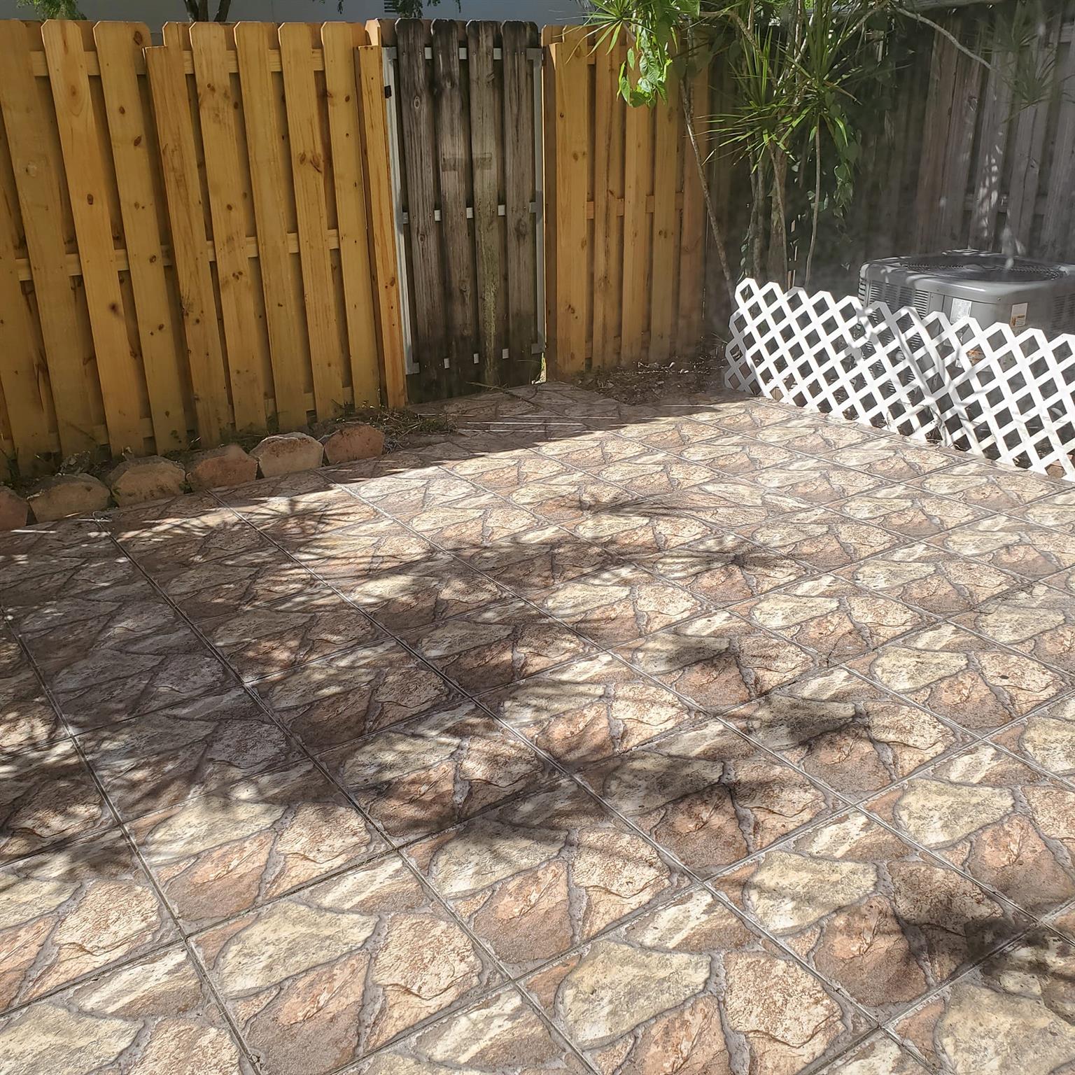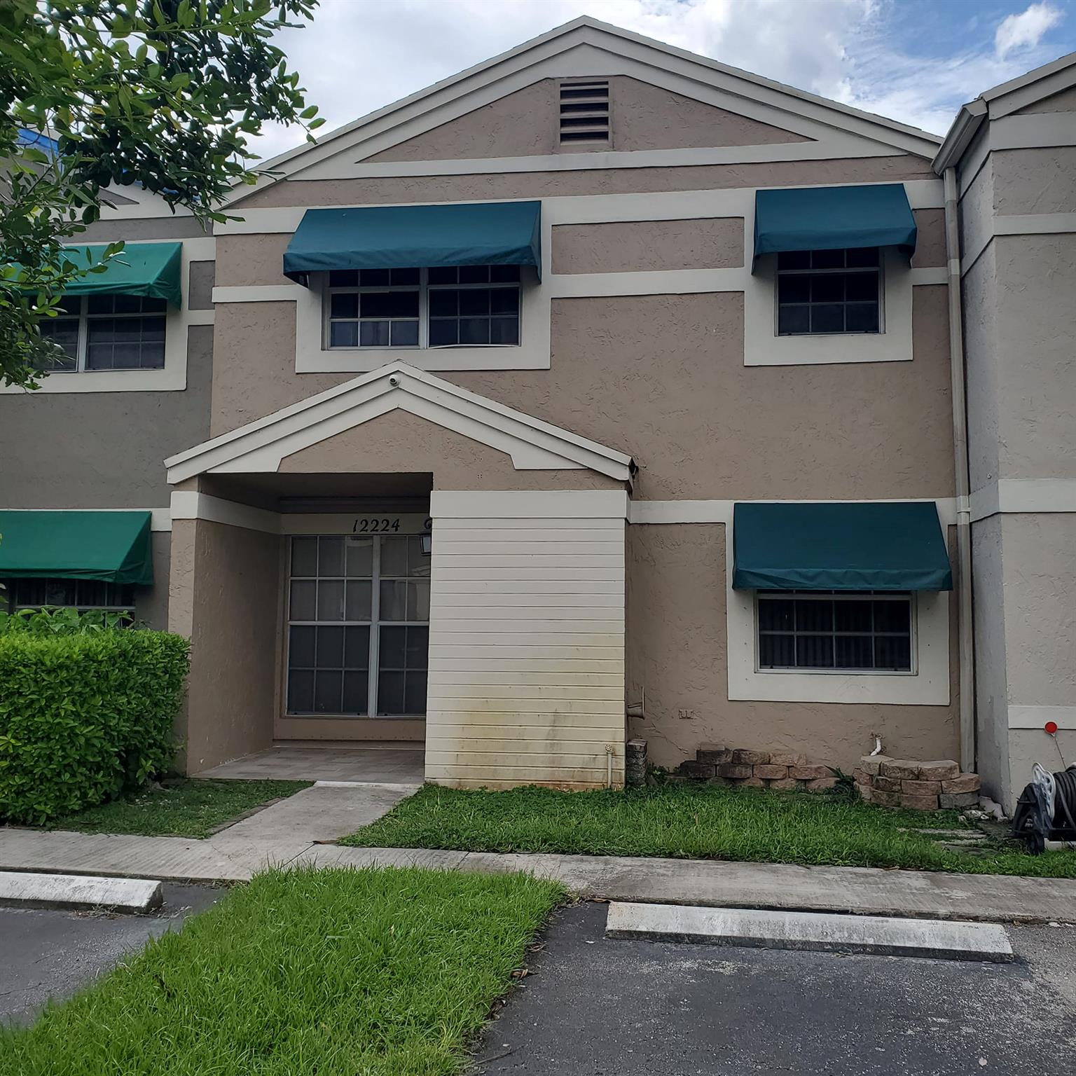 Well maintained two story townhome. Updated kitchen with laundry. Half bath downstairs. Convertible 3rd bedroom downstairs has closet. Tiled throughout on both levels. 2 Primary suites upstairs with private bathrooms. Open pavered back patio is fully fenced and has attached storage room. Community pool. Walking distance to Countryside Shops Mall for groceries, restaurants, banking and more. and easy City park across the street has dog park, basketball and kids playground. Concrete block construction. Has some storm panels for downstairs windows.