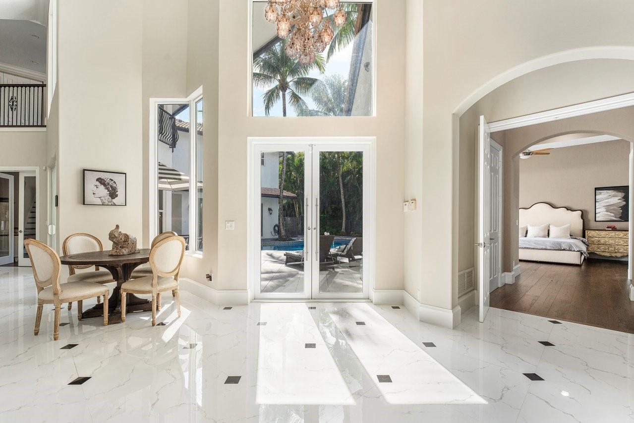 Simply a Stunning Estate Home. A breathtaking 6 bedroom Main House, a beautiful 3 bedroom/2.5 bath Guest House & a 1 bedroom/1 bath Pool House created a very special home! Walls of impact glass thruout all houses allow for views of the manicured grounds & pool area. The main house offers large open living areas, soaring ceilings, a new crisp white kitchen with top shelf appliances, quartz countertops & impeccable finishes. The primary suite is impressive in size with a sitting area, large closets, & a spa-like bathroom. Gorgeous renovations, a movie theater, loft, gym, glorious outdoor spaces, a pool, courtyards, breezeways add to the splendor of this luxurious resort style family sanctuary. This remarkable estate is perfect for Multi Generational households and is a rare opportunity.