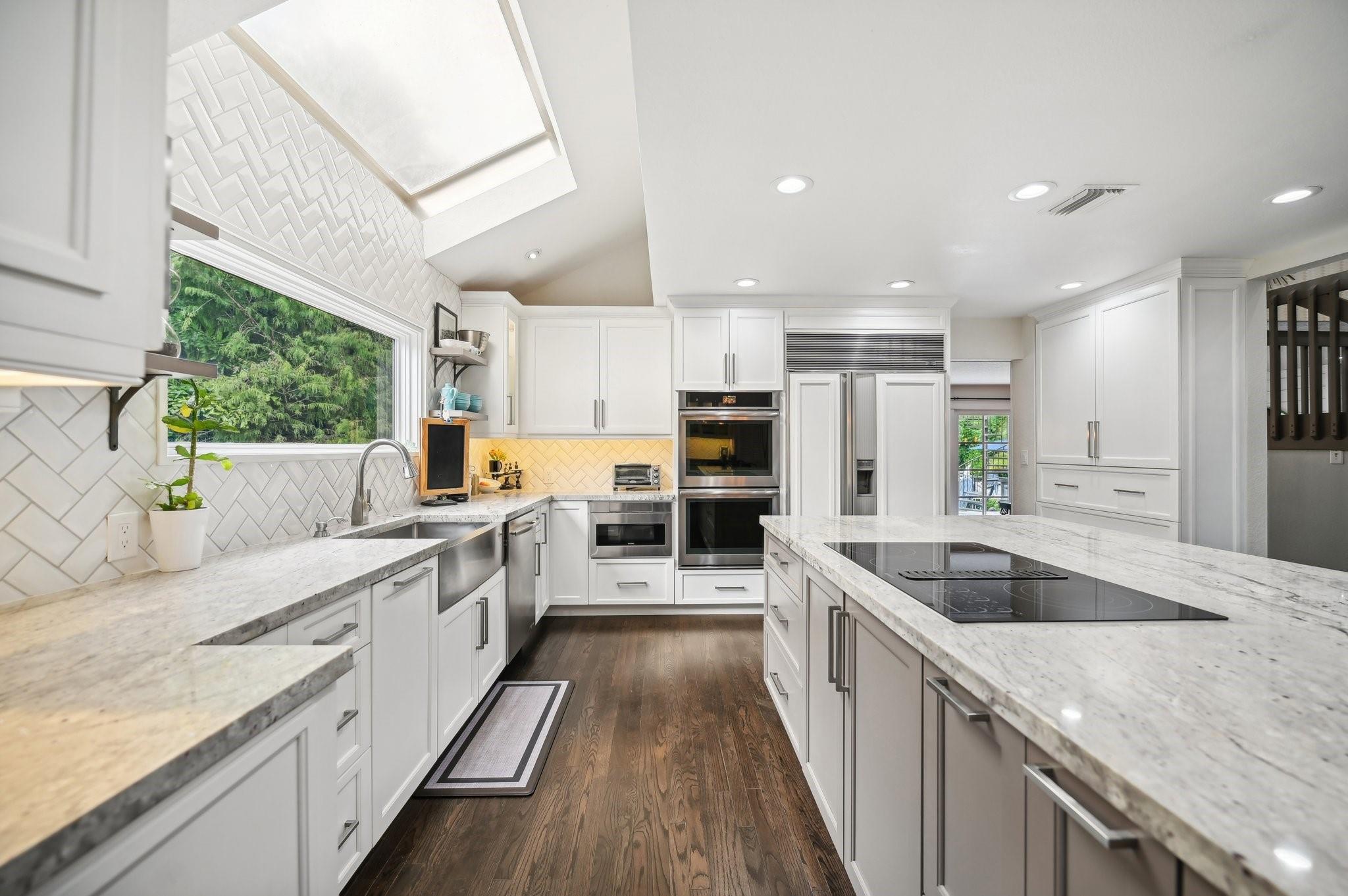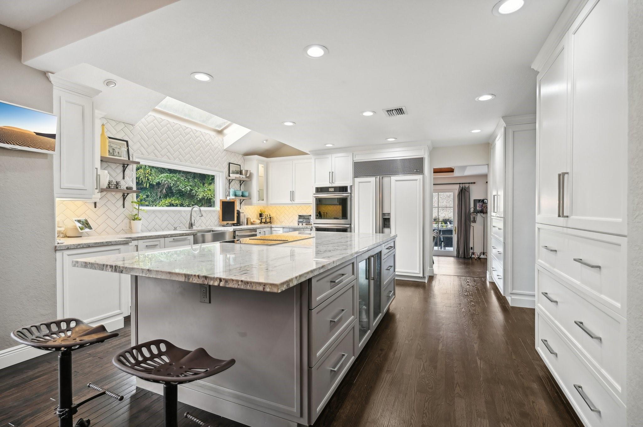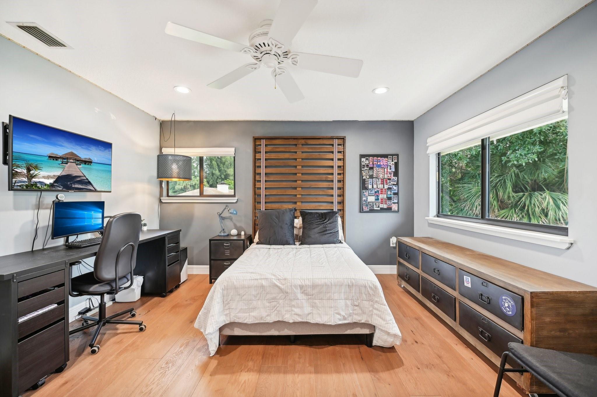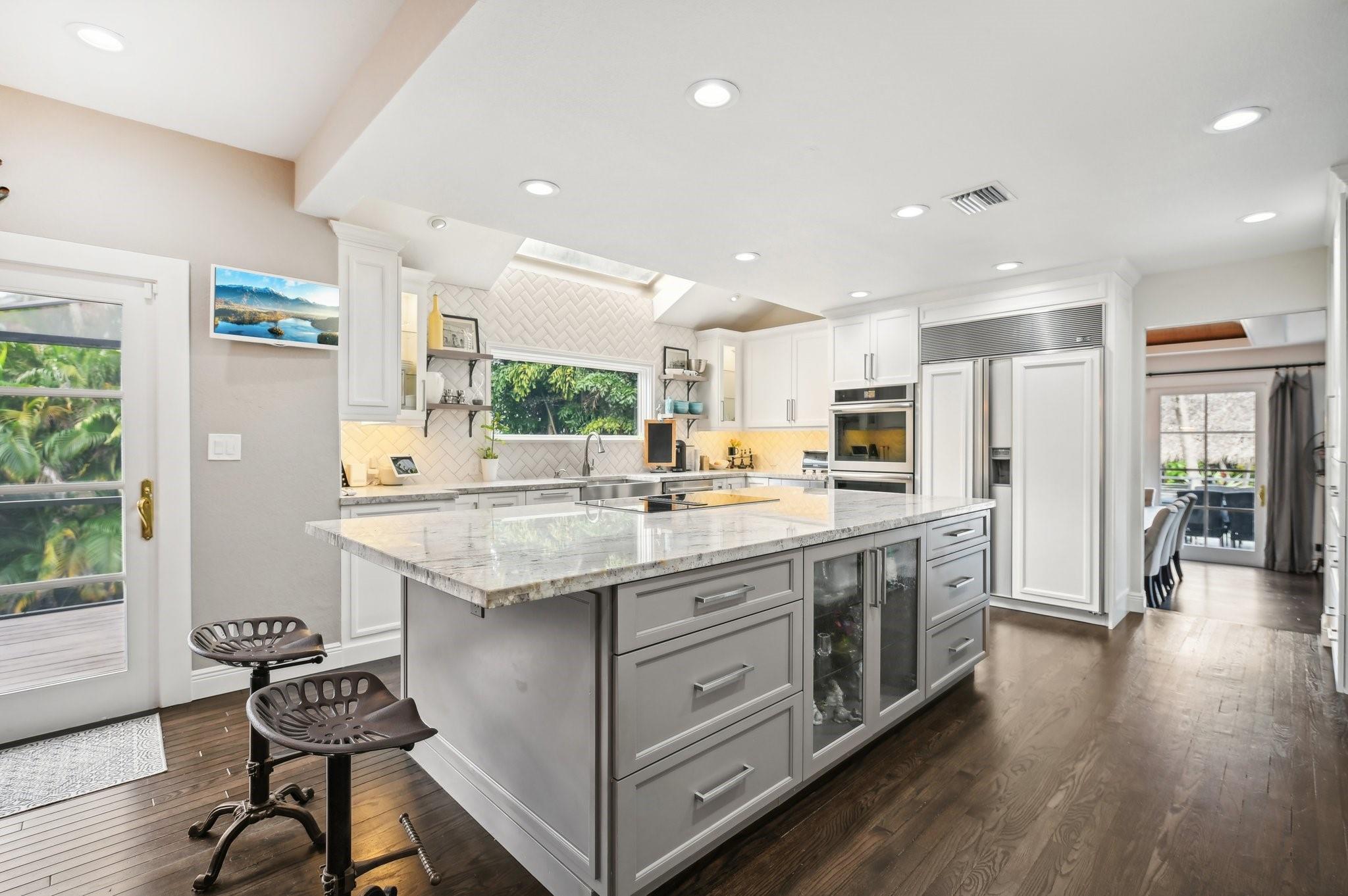 Welcome to this custom-built, Adache-designed 5-bedroom, 3-bathroom home, 2.5 car garage with an office/loft, offering the perfect blend of style and comfort. This stunning property boasts all hurricane windows and doors, solid oak wood floors and a completely remodeled kitchen featuring Sub-Zero refrigerator, stainless appliances, granite countertops—a chef’s dream! Relax in front of the two-sided cozy fireplace or unwind in the great screened patio and deck areas. The main-level bedroom and bath offer convenience and privacy, while floating stairs lead you to the loft and master bedroom, complete with a private balcony. Spiral stairs take you down to the expansive deck and another screened patio.
