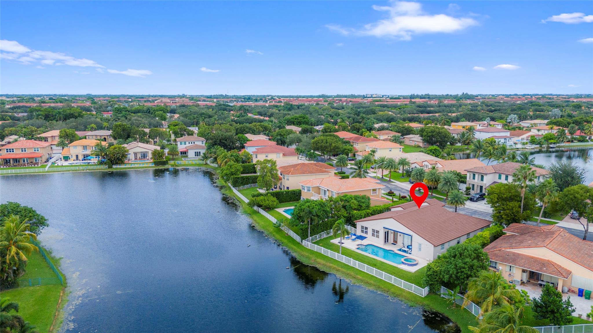 Welcome to your perfect oasis! This meticulously updated 4 BD, 3 BA, lakefront home has a 3 car garage in a gated community. The massive remodeled kitchen has rich wood cabinets, Quartzite countertops, stainless appliances and a gourmet range/oven/hood which flows seamlessly into the family room for open concept living. Spacious primary bedroom with fabulous lake views has a walk-in closet, plantation shutters, and a spa-like en-suite with granite top dual vanities, automatic bidet toilet, huge shower & a jetted soaking tub. Enjoy front-row seats to breathtaking sunsets over a tranquil lake with a sparkling pool & a retractable awning for those who appreciate the serenity of lakeside living. A pristine home with modern bathrooms, porcelain tile with an epoxy finish and volume ceilings.