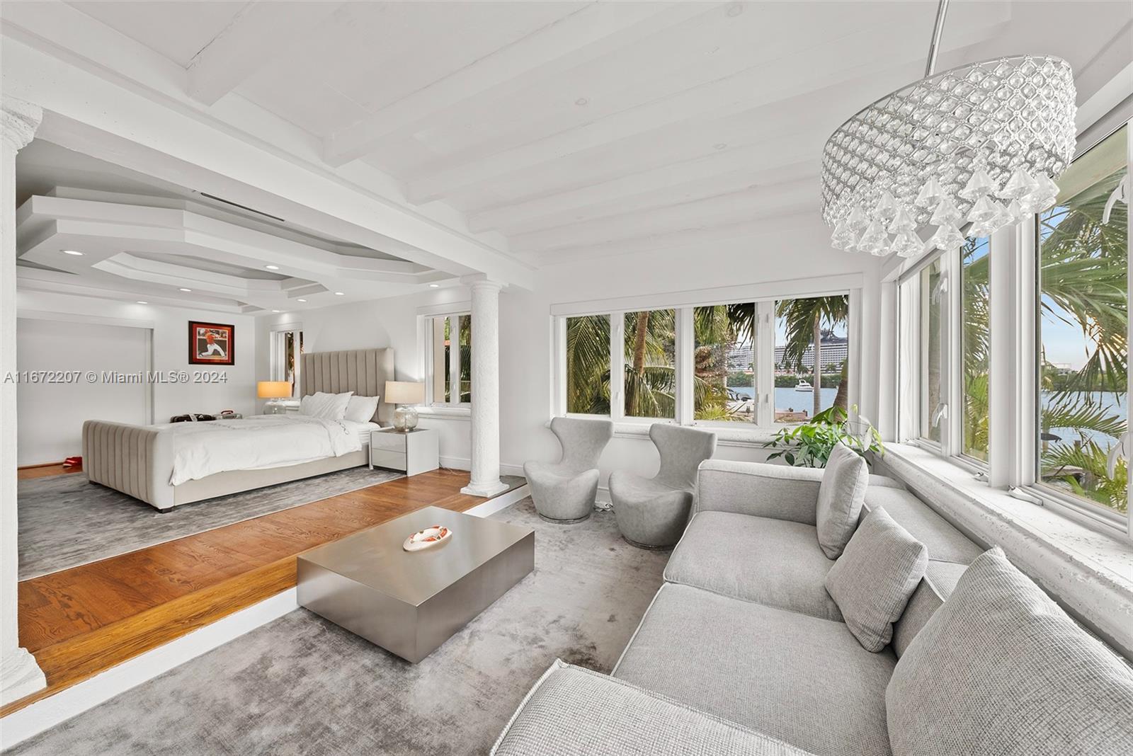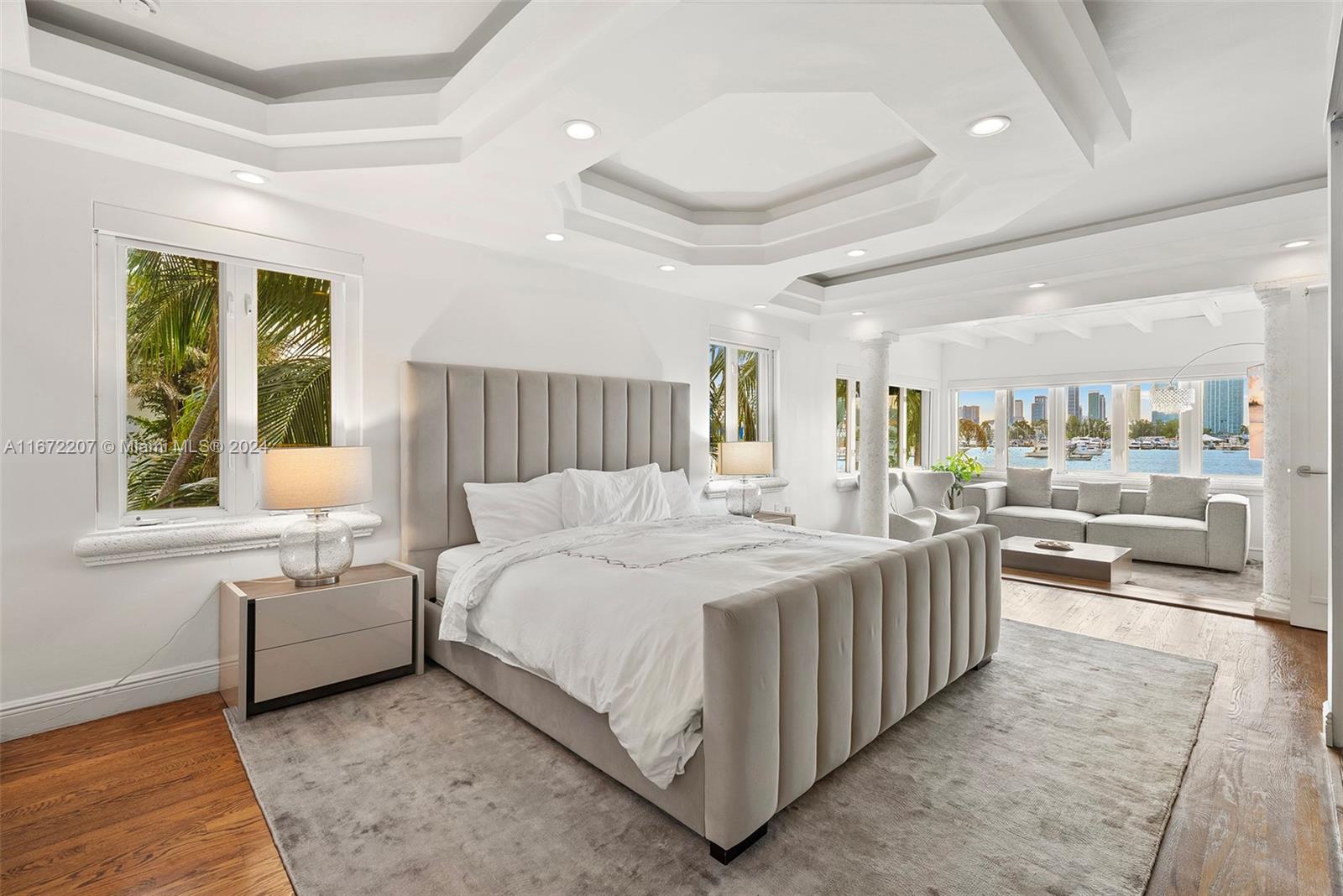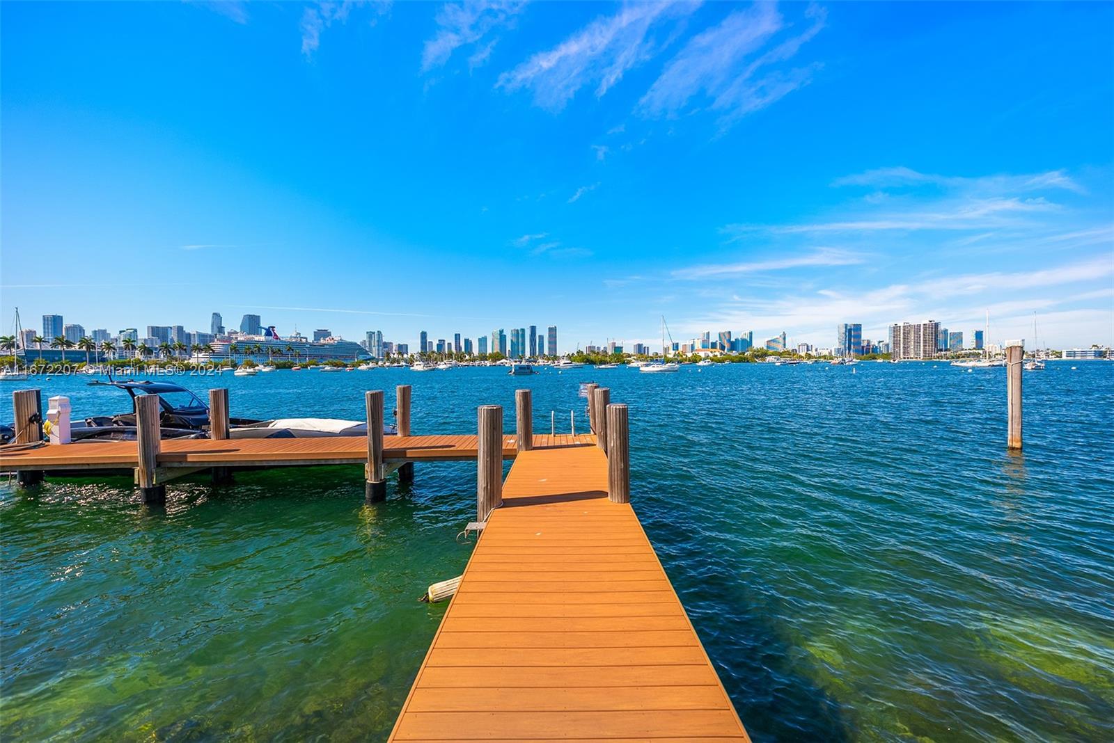 Experience the chance to build your dream home or update the current 2-story waterfront residence on Palm Island’s sought-after western tip, showcasing panoramic views of the Miami skyline and Biscayne Bay. The home features travertine and original wood floors, a spacious family room, and an open living area with direct access to the pool deck. The open kitchen offers a center island and an adjacent dining area. The 2nd-floor primary suite includes custom closets and a lounge area overlooking the city and bay. Outdoors, enjoy a heated pool, seating areas, and covered porch. Boaters will appreciate 78’ of waterfront, private dock, and easy ocean access.