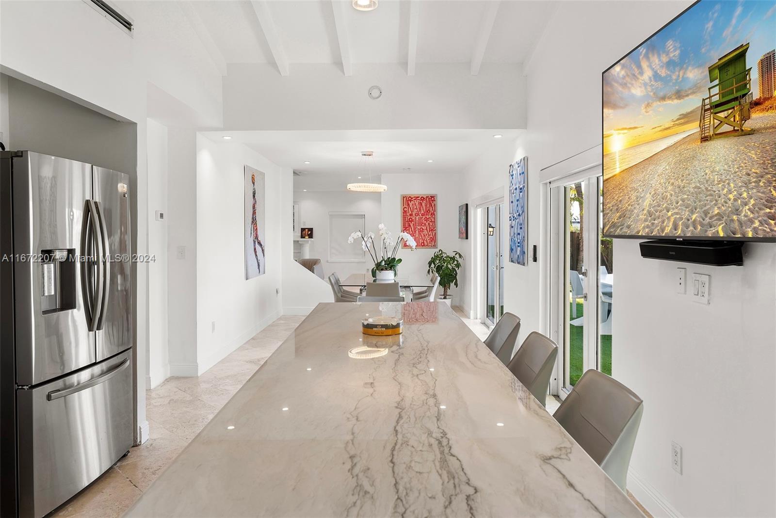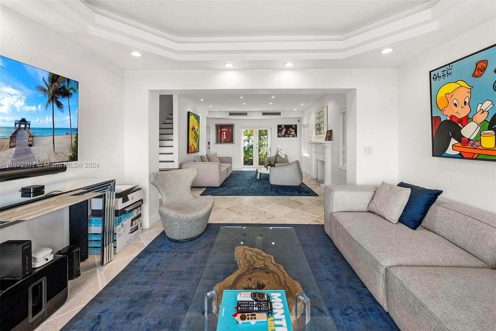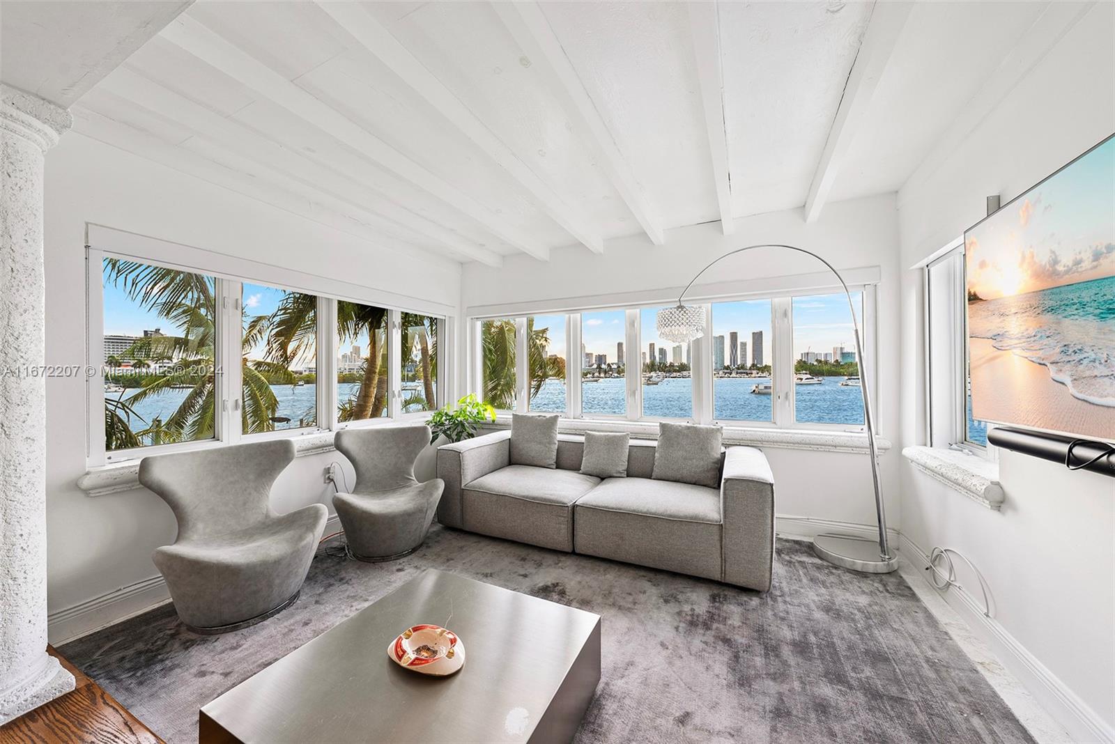 Experience the chance to build your dream home or update the current 2-story waterfront residence on Palm Island’s sought-after western tip, showcasing panoramic views of the Miami skyline and Biscayne Bay. The home features travertine and original wood floors, a spacious family room, and an open living area with direct access to the pool deck. The open kitchen offers a center island and an adjacent dining area. The 2nd-floor primary suite includes custom closets and a lounge area overlooking the city and bay. Outdoors, enjoy a heated pool, seating areas, and covered porch. Boaters will appreciate 78’ of waterfront, private dock, and easy ocean access.
