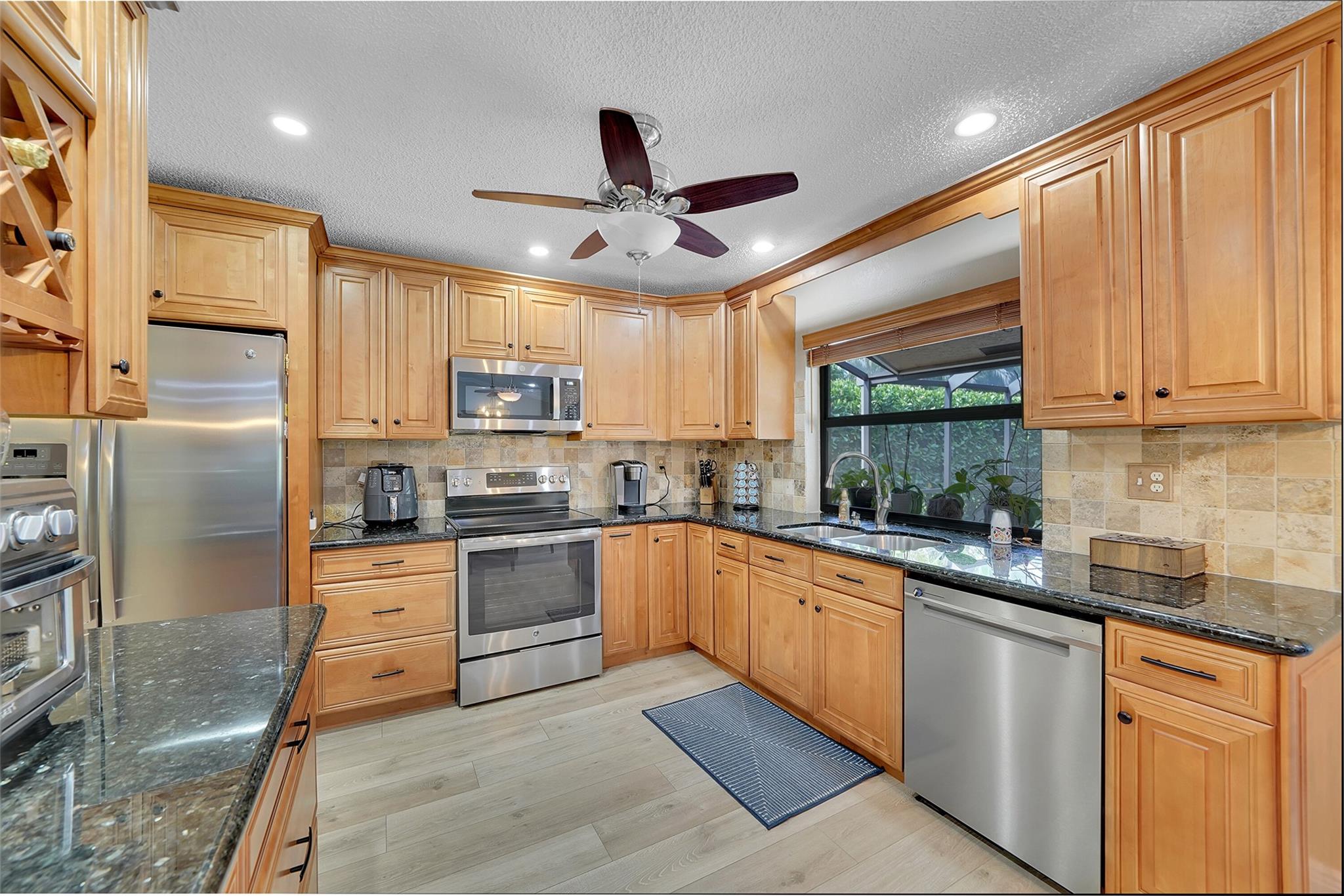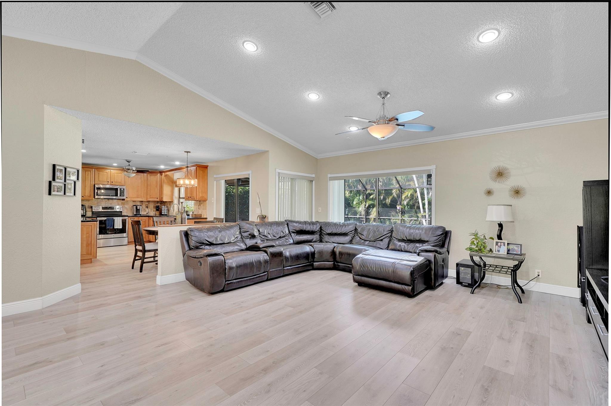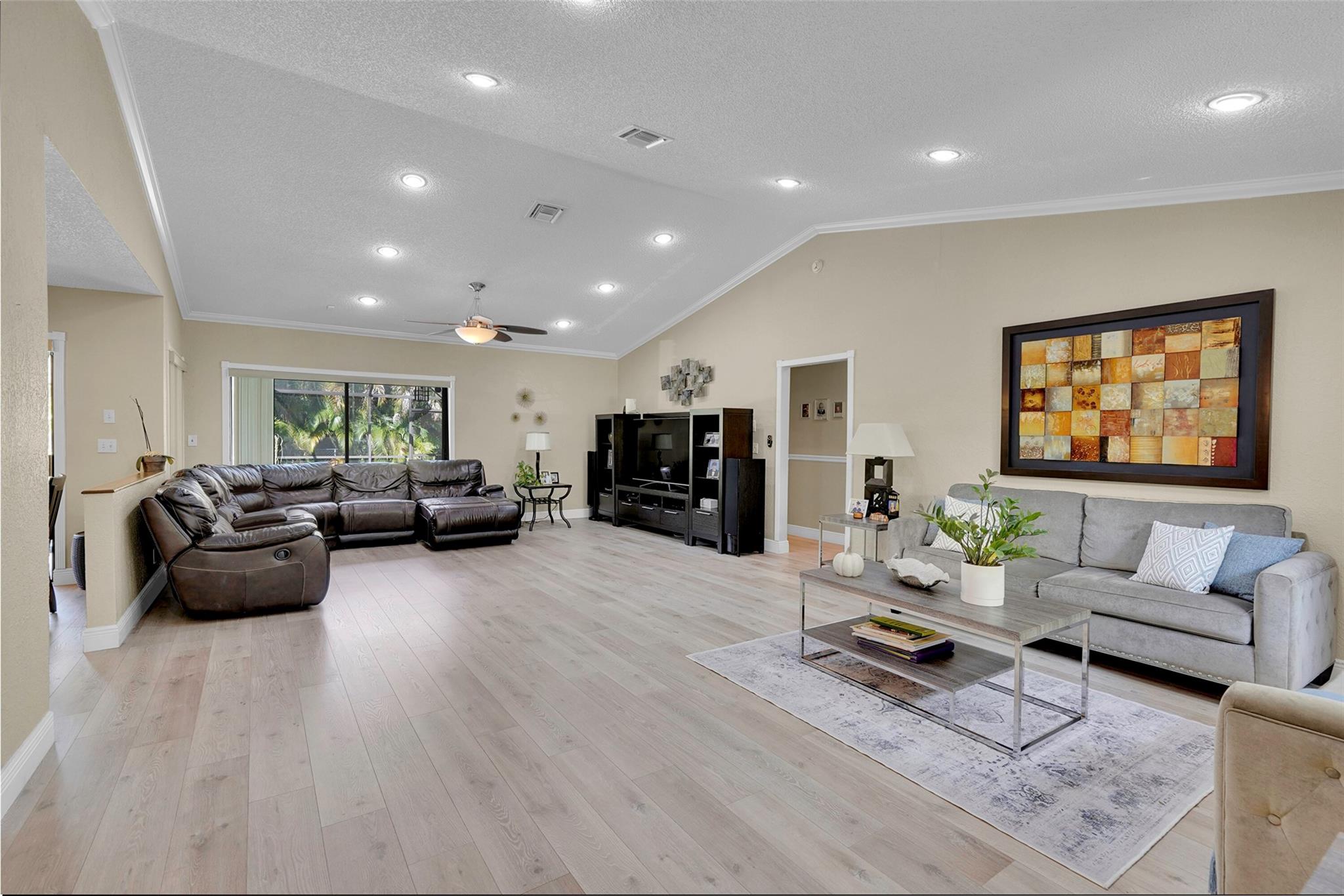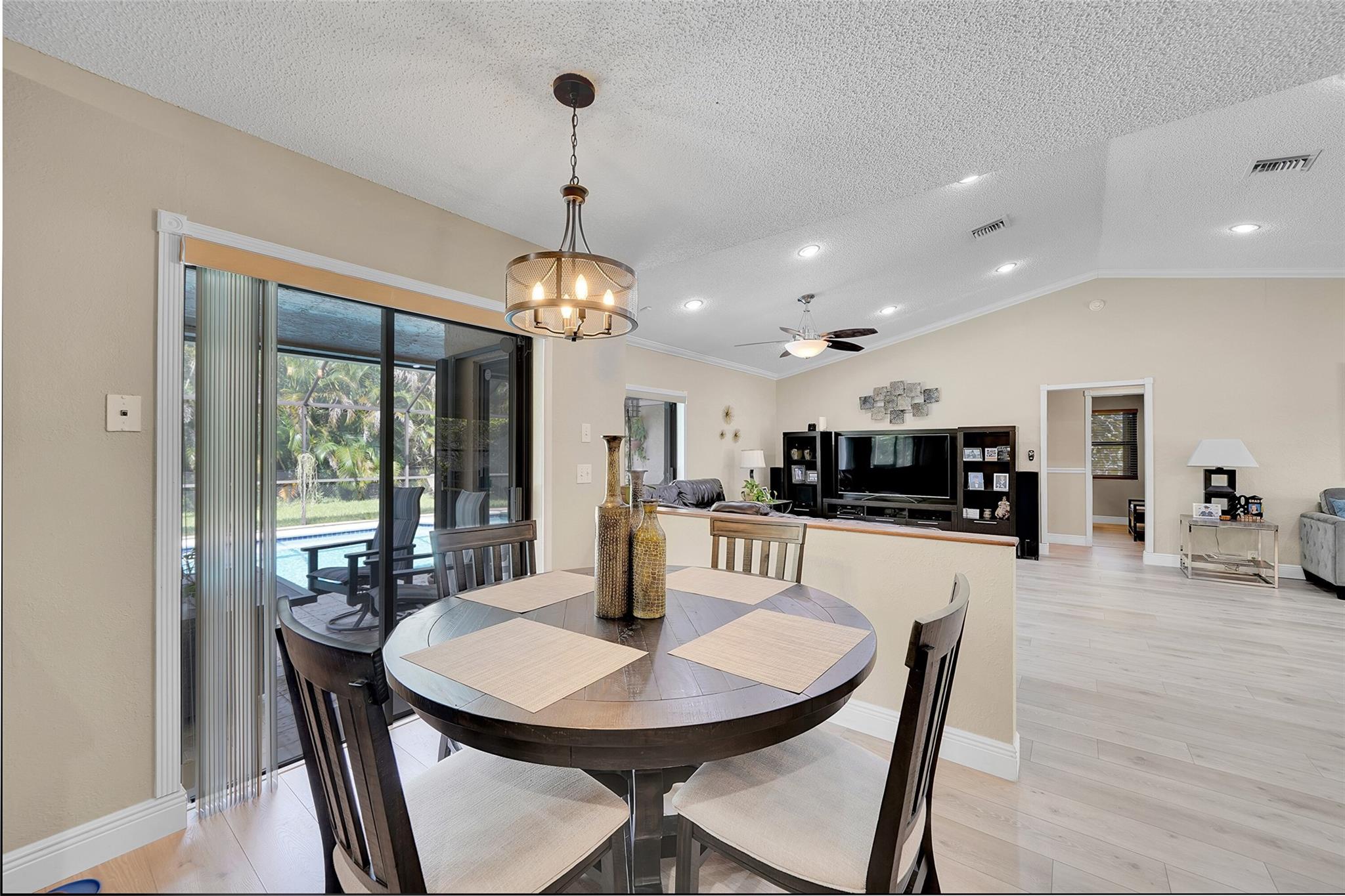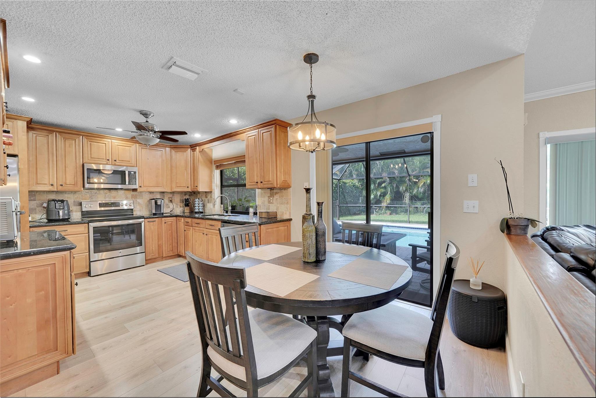 Live the dream when you enter this gorgeous, upgraded home! Immaculate with an open floor plan. The large gourmet kitchen is a chef's delight complete with a granite countertop, rich cabinetry and an eat-in area. Time to make culinary masterpieces! Charming formal dining room. Large family room that's ideal for relaxing or entertaining. Spacious primary bedroom with two walk in closets with organizers. Luxurious master bath! Three additional bedrooms of a large size. All bathrooms beautifully upgraded. NEW A/C AND DUCT WORK IN 2024! NEWER LAMINATE FLOORING IN 2021! NEW POOL HEATER IN 2022! Tranquil screened back patio with an oversized sparkling pool. Perfect for morning coffee or a swim. Amazing theater room that can be converted back. Just bring your clothes and move in! It's that nice!!