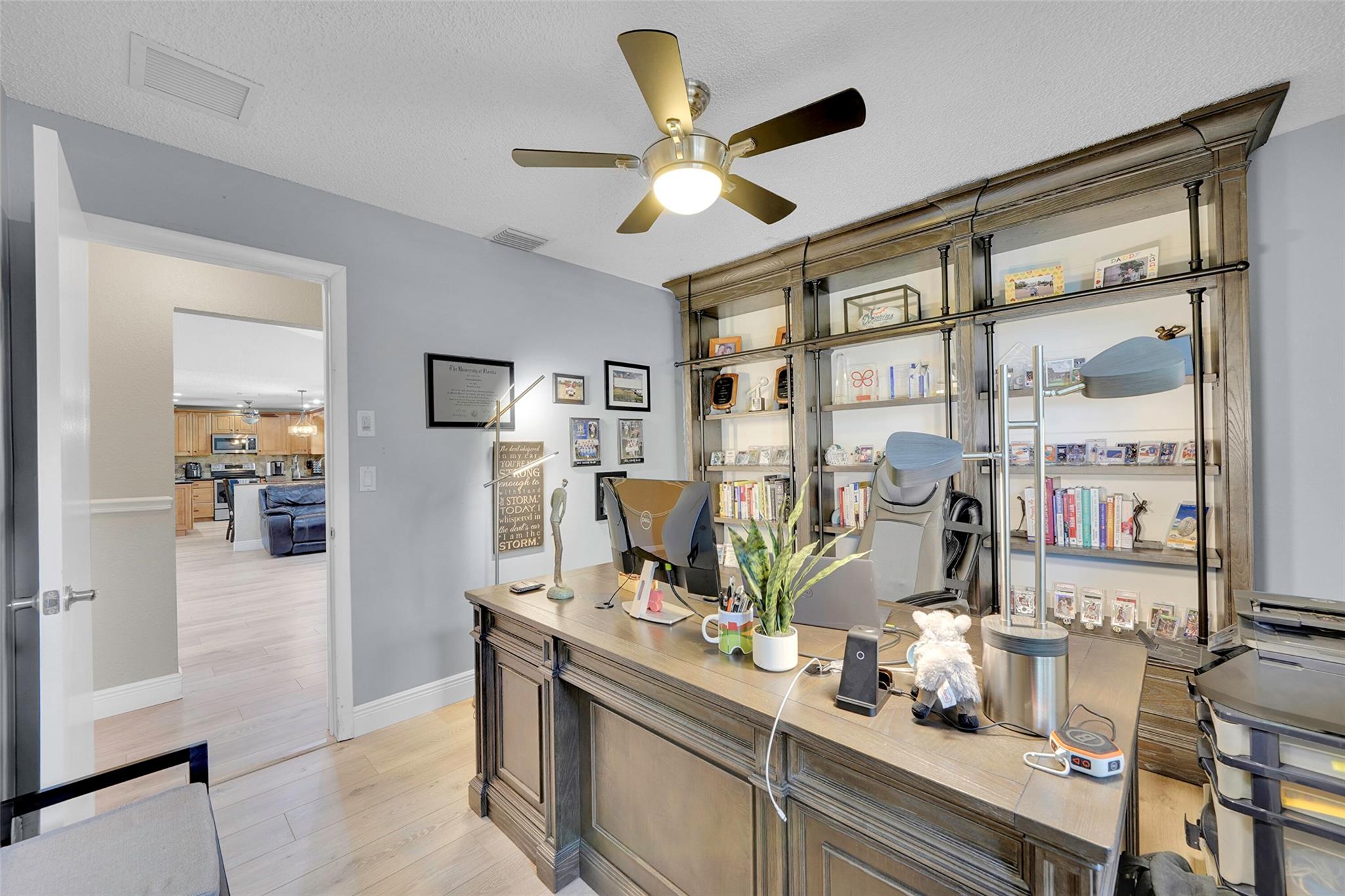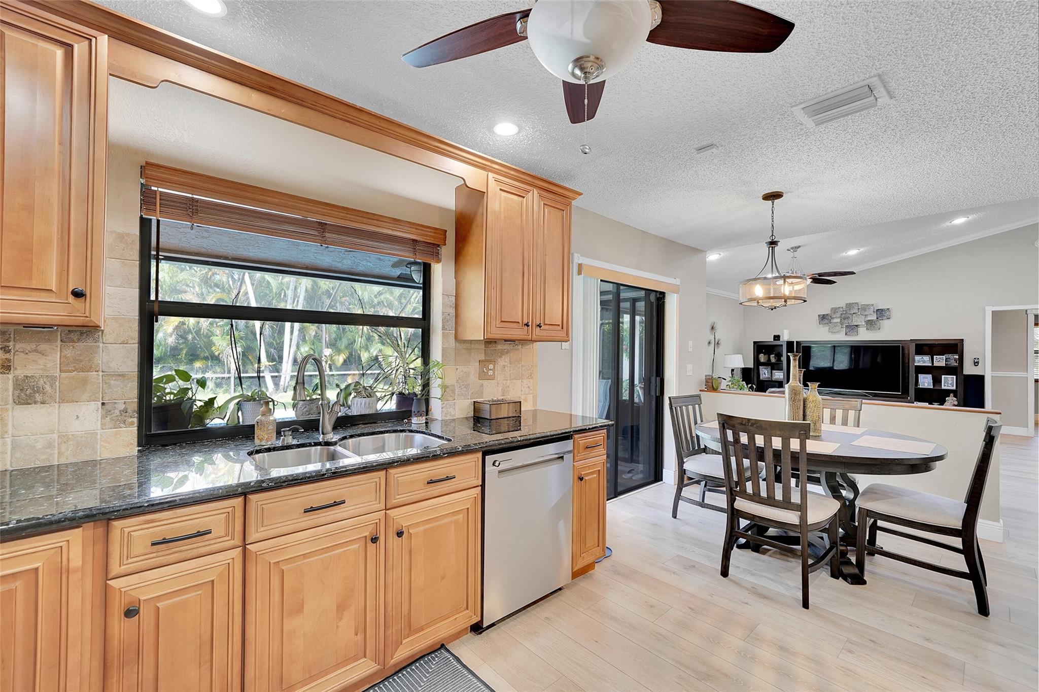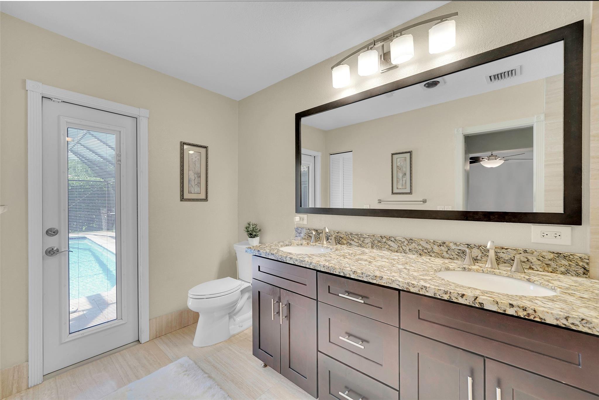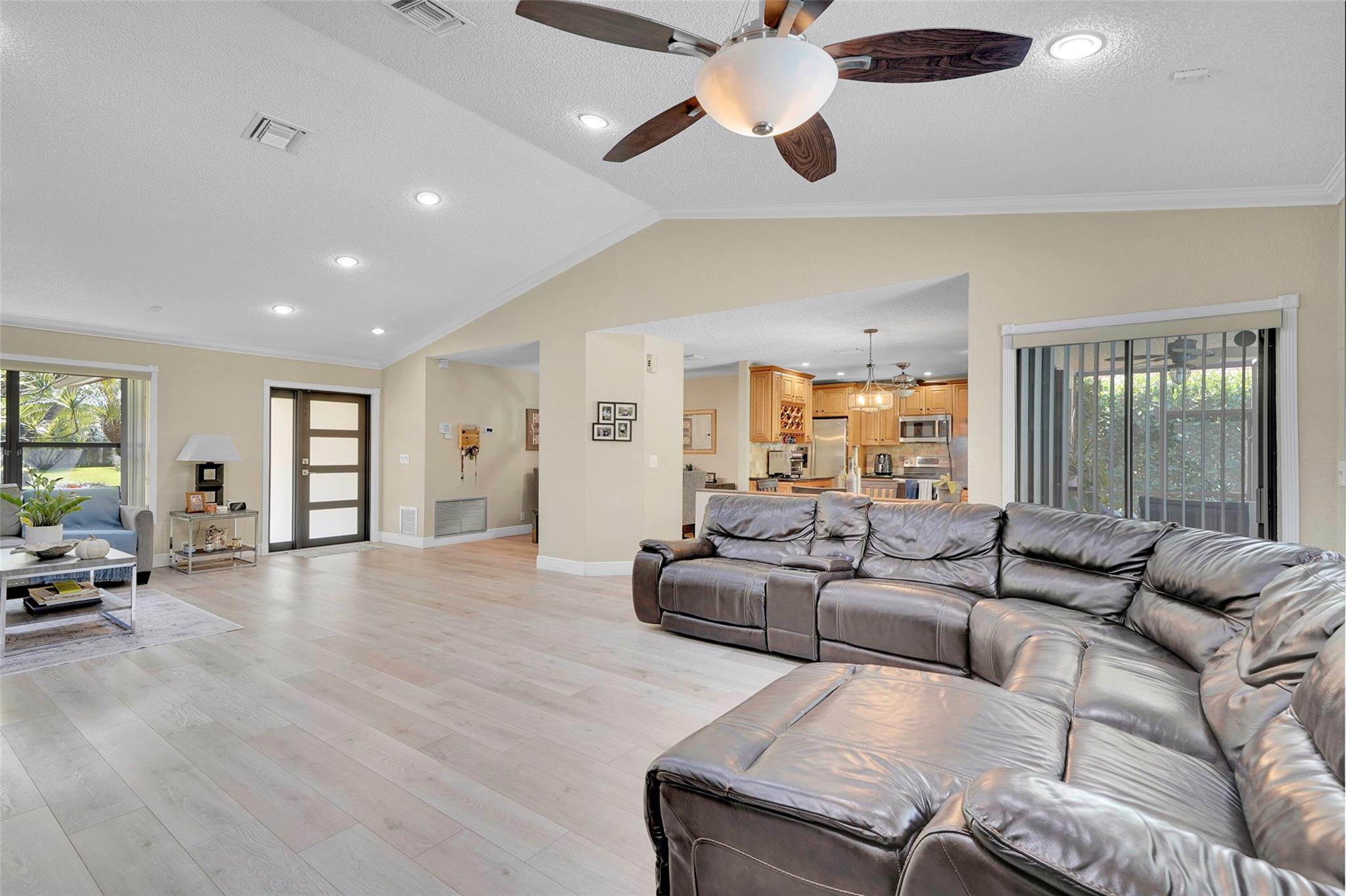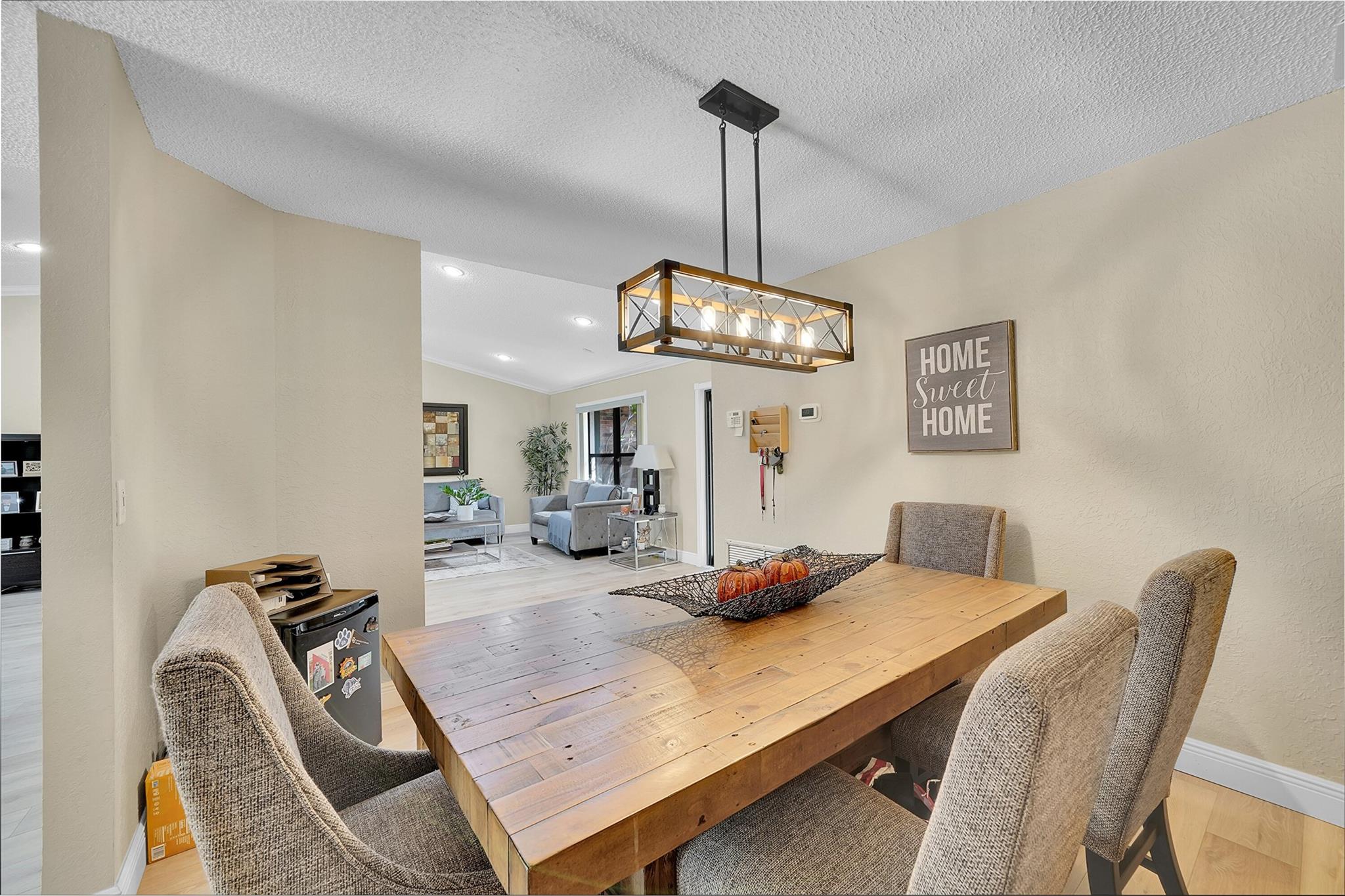 Live the dream when you enter this gorgeous, upgraded home! Immaculate with an open floor plan. The large gourmet kitchen is a chef's delight complete with a granite countertop, rich cabinetry and an eat-in area. Time to make culinary masterpieces! Charming formal dining room. Large family room that's ideal for relaxing or entertaining. Spacious primary bedroom with two walk in closets with organizers. Luxurious master bath! Three additional bedrooms of a large size. All bathrooms beautifully upgraded. NEW A/C AND DUCT WORK IN 2024! NEWER LAMINATE FLOORING IN 2021! NEW POOL HEATER IN 2022! Tranquil screened back patio with an oversized sparkling pool. Perfect for morning coffee or a swim. Amazing theater room that can be converted back. Just bring your clothes and move in! It's that nice!!