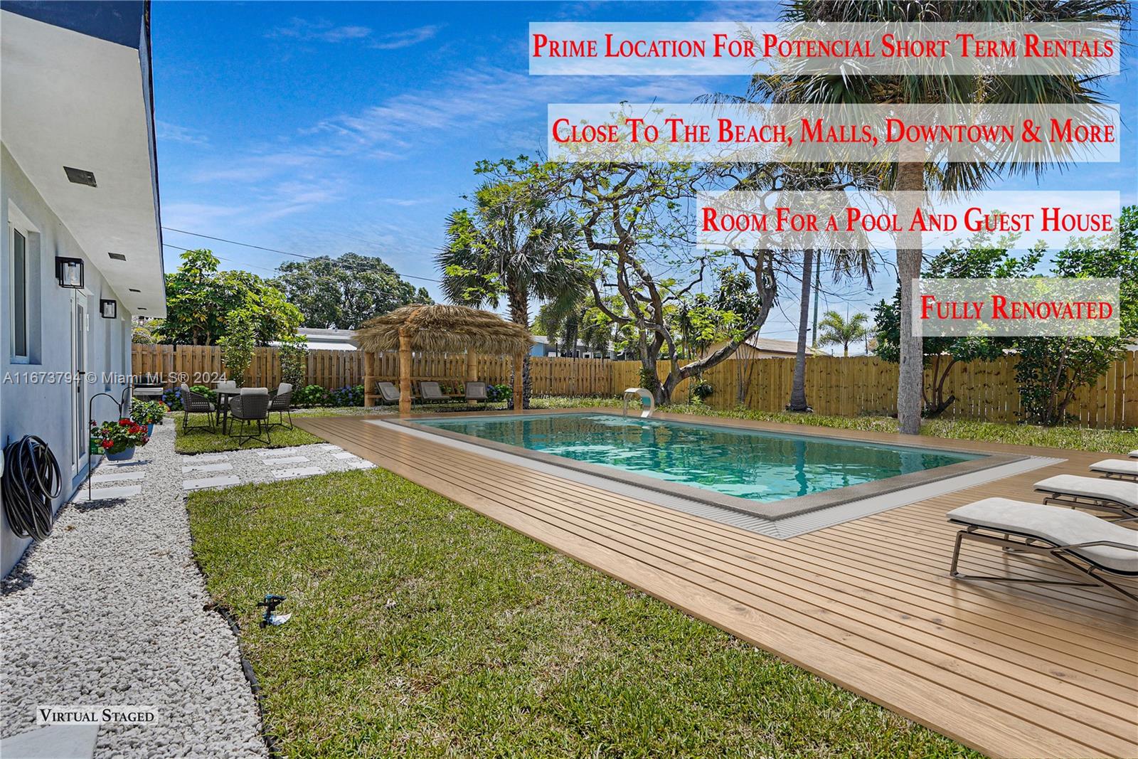 Motivated seller! Reduced price! Own this expanded & 100% All Brand-New house located in the Historic Old Pompano Beach, now with 1,553 SF of living space, 4 bedrooms & 2 full bathrooms, spacious living & dining area, 24x24 amazing ceramic tile floor, brand-new kitchen featuring all stainless-steel appliances, quartz countertops, & modern cabinetry. This cozy home not only has all new walls, plumbing, electrical, & AC system unit, but it also prioritizes safety with new roof & impact windows. The huge yard presents endless options for outdoor enjoyment, from building a pool & BBQ area or spacious gardening. Close to the beach, schools, restaurants, shops, & I-95 expressway. Offers are welcomed.