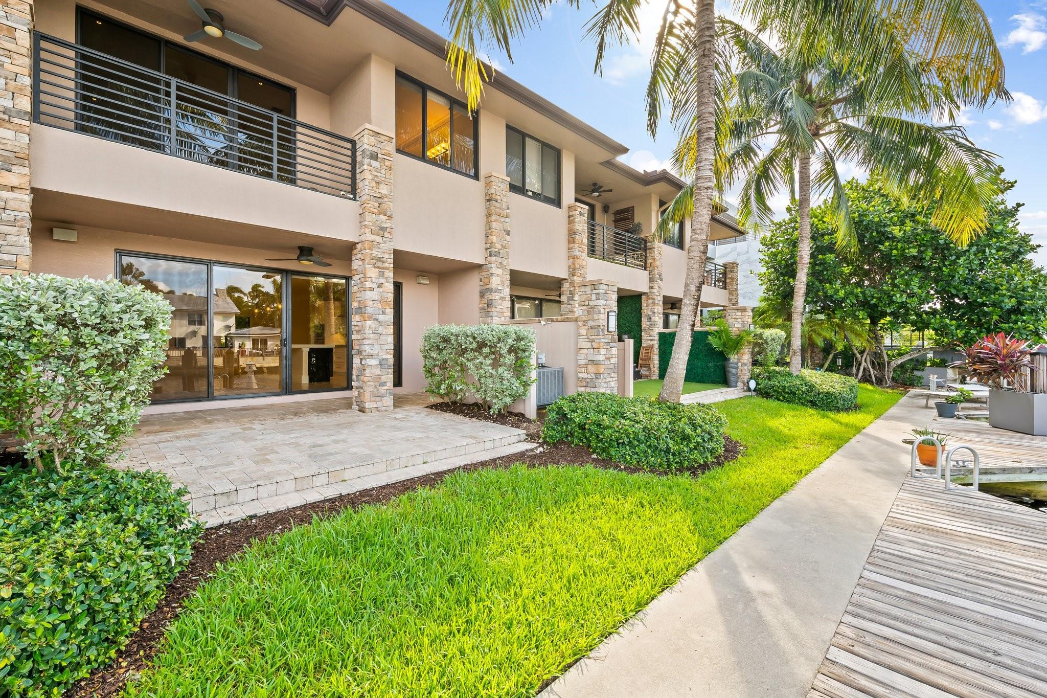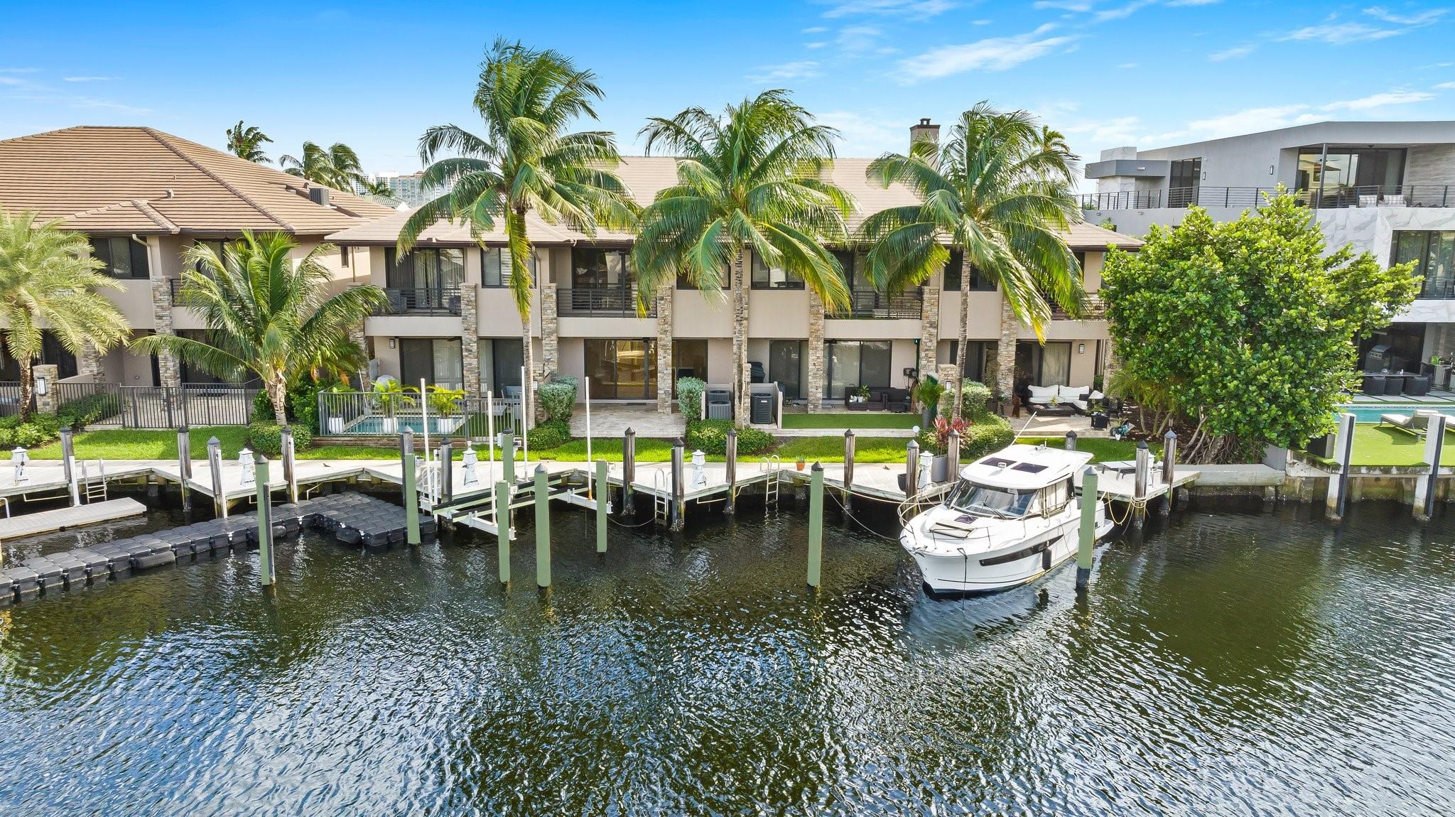 Experience luxury living in one of the newest contemporary waterfront townhomes located in the coveted Coral Ridge neighborhood. Boosting open floor plan, gourmet kitchen w/top of the line appliances, Brand new Bathrooms and Flooring. All high-impact Windows & Doors, 10-ft ceilings, 9-ft interior doors, 2-car garage, private tumbled marble driveway and privacy wall. Each bedroom offers en-suite Bathrooms and Built-in closets. Enjoy spectacular water views and breathtaking Sunrises & Sunsets from your private patio. Steps away from the beach, parks, tennis courts, golf courses or setting sail from your 42-ft private dock complete with a boat lift and utilities on a protected deep canal with an easy ocean access—no fixed bridges! Nearby shops, dining. A+ Bayview school. HOA incl. insurance