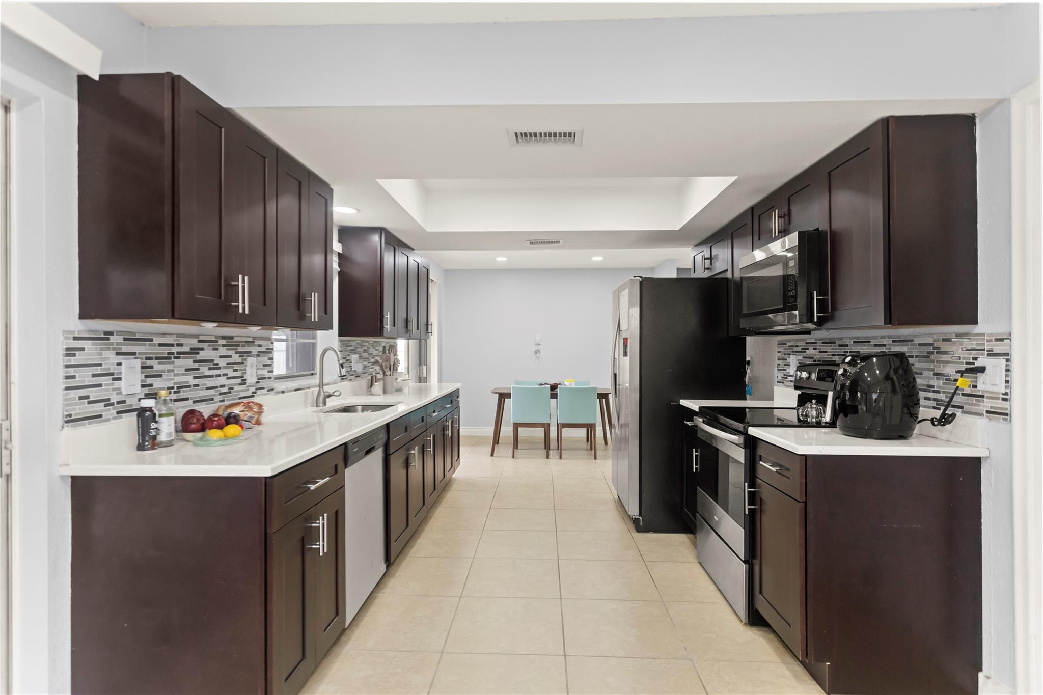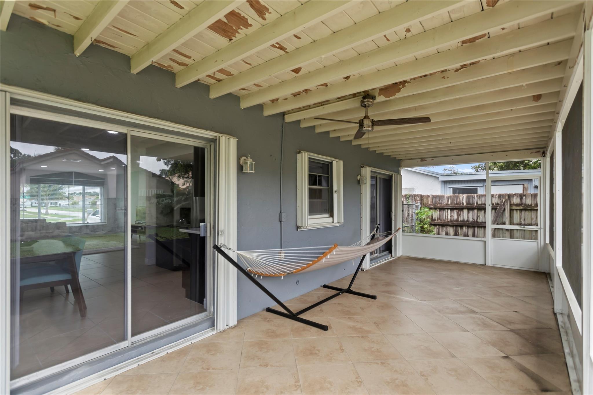 Come check out this beautiful home with a one car garage. Completely remodeled. Kitchen with stainless steel appliances. Both bathrooms are updated. Hurricane impact windows and doors throughout, except for the 3 back windows, which have accordion shutters. Fenced in backyard with a shed - plenty of room for storage. Roof was installed in 2022. AC replaced in 2021 and water heater in 2018. Very spacious home, over 1900 square feet. Large screened patio. Ready moved in property! No HOA.