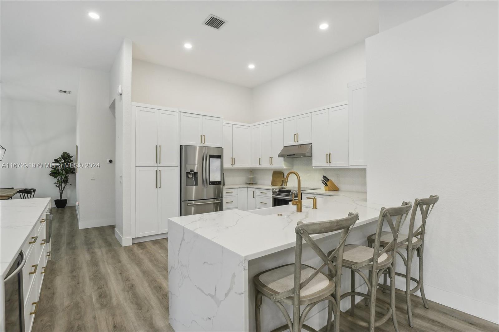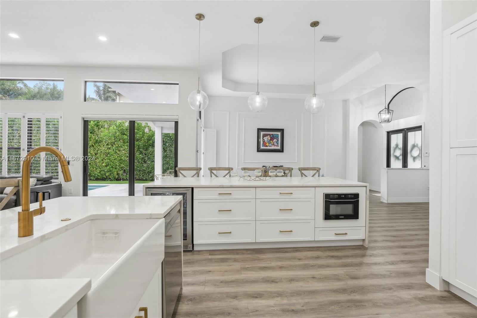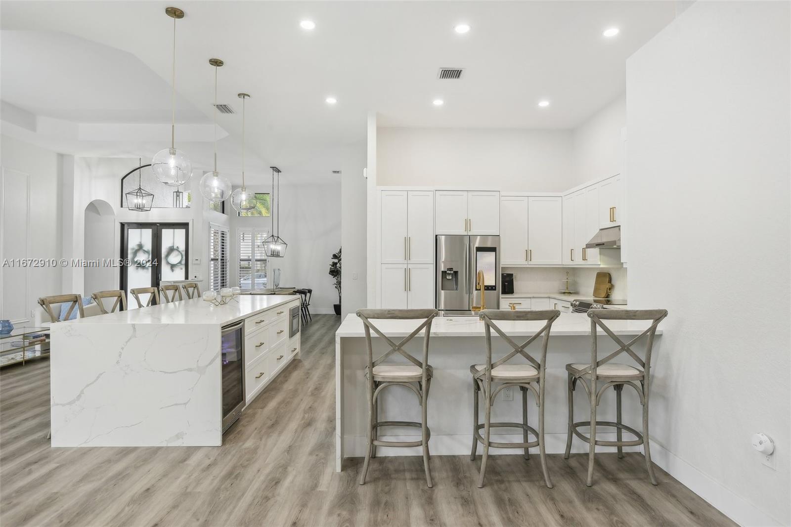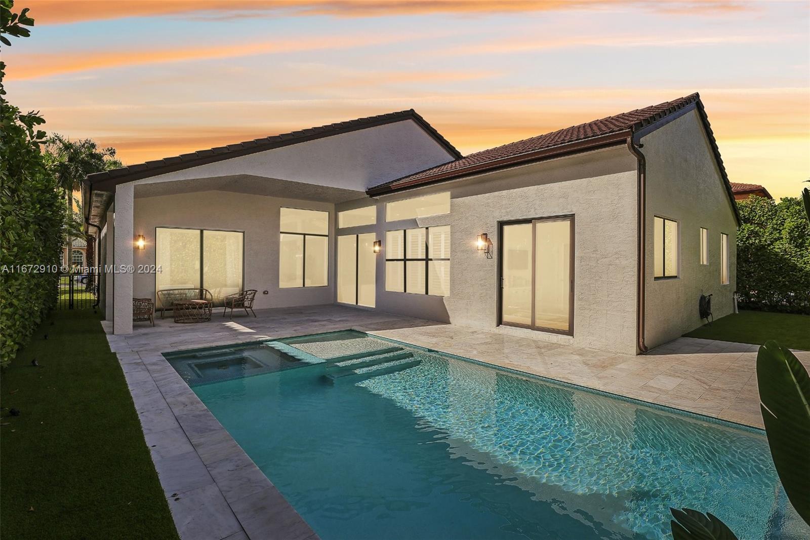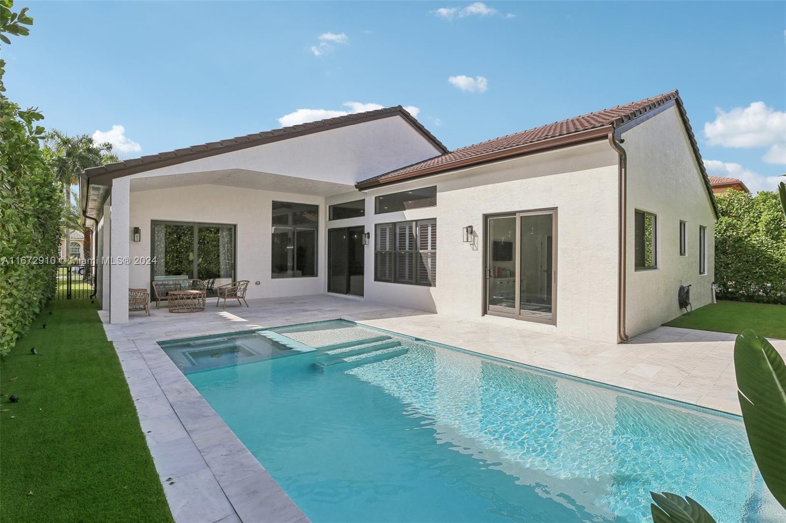 Breathtaking one-story remodeled home with new heated pool and jacuzzi in Sunset Lakes! The open floor plan is perfect for entertaining. Enjoy a bright kitchen with a 10-foot island, quartz counters, farm sink, wine refrigerator, and counter seating for eight! Impact windows/doors, both A/C units and tankless water heater installed in 2022. The primary suite offers custom his and hers closets, dual sinks, freestanding bathtub and sliding doors to the outdoor oasis. Oversized windows and sliding doors provide natural light and pool views throughout. Enjoy plenty of storage in the large laundry room and walk-in closets in two additional bedrooms. This resort-style community offers tennis, basketball, gym, playgrounds, and more. Text/Call Agent for gate code access.