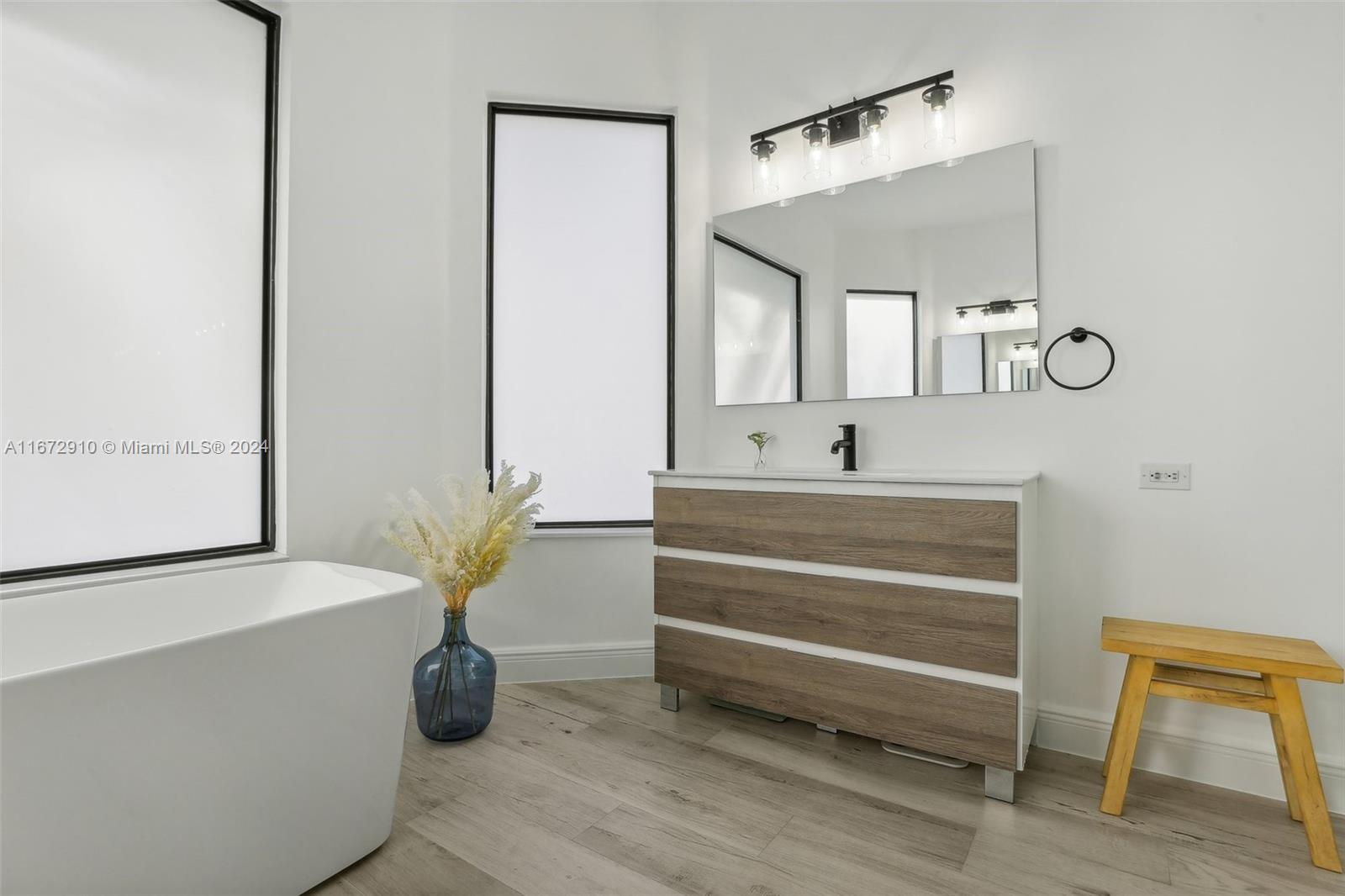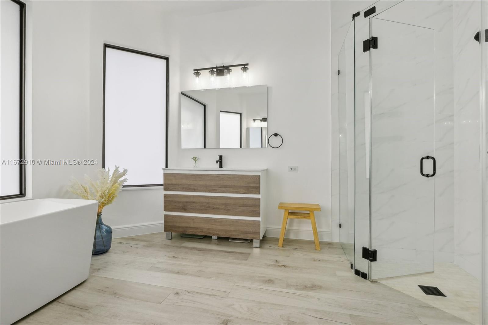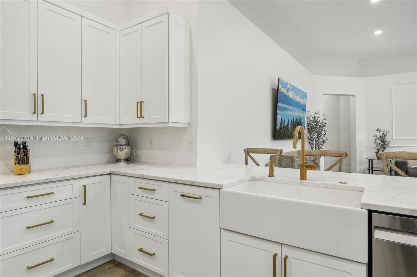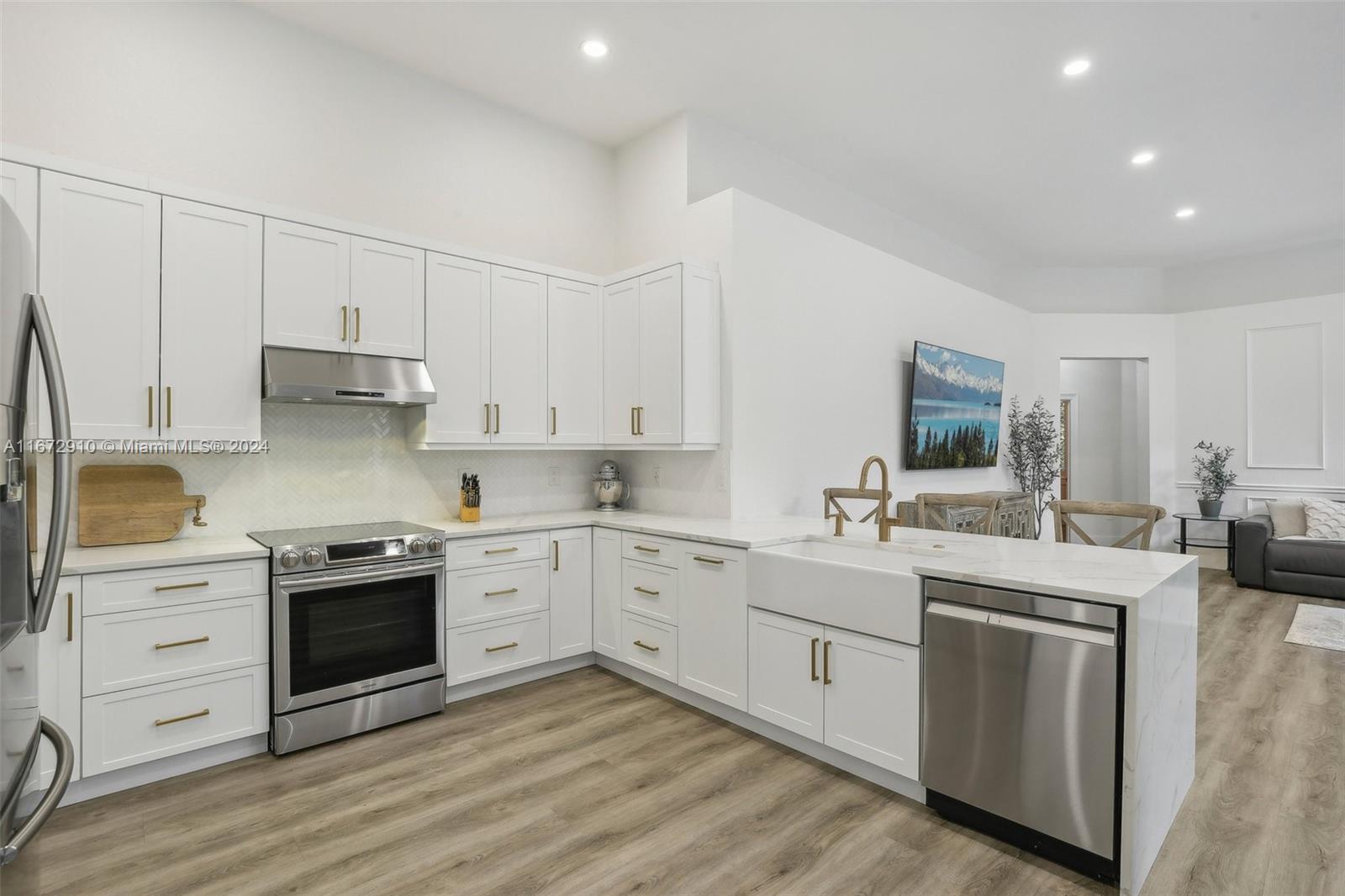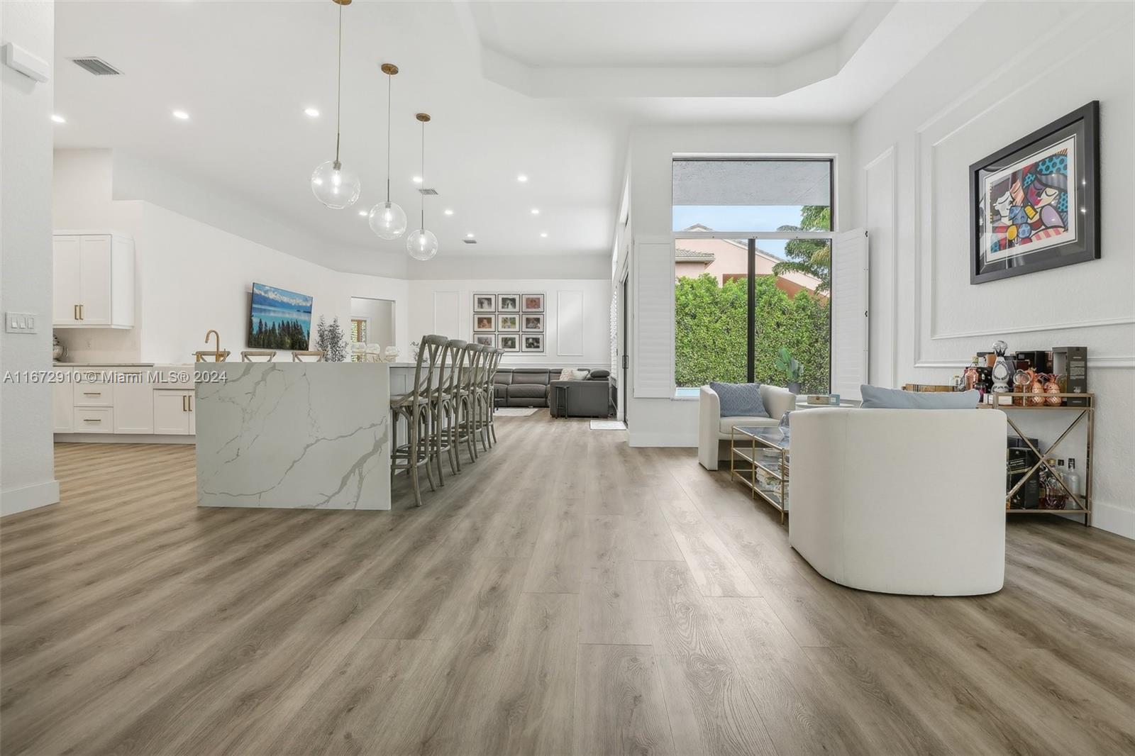 Breathtaking one-story remodeled home with new heated pool and jacuzzi in Sunset Lakes! The open floor plan is perfect for entertaining. Enjoy a bright kitchen with a 10-foot island, quartz counters, farm sink, wine refrigerator, and counter seating for eight! Impact windows/doors, both A/C units and tankless water heater installed in 2022. The primary suite offers custom his and hers closets, dual sinks, freestanding bathtub and sliding doors to the outdoor oasis. Oversized windows and sliding doors provide natural light and pool views throughout. Enjoy plenty of storage in the large laundry room and walk-in closets in two additional bedrooms. This resort-style community offers tennis, basketball, gym, playgrounds, and more. Text/Call Agent for gate code access.