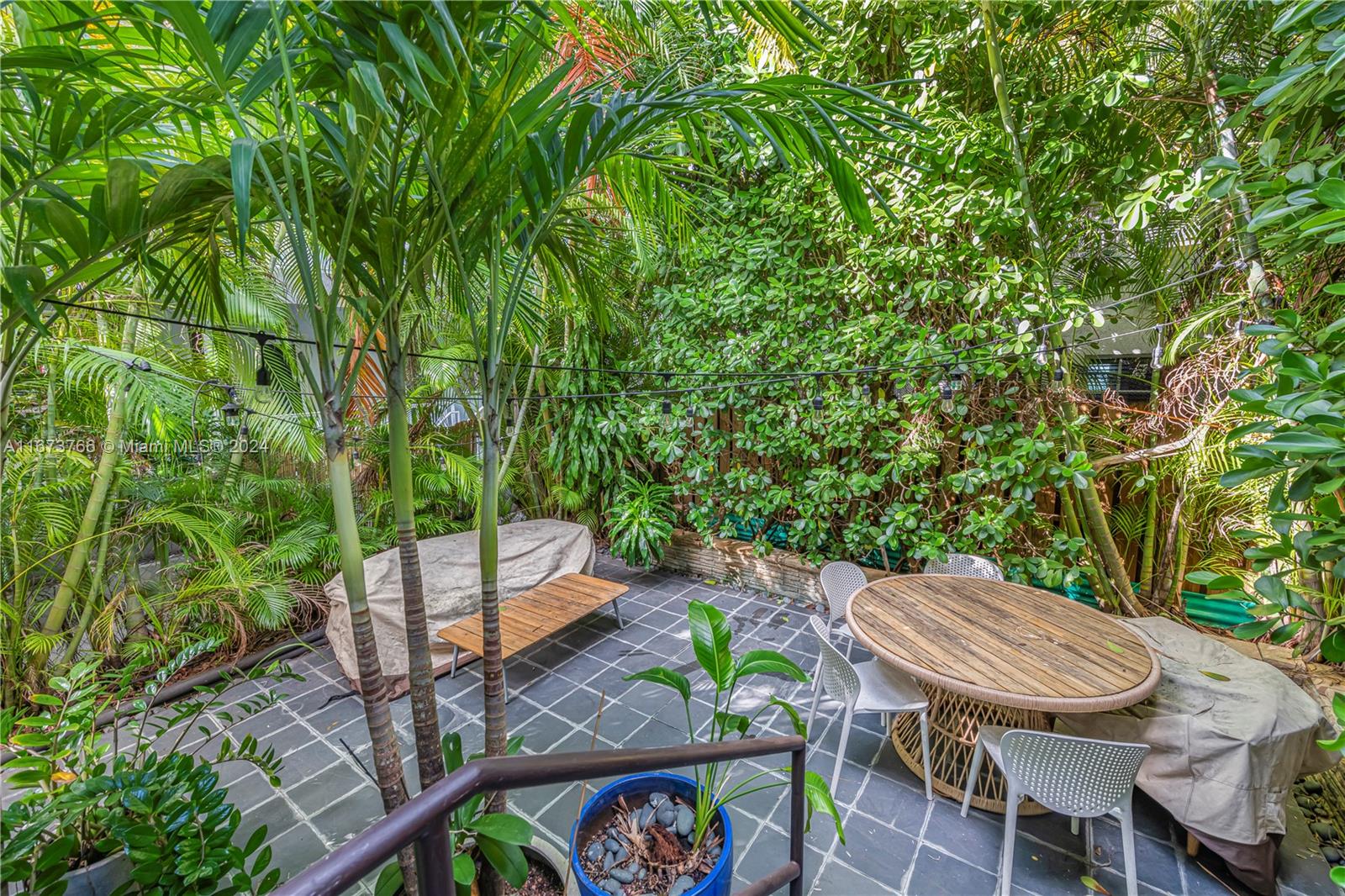 Welcome to your dream Oasis! This stunning Mediterranean townhome is a true gem, featuring a private entrance and a serene butterfly garden. With 1,380 square feet of thoughtfully renovated living space, this home boasts 10-foot high ceilings that create an airy, inviting atmosphere. The ground floor features a cozy living room with a fireplace, a separate dining room, a well-appointed kitchen, and a convenient half bath, all adorned with beautiful hardwood floors. Upstairs, you’ll find two spacious bedrooms, two marble baths and a generous walk-in closet. The outdoor area is perfect for entertaining with ample space for BBQs and room for a Jacuzzi. Located a short walk from the beach, south of Flamingo Park, and within easy reach of shopping and dining.