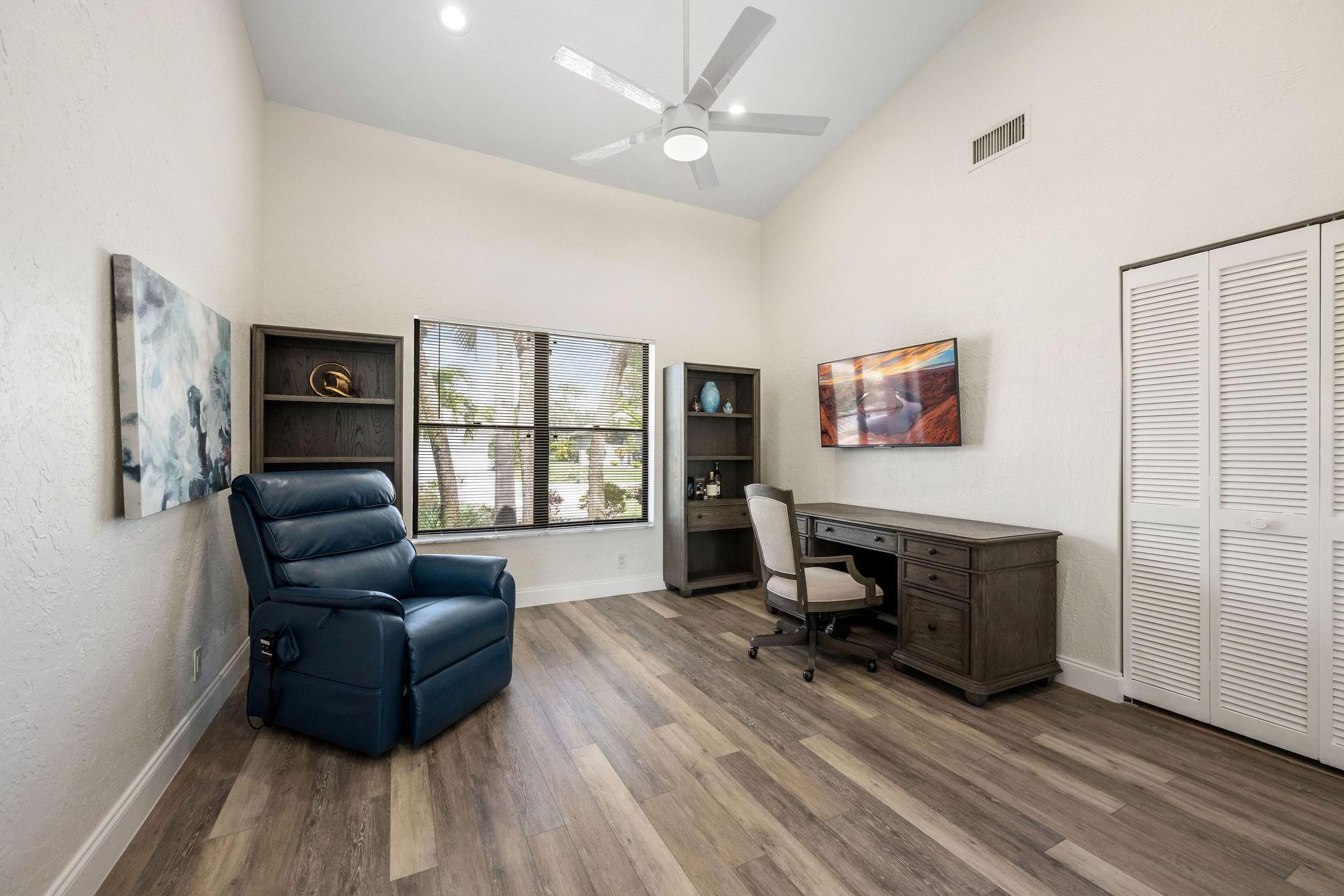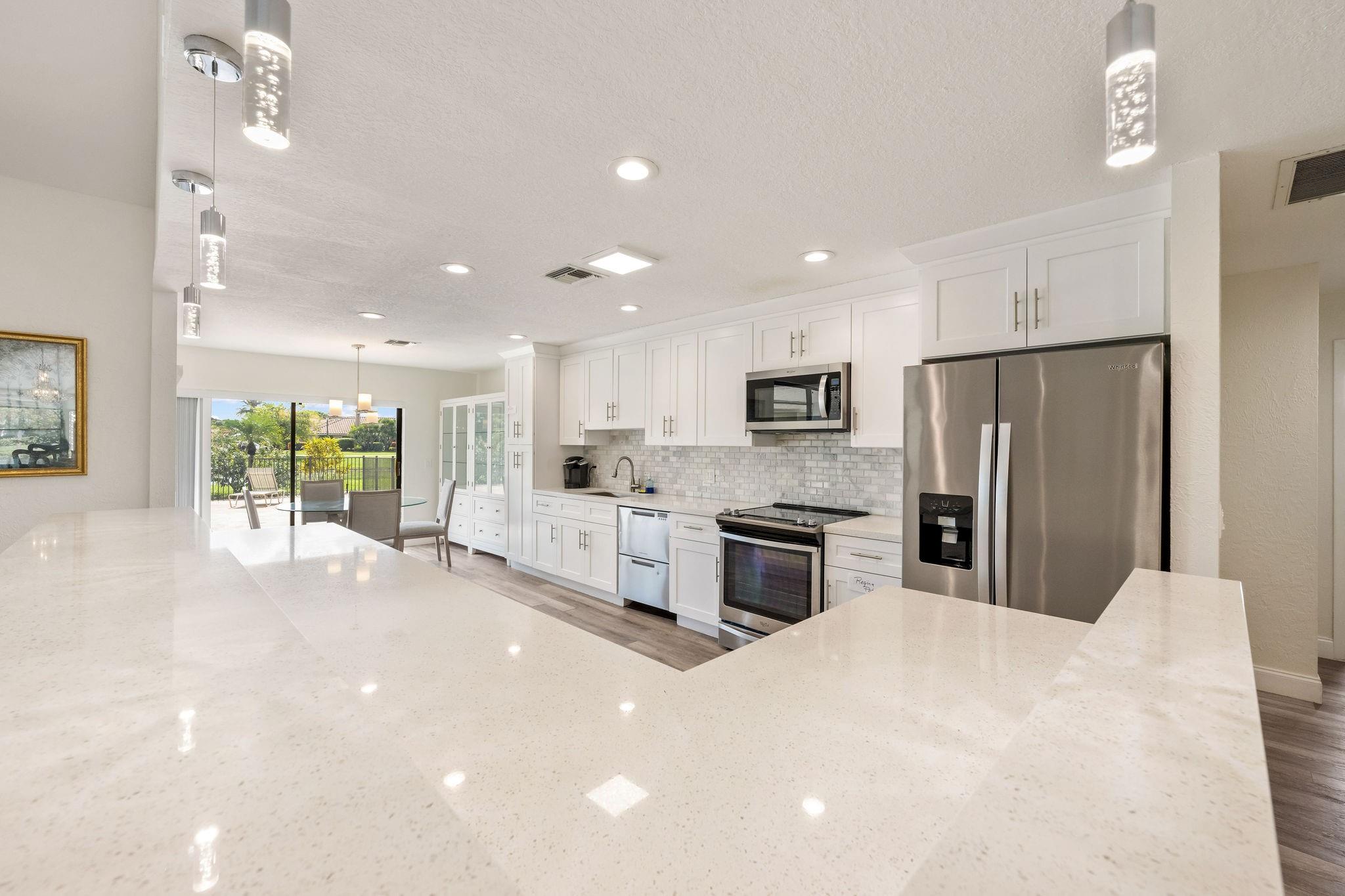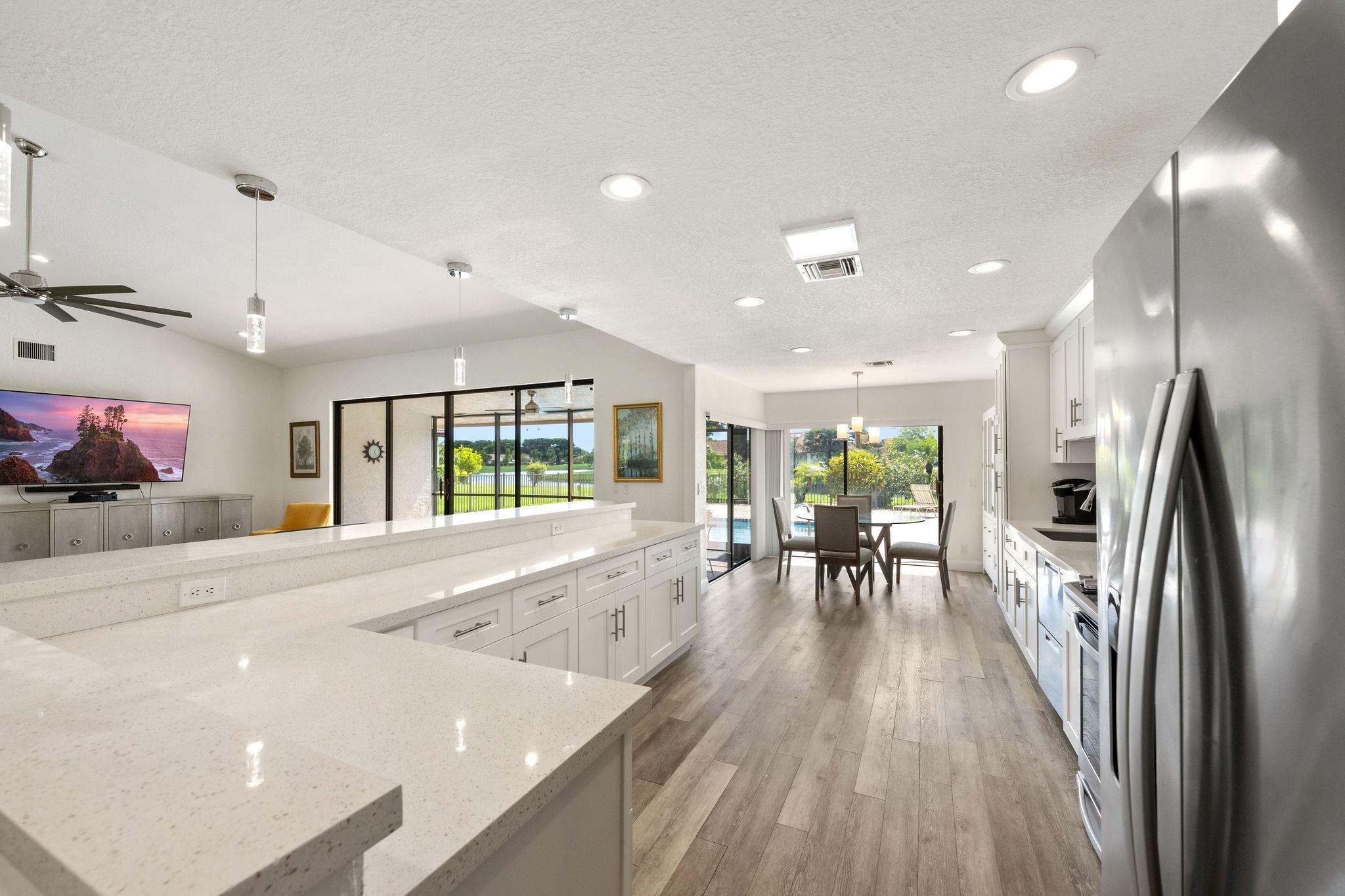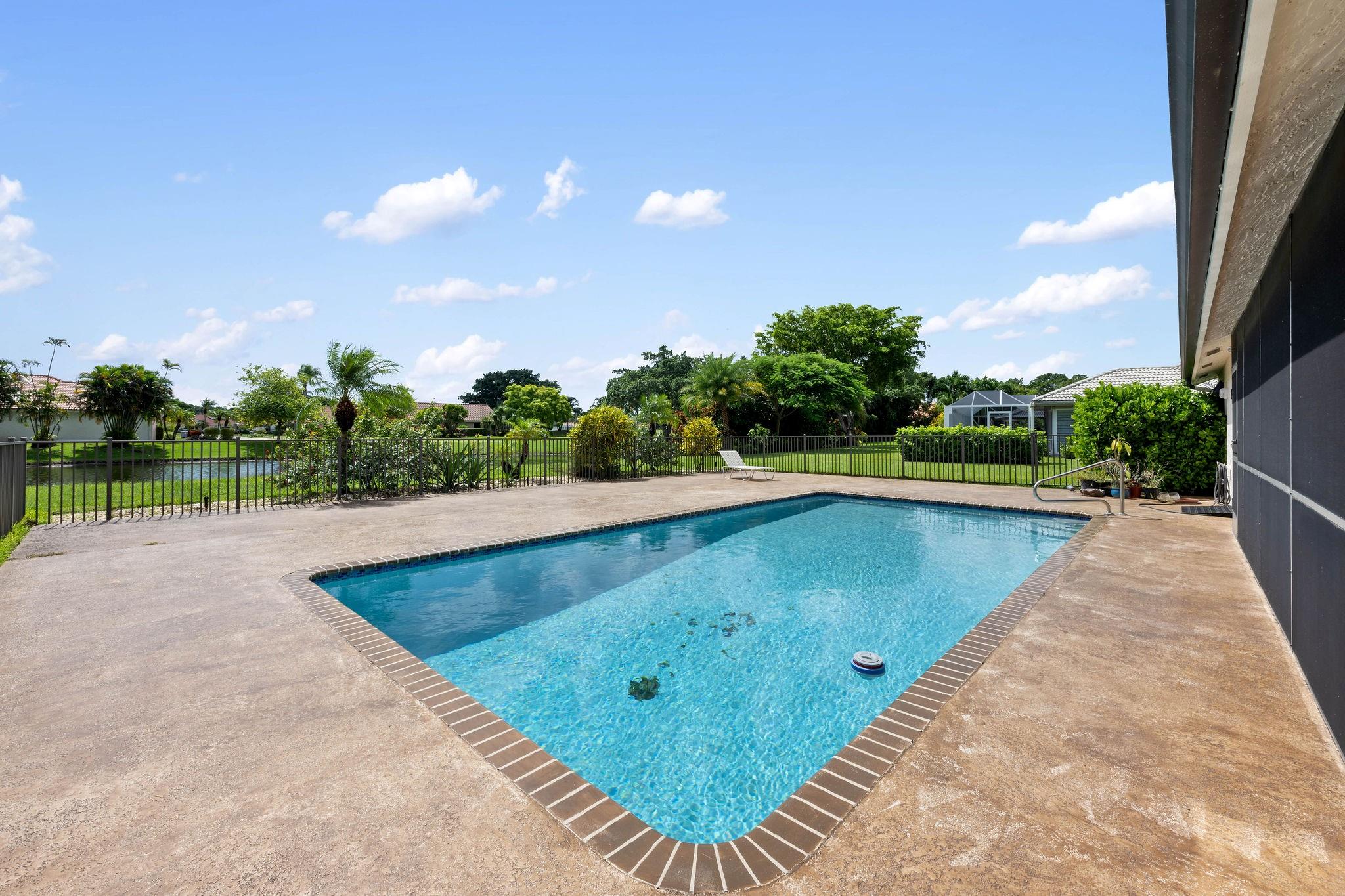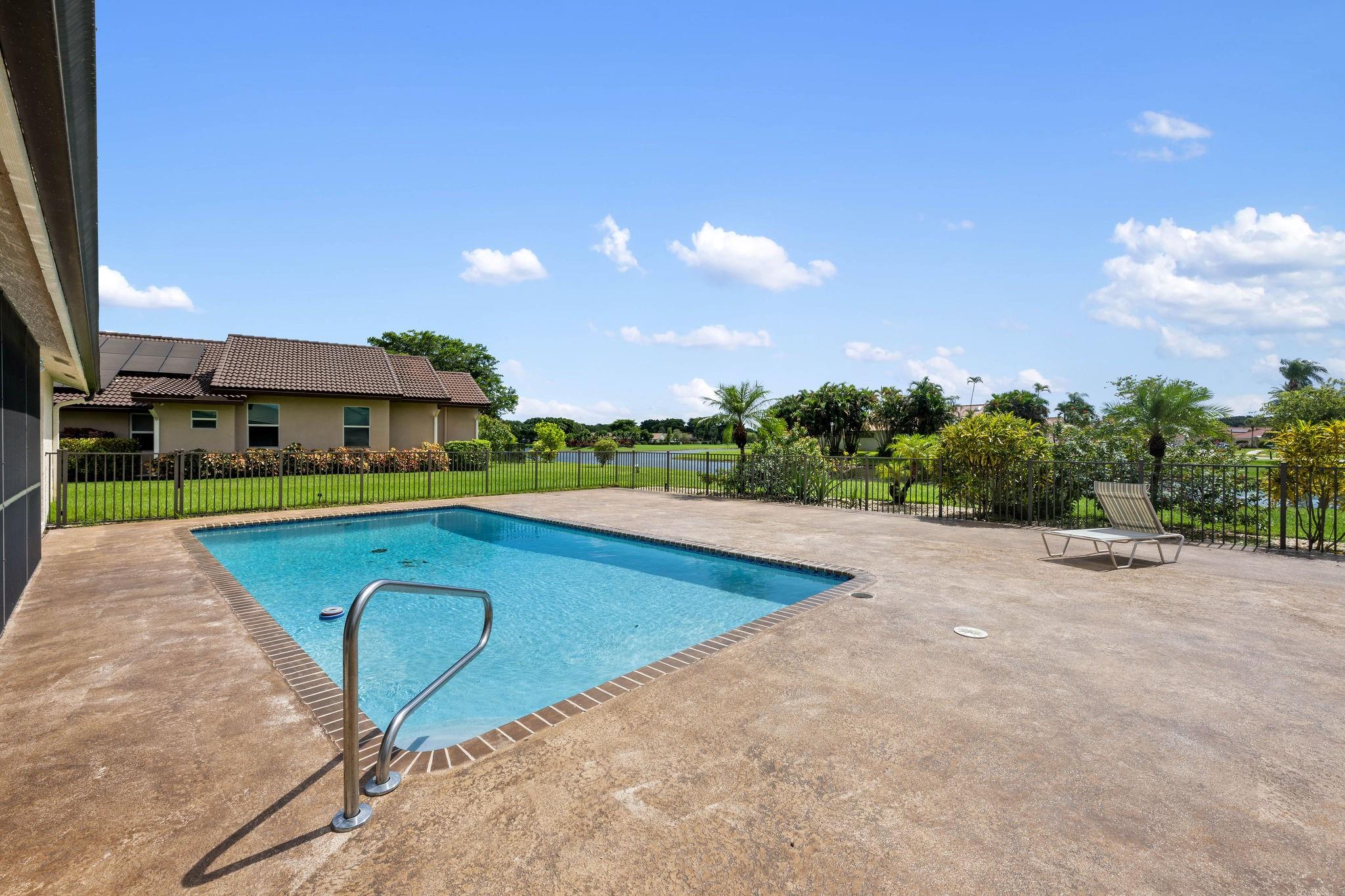 Welcome to your dream home in beautiful Boca Woods Country Club! This stunning 3-bedroom, 2.5-bath single-family residence boasts a luxurious lifestyle with modern amenities. Step inside to discover an inviting custom wood kitchen featuring exquisite quartzite countertops, large patio, ideal for entertaining, complete with a screened overhang for year-round enjoyment. Features include upgraded vinyl flooring throughout while enjoy the convenience of two master suites, each offering a private retreat. Outside, a circular driveway adds charm and functionality, while the sparkling pool invites you to relax and unwind. amenities include two championship golf courses, 7 Har-Tru tennis courts, 4 pickleball courts, two dining options, and a full-service spa.