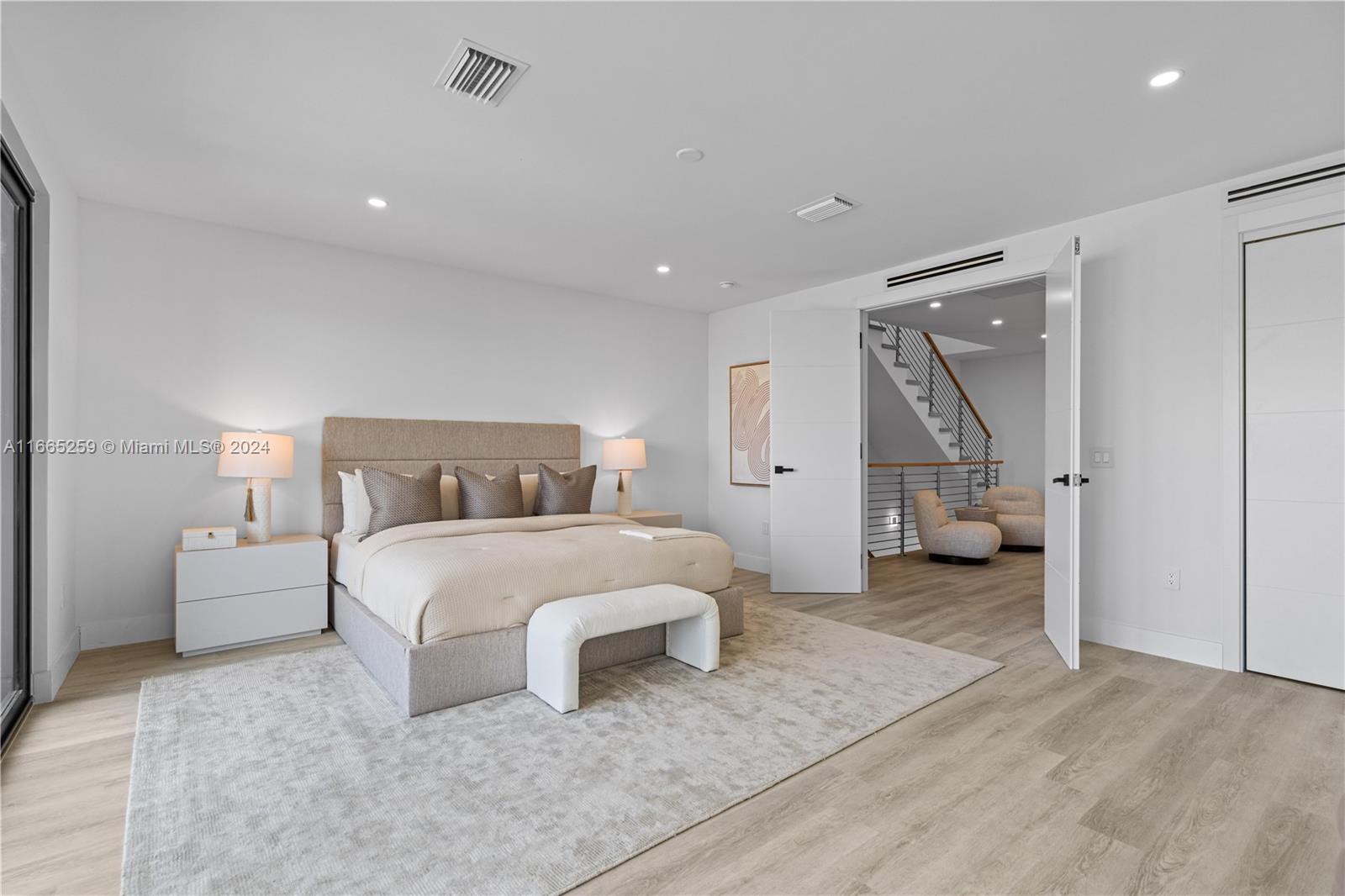 Discover modern elegance in Coral Ridge. This home features 4 bedrooms, 4 bathrooms, high ceilings, and an open concept living area that flows seamlessly into the terrace, thanks to multitrack sliding doors that create an extended indoor-outdoor space. Enjoy porcelain flooring, quartz countertops, custom solid wood doors, and a kitchen with state-of-the-art appliances. Designed with entertaining in mind, the home has an oversized rooftop terrace equipped with a summer kitchen and provisions for a jacuzzi installation. Additional amenities include a private pool, a security system, and ample parking with a double garage and four-car driveway. Panoramic views, along with relaxing balcony and deck areas for unwinding and enjoying the serene surroundings.