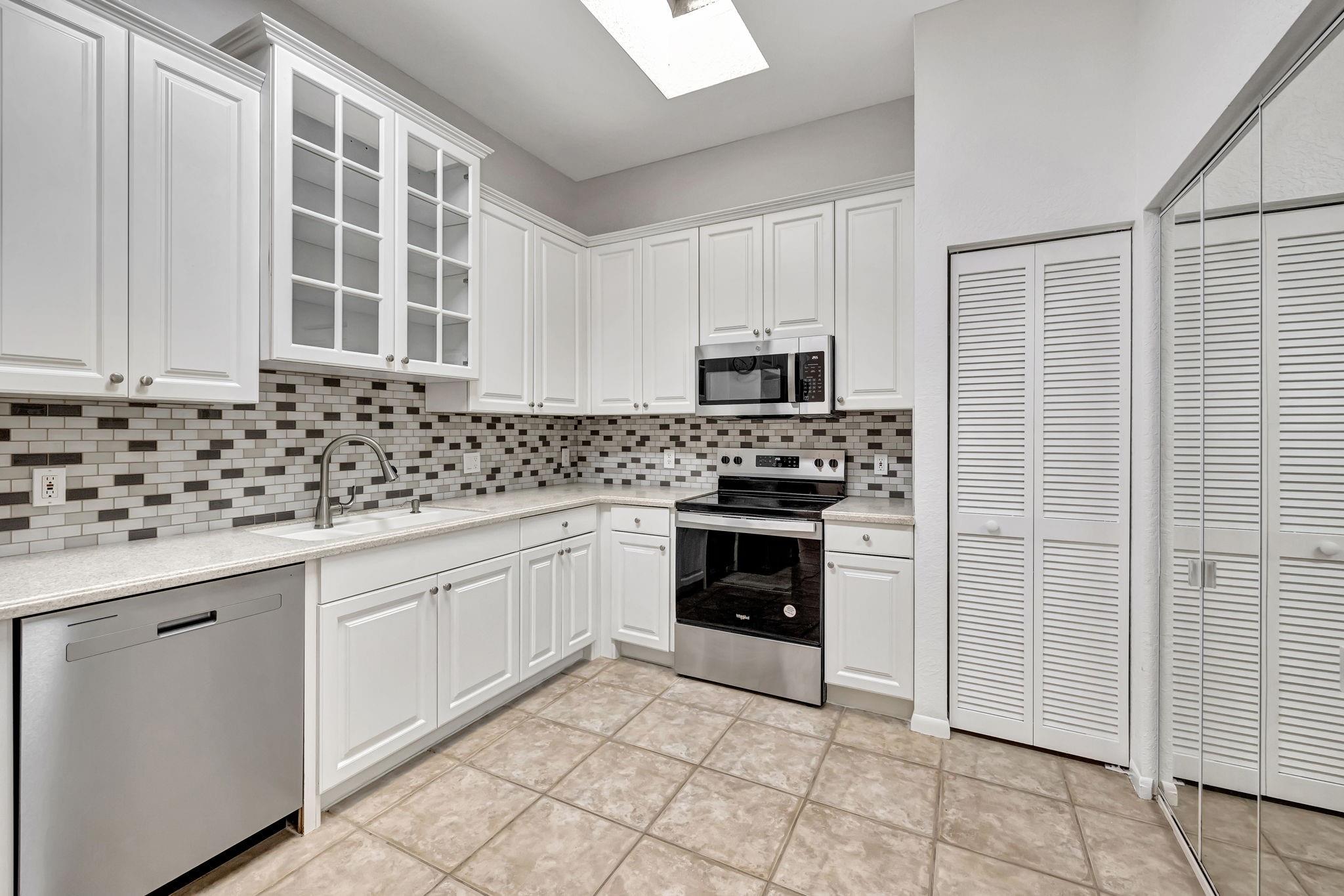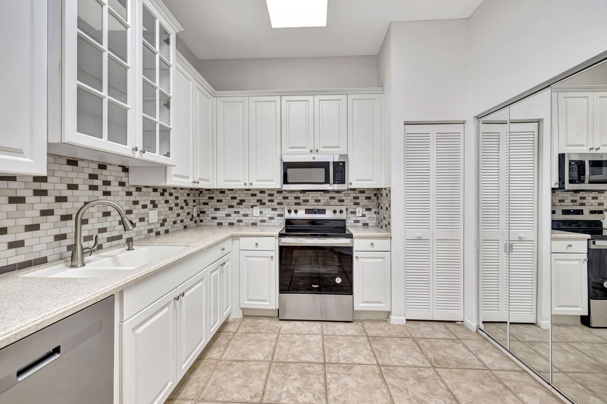 WOW, BACK ON THE MARKET!!! SOLD FAST THE 1ST TIME SO HURRY AND COME SEE THIS SOUGHT AFTER GATED FAIRWAY VIEWS HOME. SO CLOSE TO ALL SHOPPING,RESTURANTS, & HOUSES OF WORSHIP. BEAUTIFULLY UPDATED, ALL FREASHLY PAINTED WHITE, ALL BRAND NEW STAINLESS APPLIANCES, REFRIG, DISHWASHER,RANGE AND MICRO EVEN A BRAND NEW WASHER AND DRYER. BRIGHT WHITE CABINETS AND SOLID SURFACE COUNTERS. SOARING VOLUME CEILINGS, TILE FLOORS IN LIVING AREAS AND GORGEOUS WOOD LIKE FLOORS IN 2 OF THE BEDROOMS. NEW LIGHTING & FANS, KNOCK OUT MASTER BATH WITH FLOATING VANITY , LED LIGHTED MIRRORS, HUGE WALK IN SHOWER WITH GLASS ENCLOSURE DOOR, PRETTY PATIO & GRASSY YARD THAT IS MAINTAINED BY YOUR HOA, SPACIOUS PRIVATE GARAGE, STORM SHUTTERS AND A LOVELY COMMUNITY POOL JUST AROUND THE CORNER.